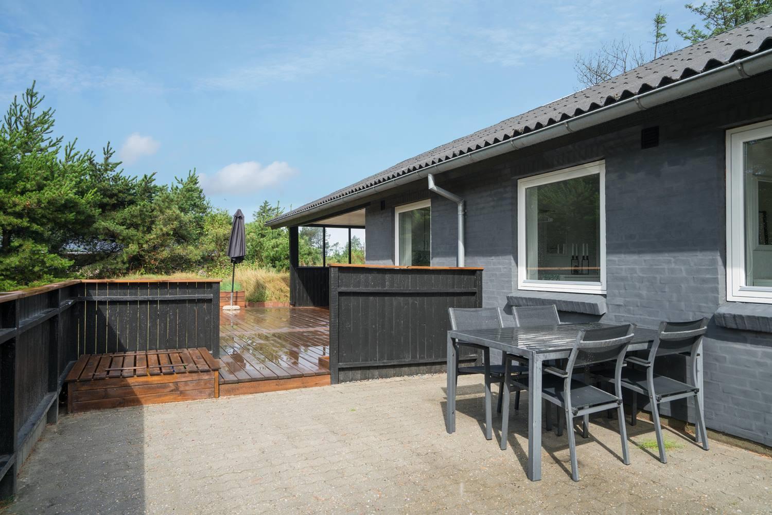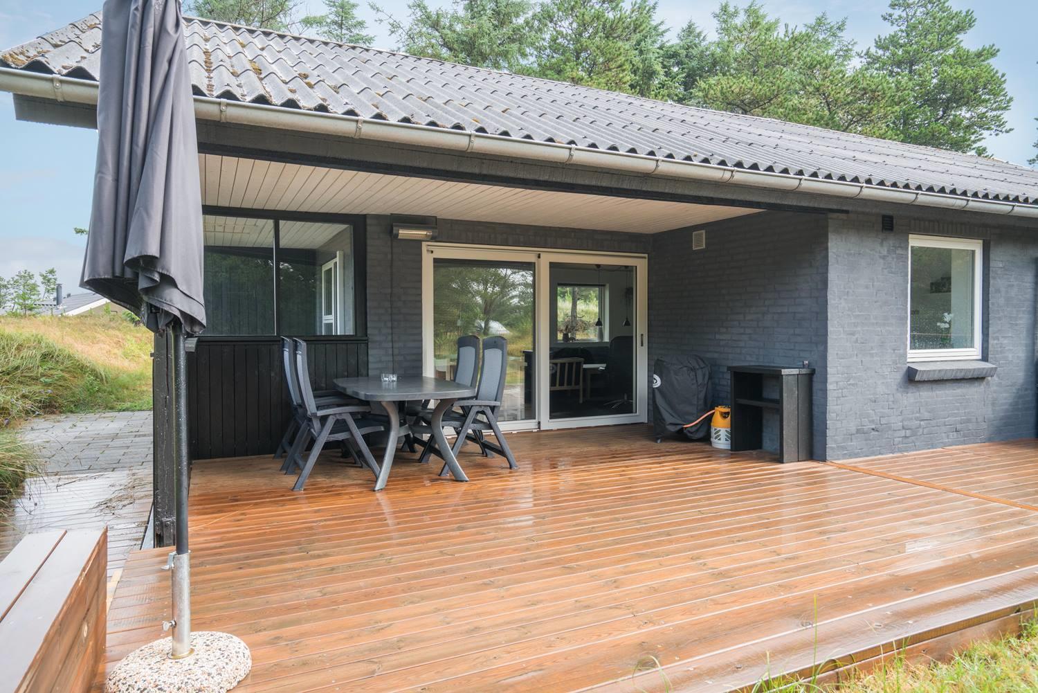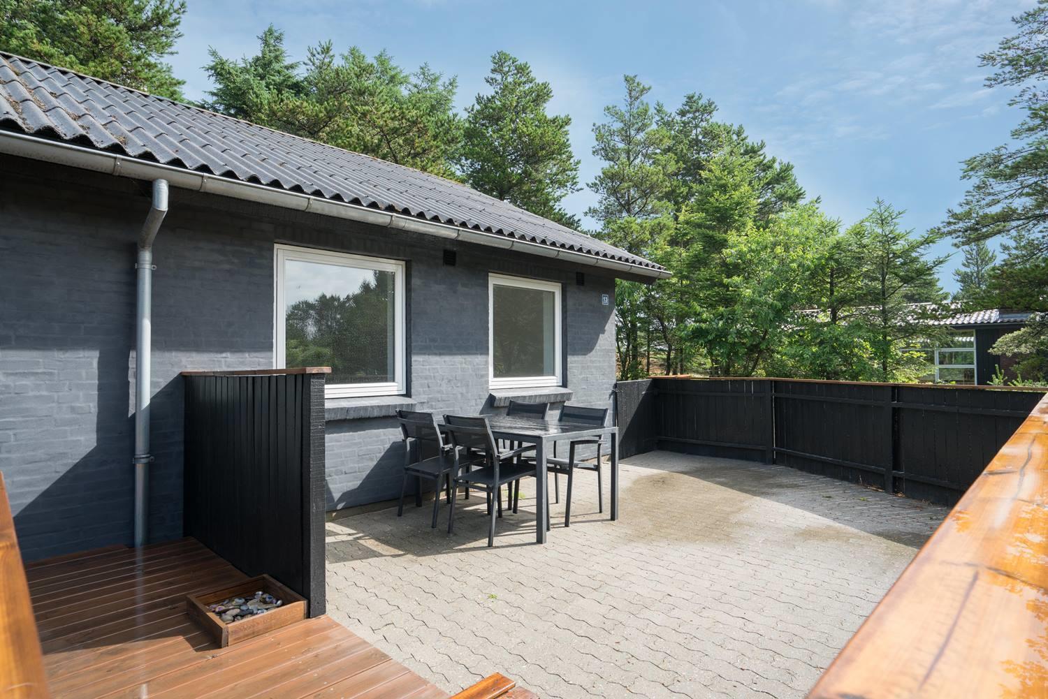 Huset ligger tilbagetrukket på grunden og med en næsten lukket terrasse er det ideel at tage hunden med.