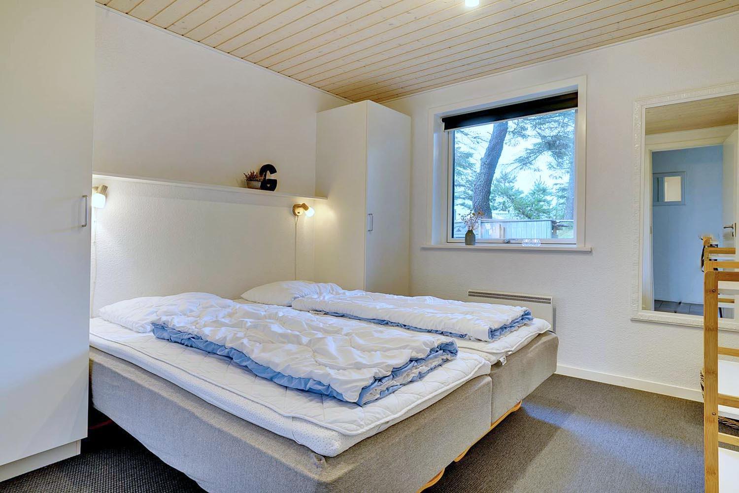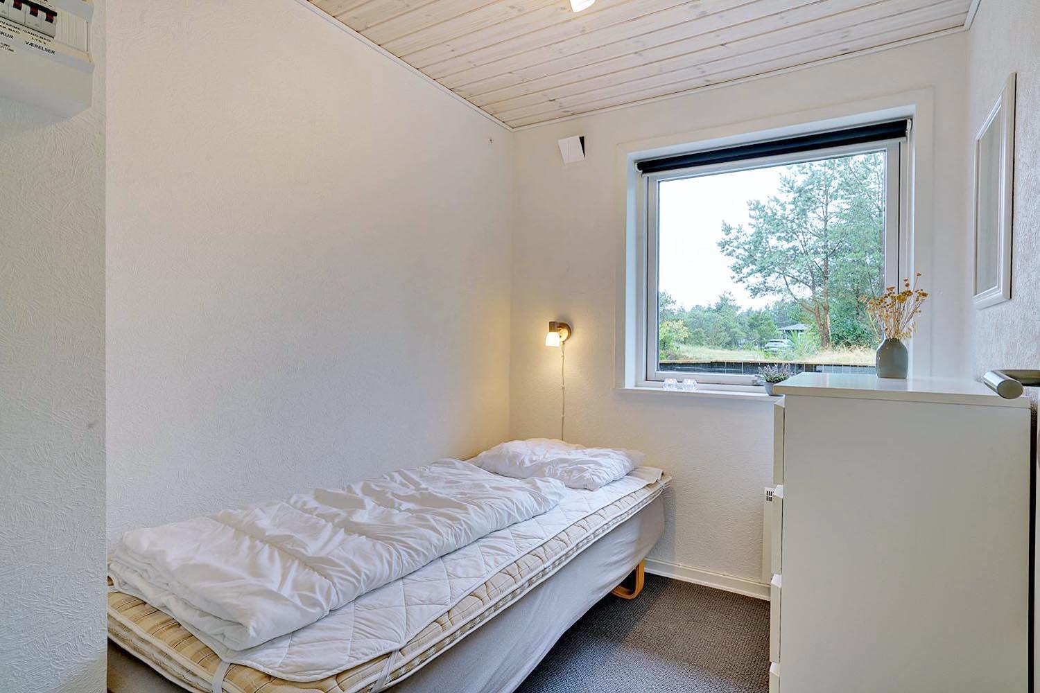 Dette dejlige murede feriehus ligger tilbagetrukket fra vejen og er meget velholdt. Der er 3 gode soverum med mørklægningsgardiner. Nyt flot badeværelse. Renoveret køkken med stort vindue som er i åben forbindelse med den dejlige stue. I stuen er der lille hyggelig alkove med lille TV og lille vindue som vender ud mod træerne på grunden. Omkring huset er der flere læ fulde hjørner, hvor man ugeneret kan opholde sig. Godt skur til opbevaring af cykler eller lign.