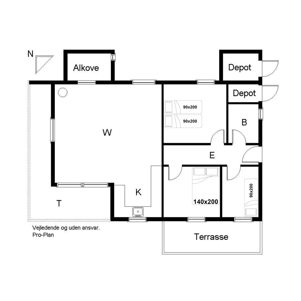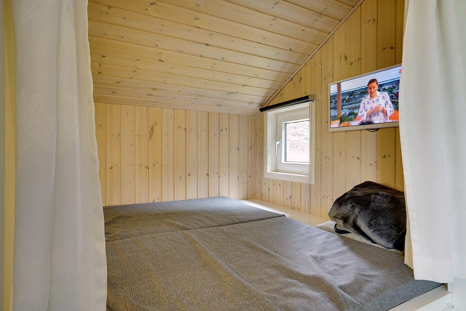 Sengestørrelse: 1 dobbeltseng med 2 madrasser 90 x 200 cm + 1 dobbeltseng 140 x 200 cm + 2 enkeltsenge 90 x 200 cm.