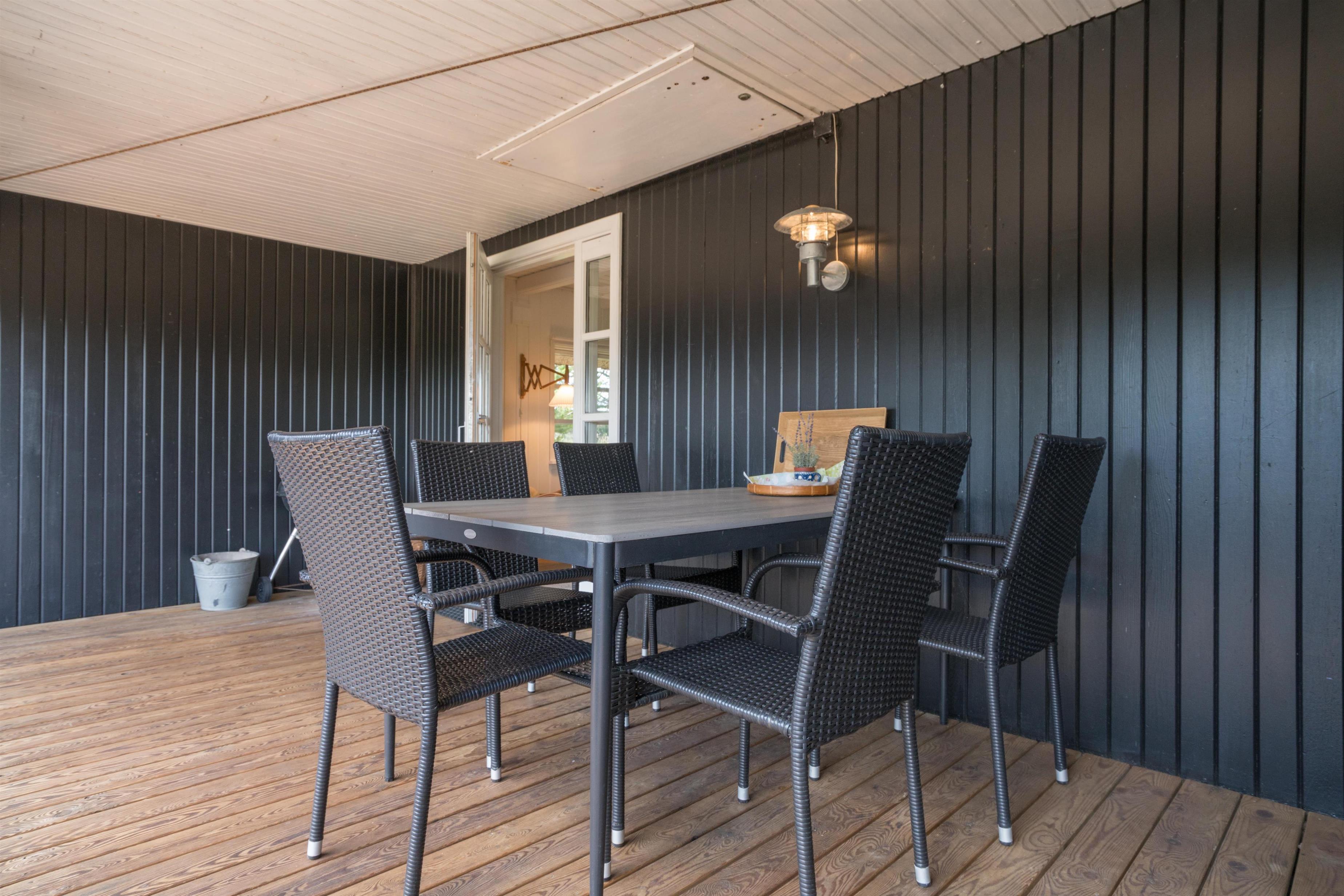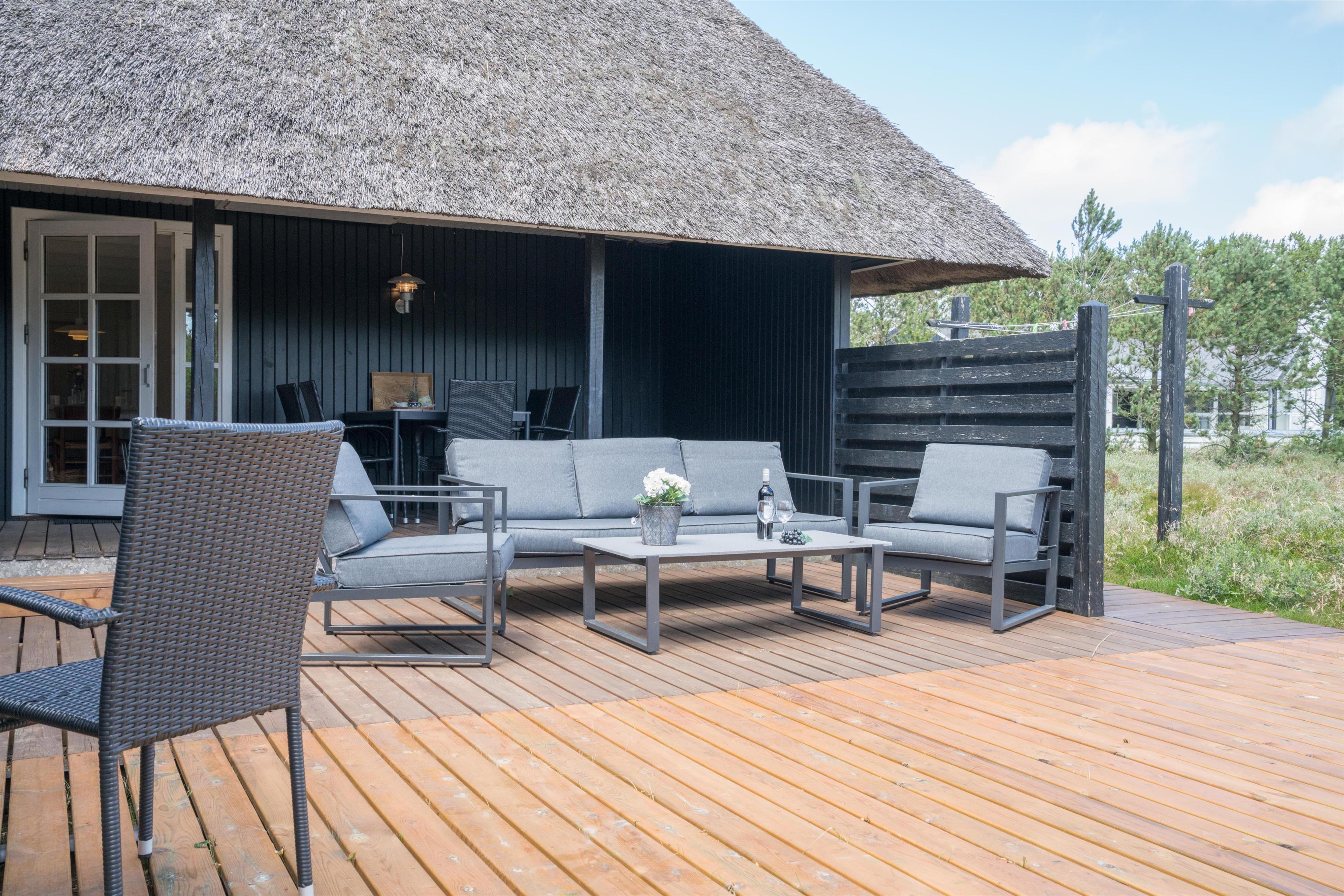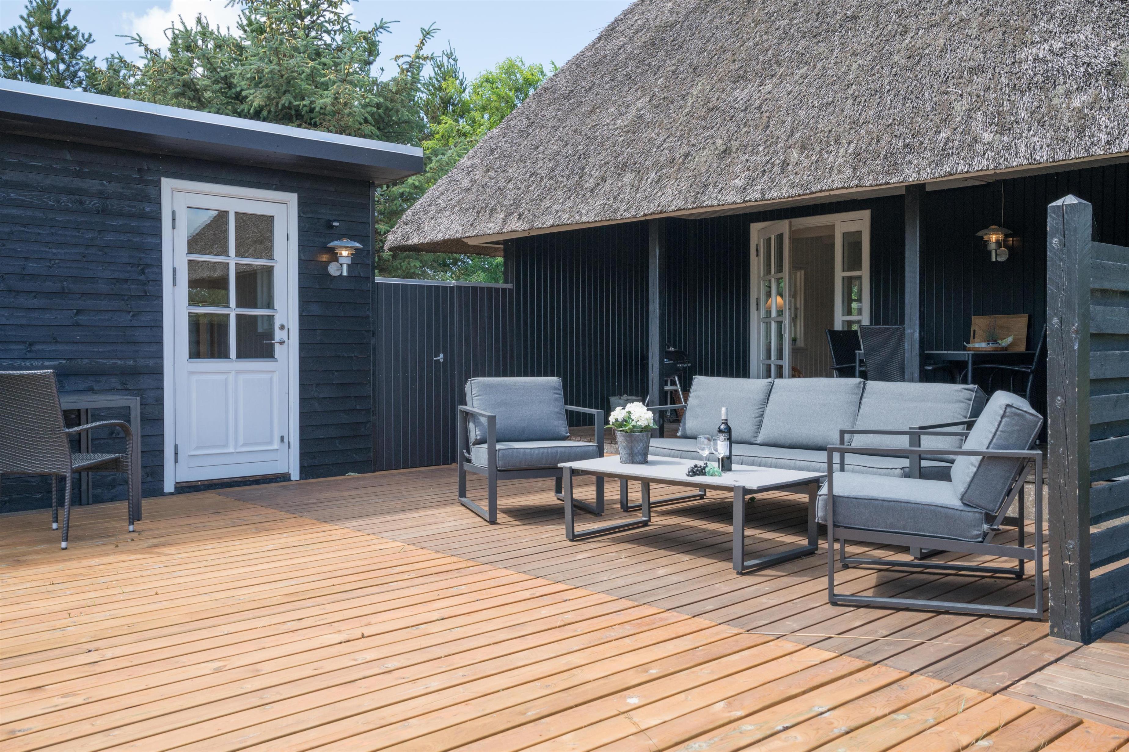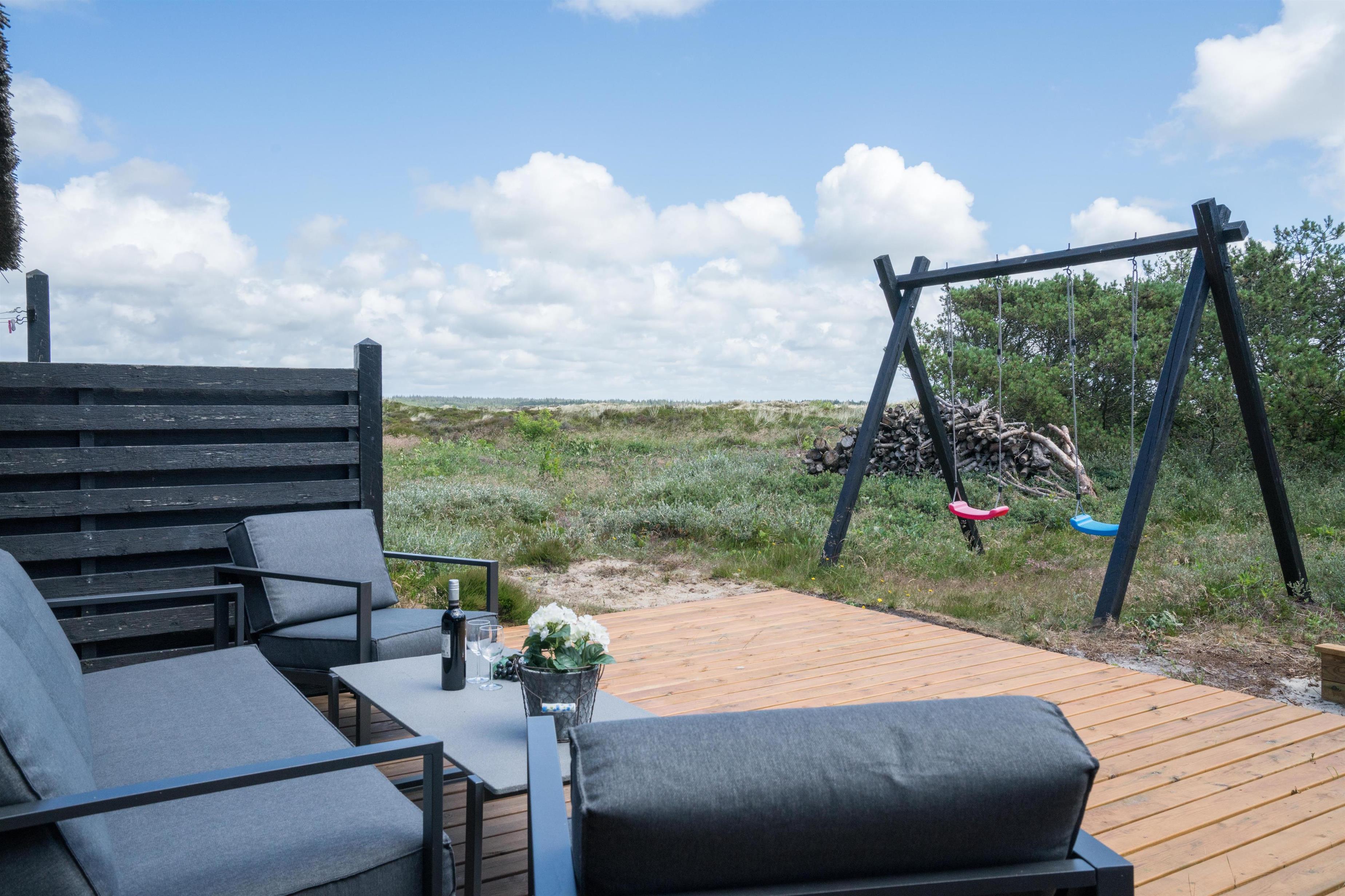 For familier med børn er der også tænkt på underholdningen: en sandkasse i haven giver sjov for de små, mens du kan nyde solen og roen på terrassen.