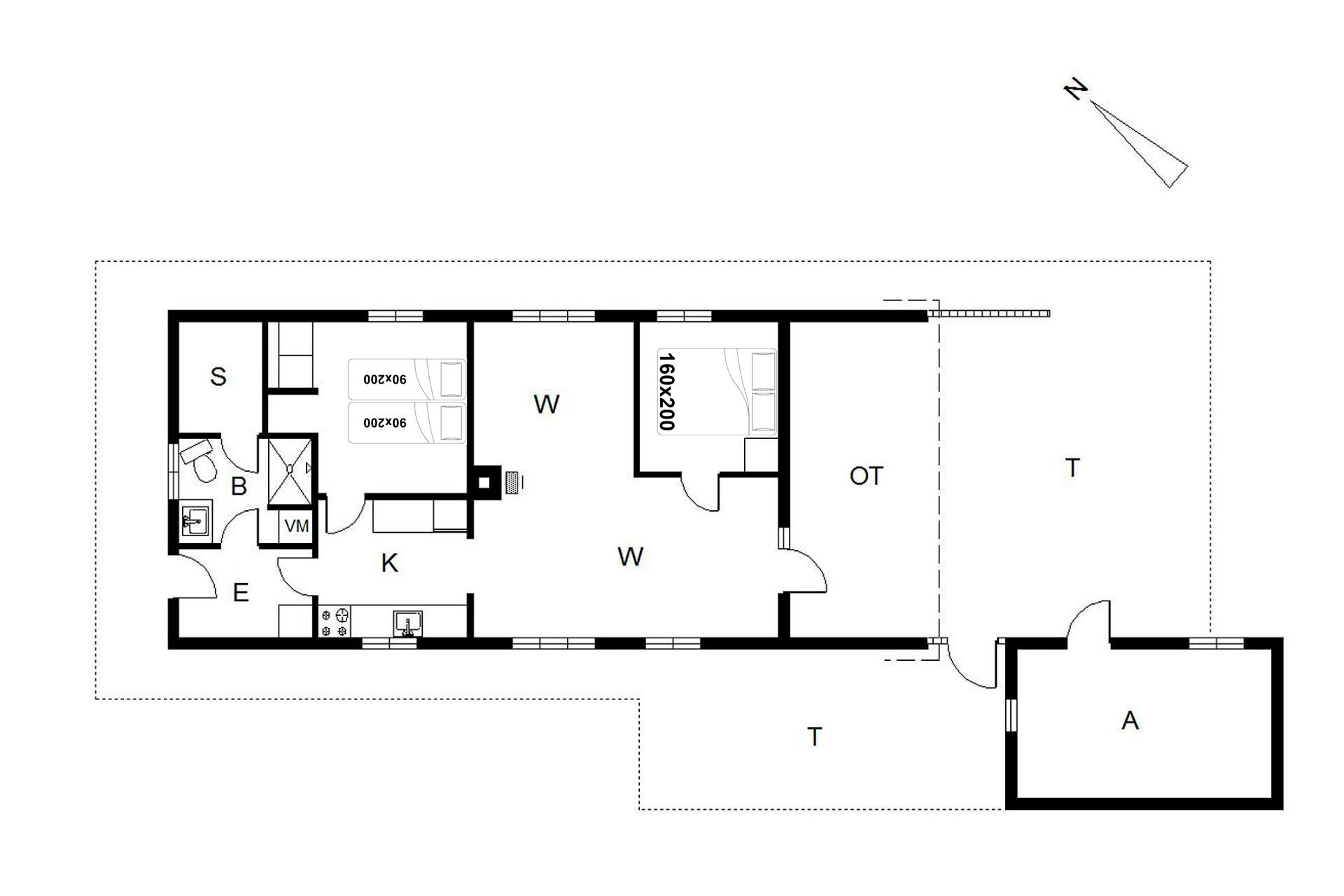 Sengestørrelser: 1 dobbeltseng med 2 madrasser á 90 x 200 cm + 1 dobbeltseng 160 x 200 cm