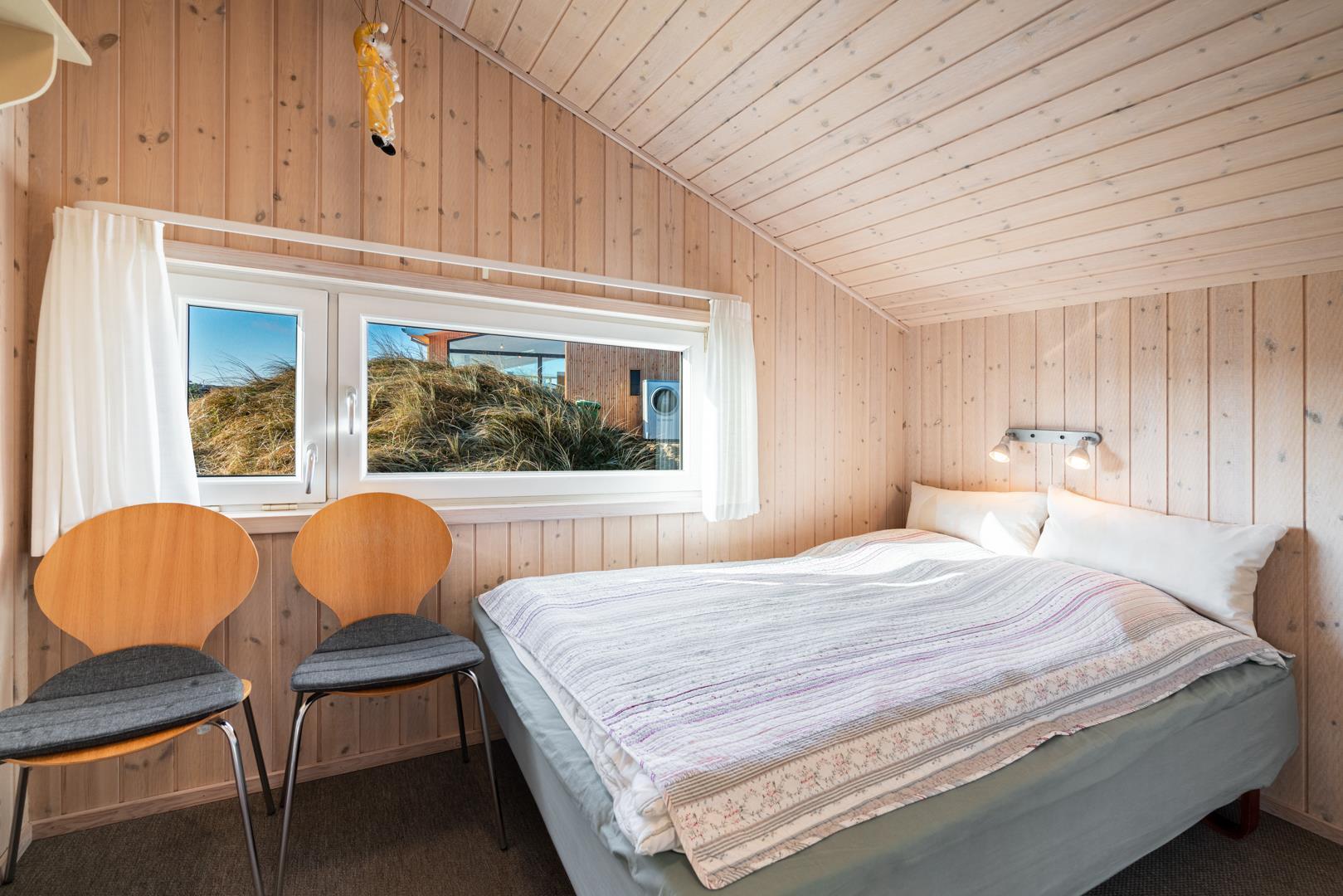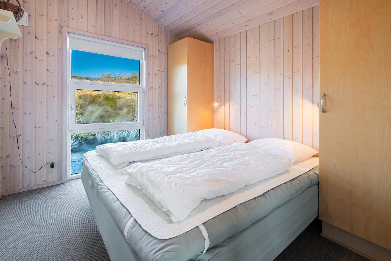 Her finder du tre gode soveværelser med behagelige dobbeltsenge, et stort og flot badeværelse med spa og adgang til husets egen sauna – oplagt til afslapning efter en dag ved stranden eller i klitterne. Derudover har huset et ekstra gæstetoilet – praktisk, især hvis I er flere af sted.