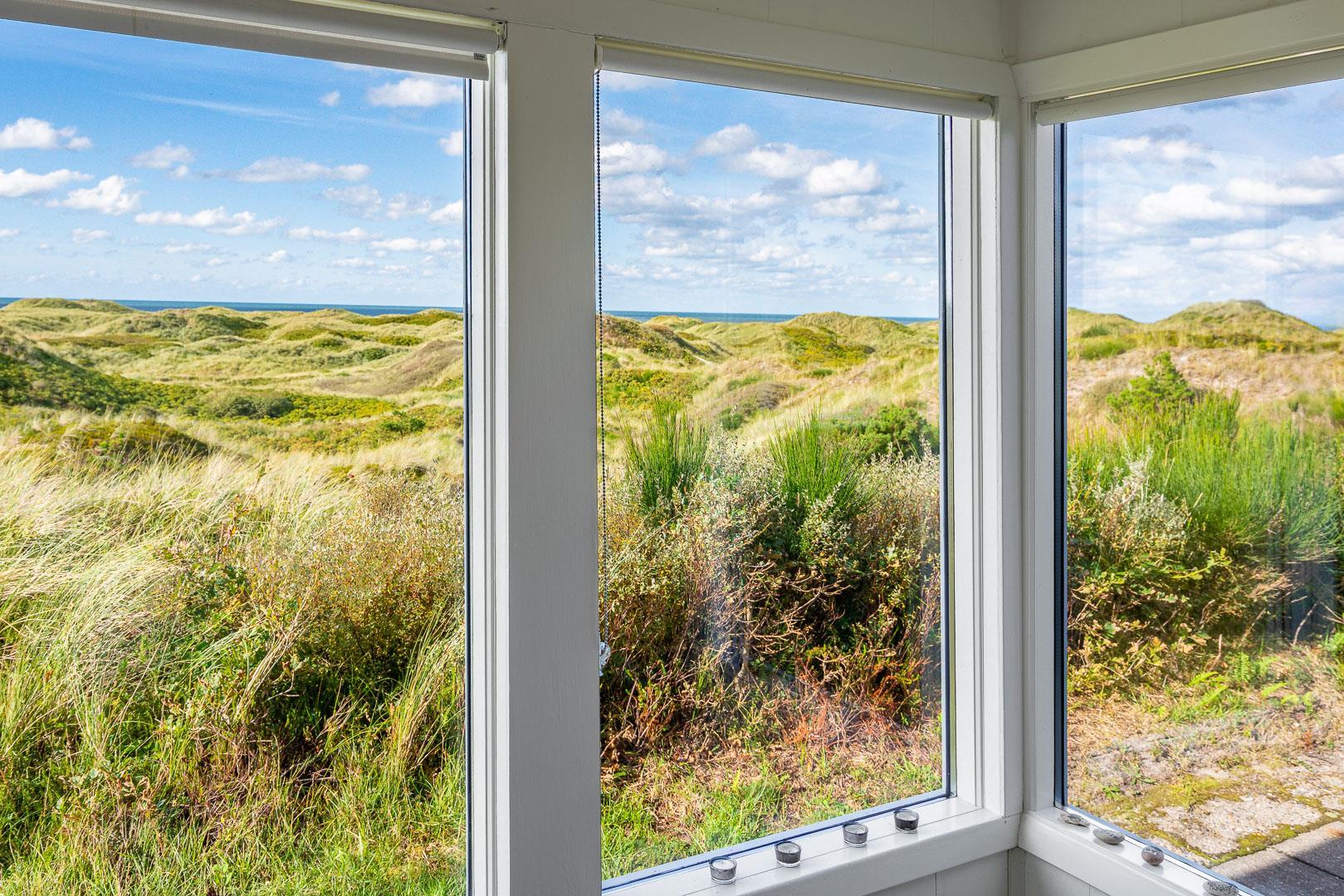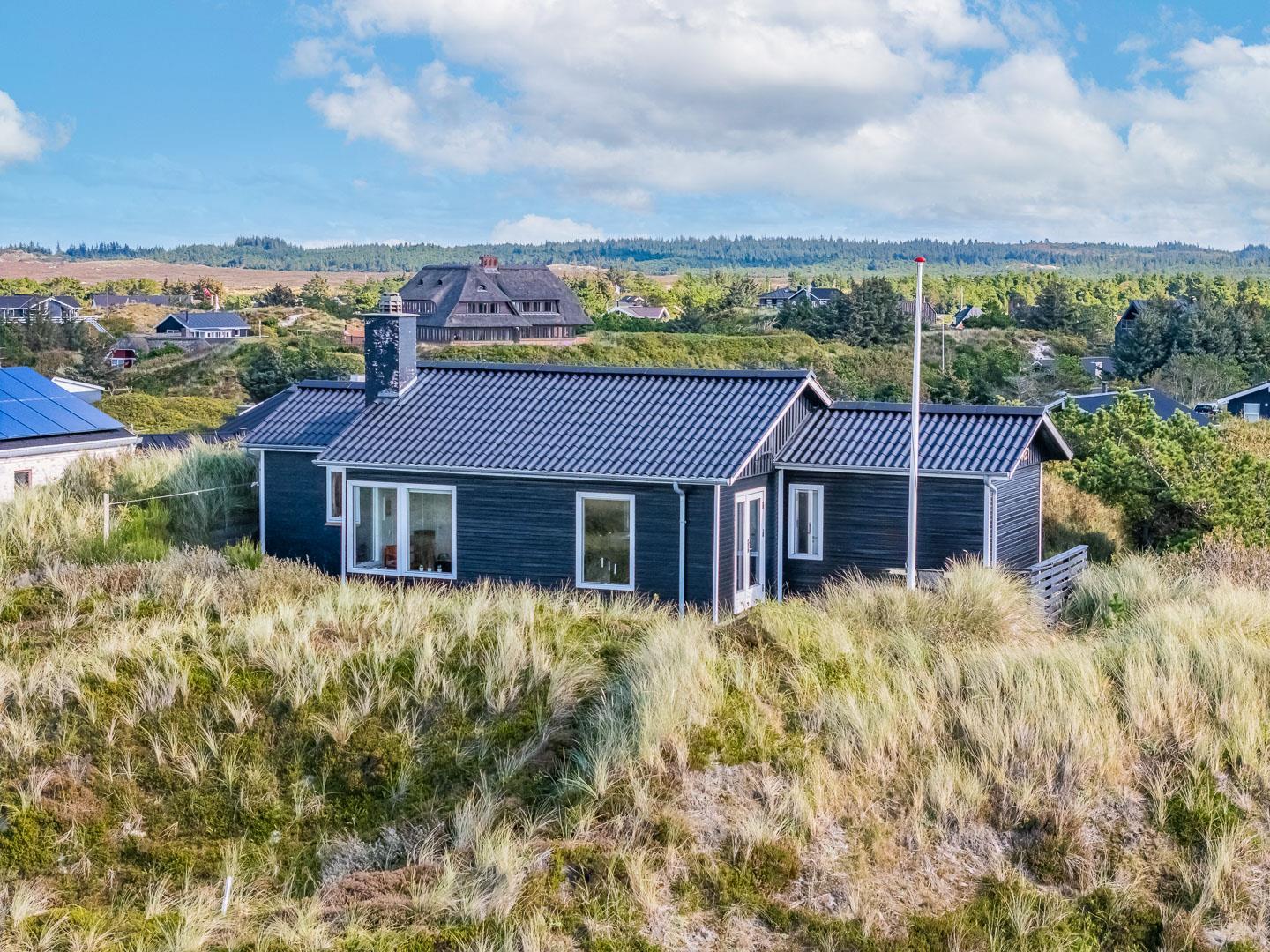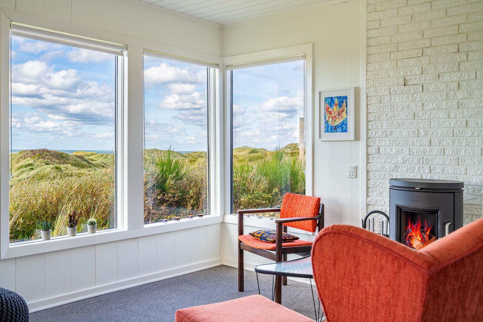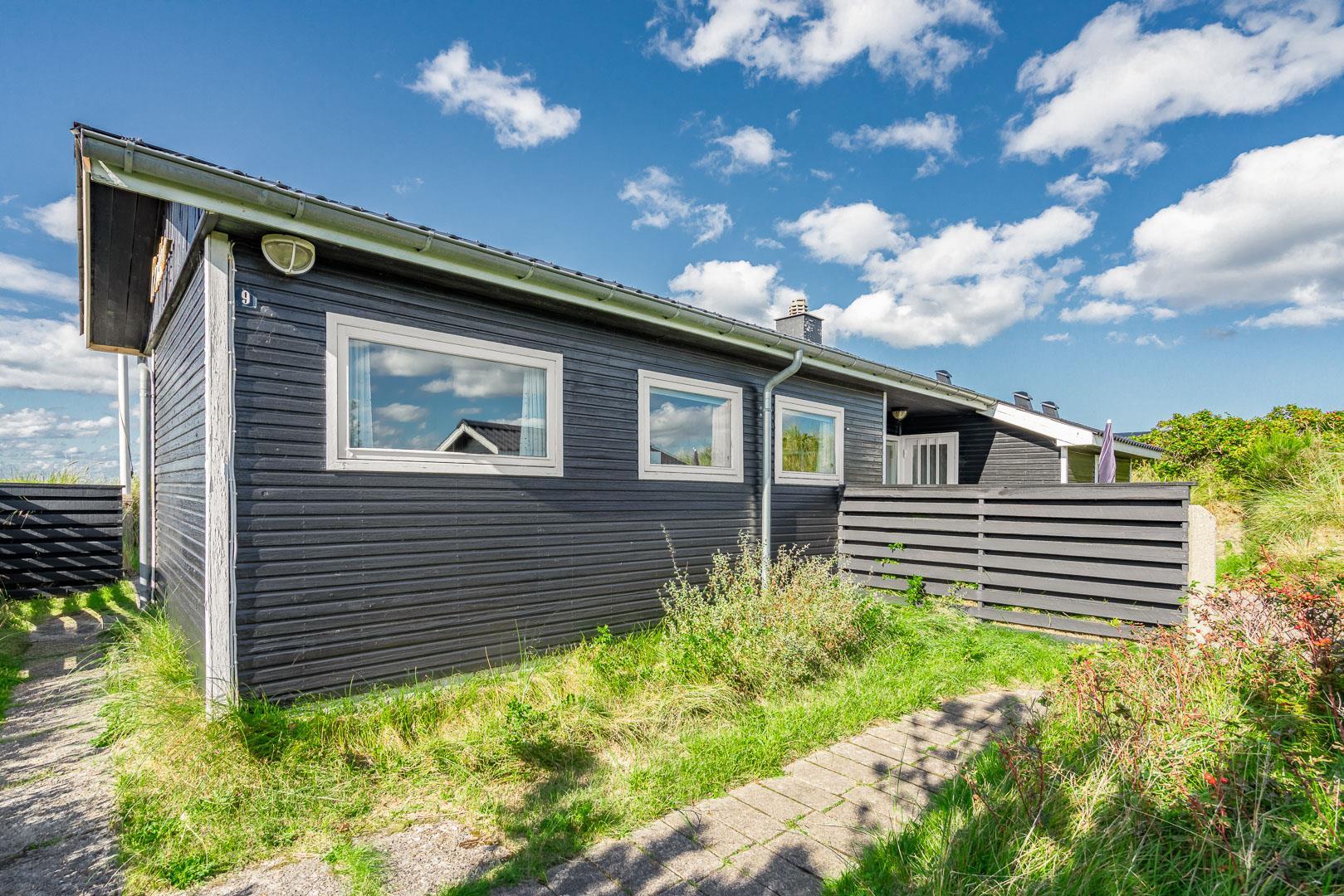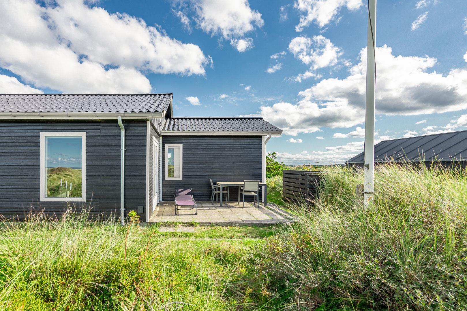 Charmerende feriehus med havudsigt beliggende på en pragtfuld og højtliggende klitgrund i forreste klitrække ved Henne Strand. Huset er løbende blevet moderniseret så alt fremstår lyst og venligt. Hyggelig stue som er indrettet med god stil og gode møbler. Stuen har store vinduer, så udsigten til havet og det pragtfulde klitlandskab kan nydes i fulde drag. Et soverum med gode enkeltsenge og skabe. Veludstyret køkken med opvaskemaskine og mikroovn. Der er også fra køkkenvinduet flot udsigt over klitlandskabet. Badeværelse med bruser, separat toilet. Der er flere dejlige og helt ugenerede terrasser omkring huset. Et fantastisk og super hyggeligt feriehus til 2 personer. Depotrum på terrassen er privat.