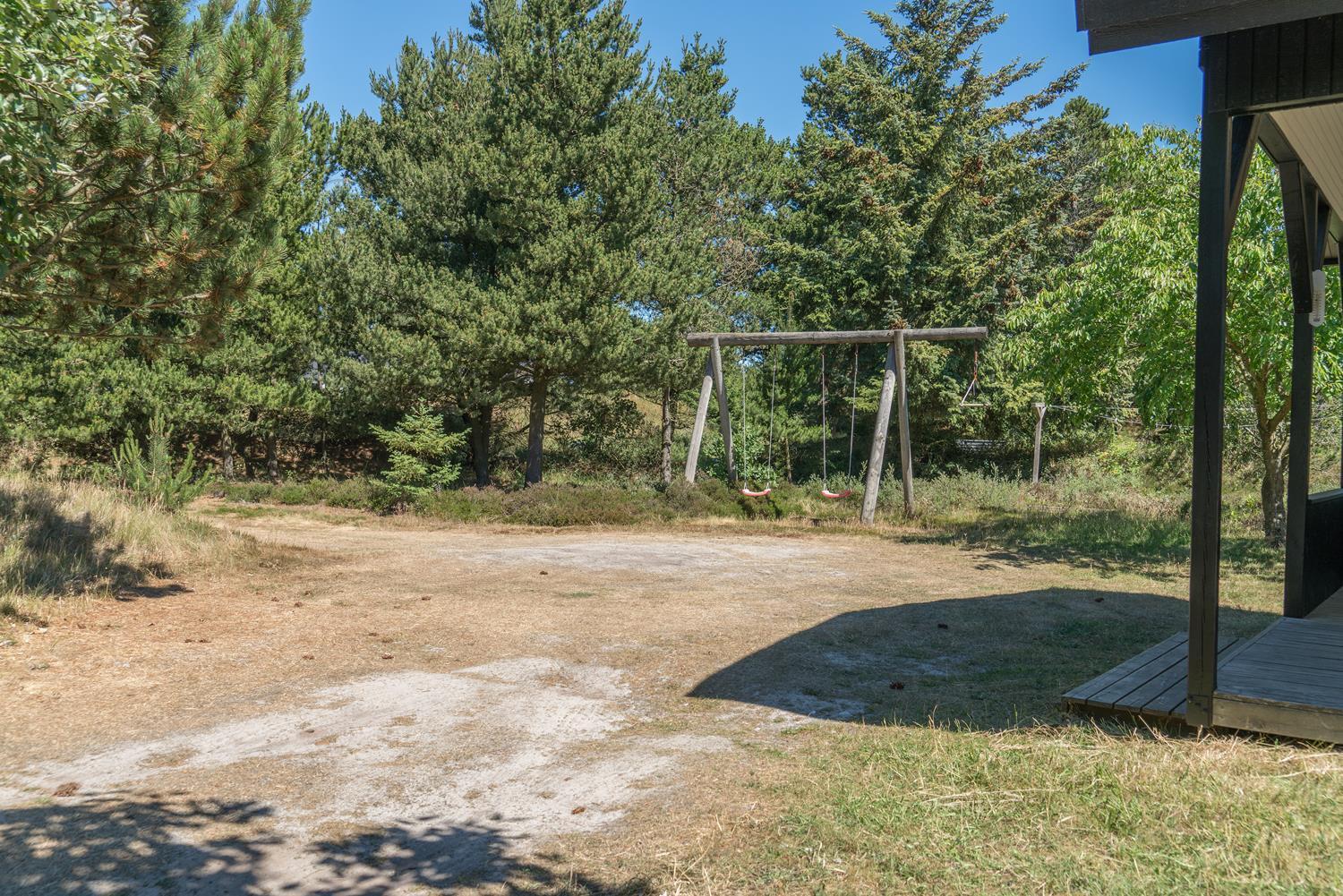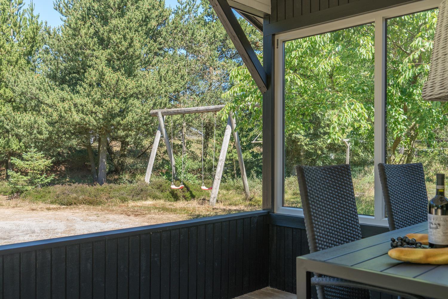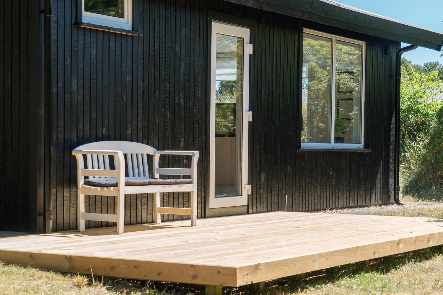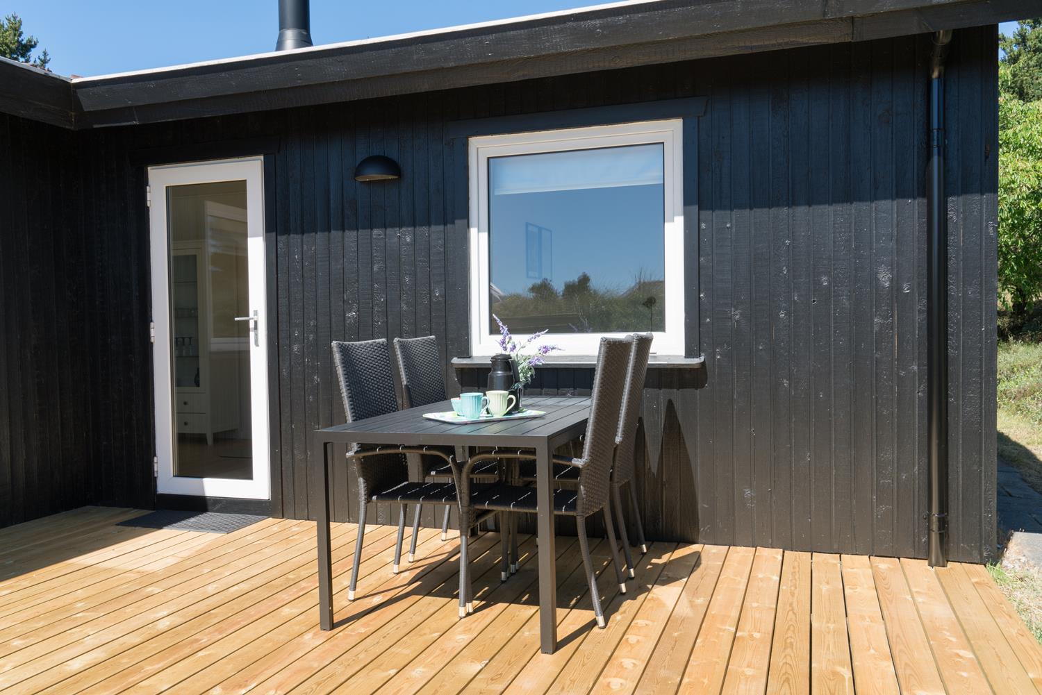 Gode muligheder for både sol og på de 3 dejlige træterrasser, hvoraf den ene er overdækket. Her kan ferien og den dejlige natur nydes i al slags vejr og på alle tider af døgnet.