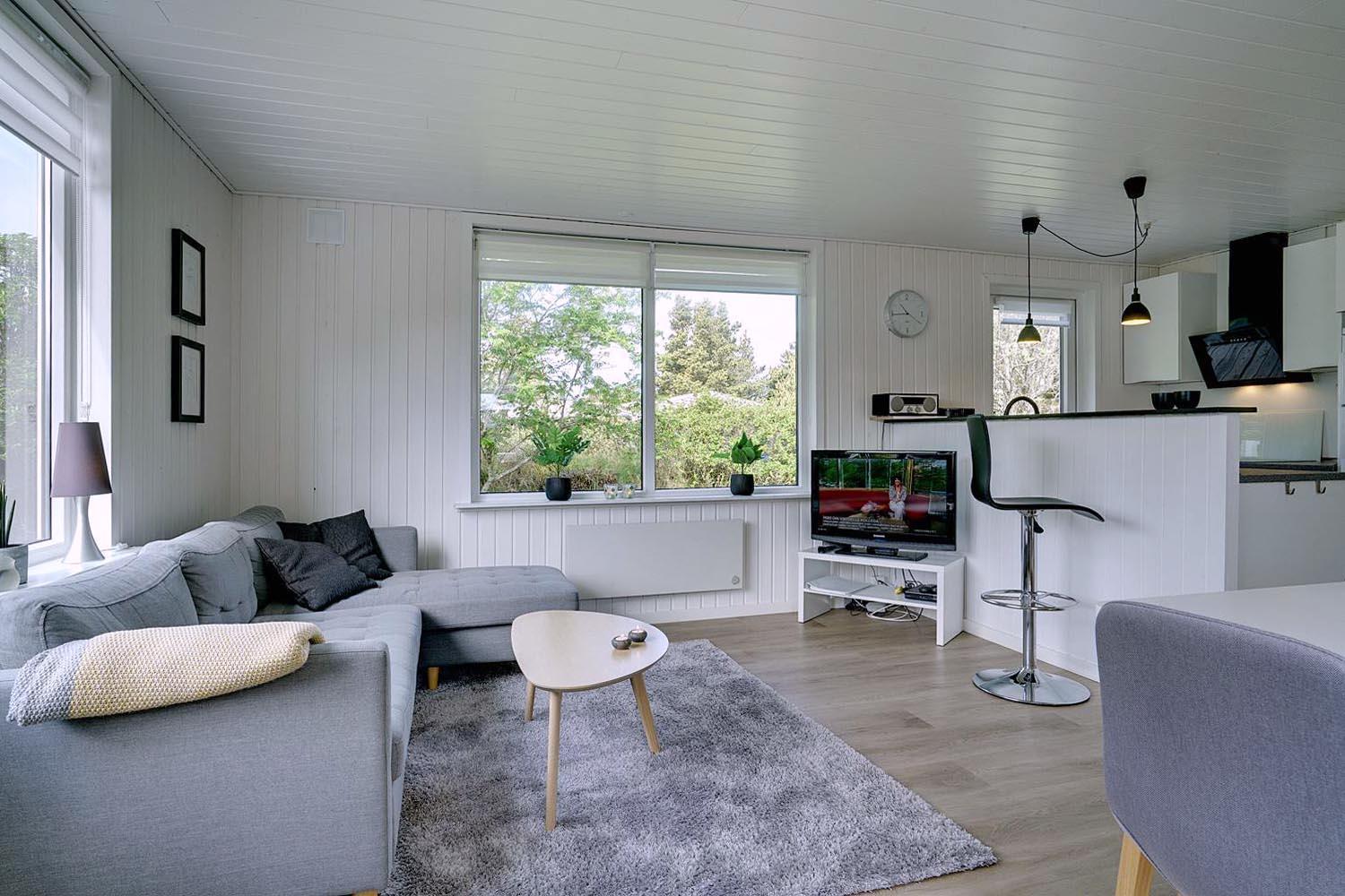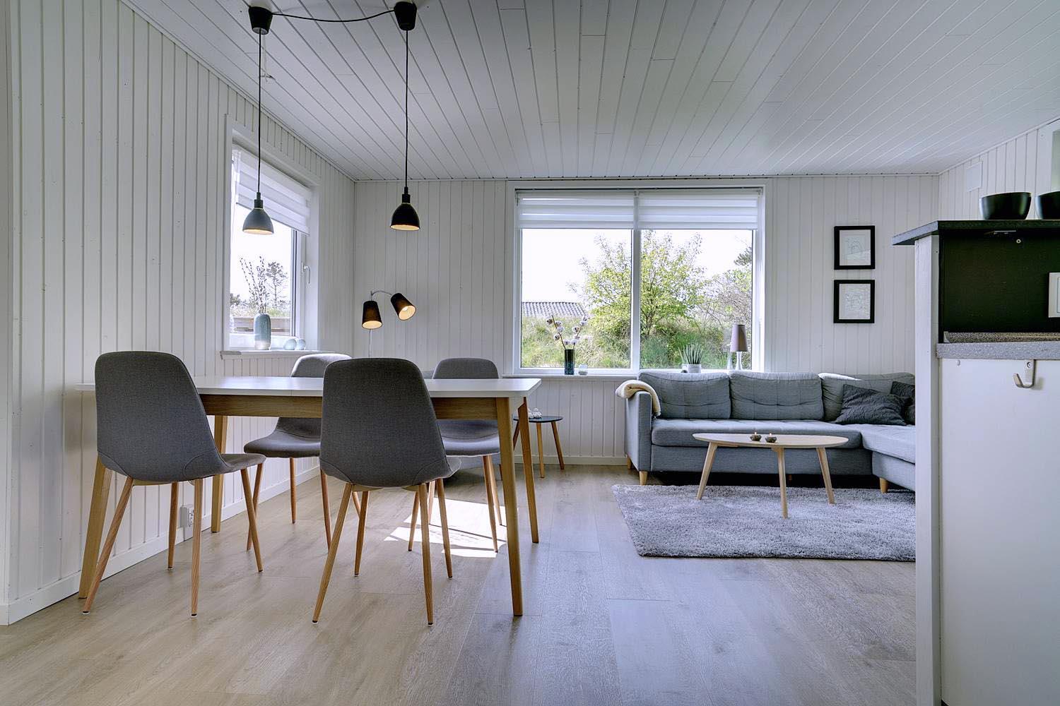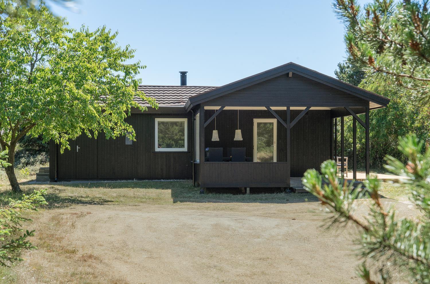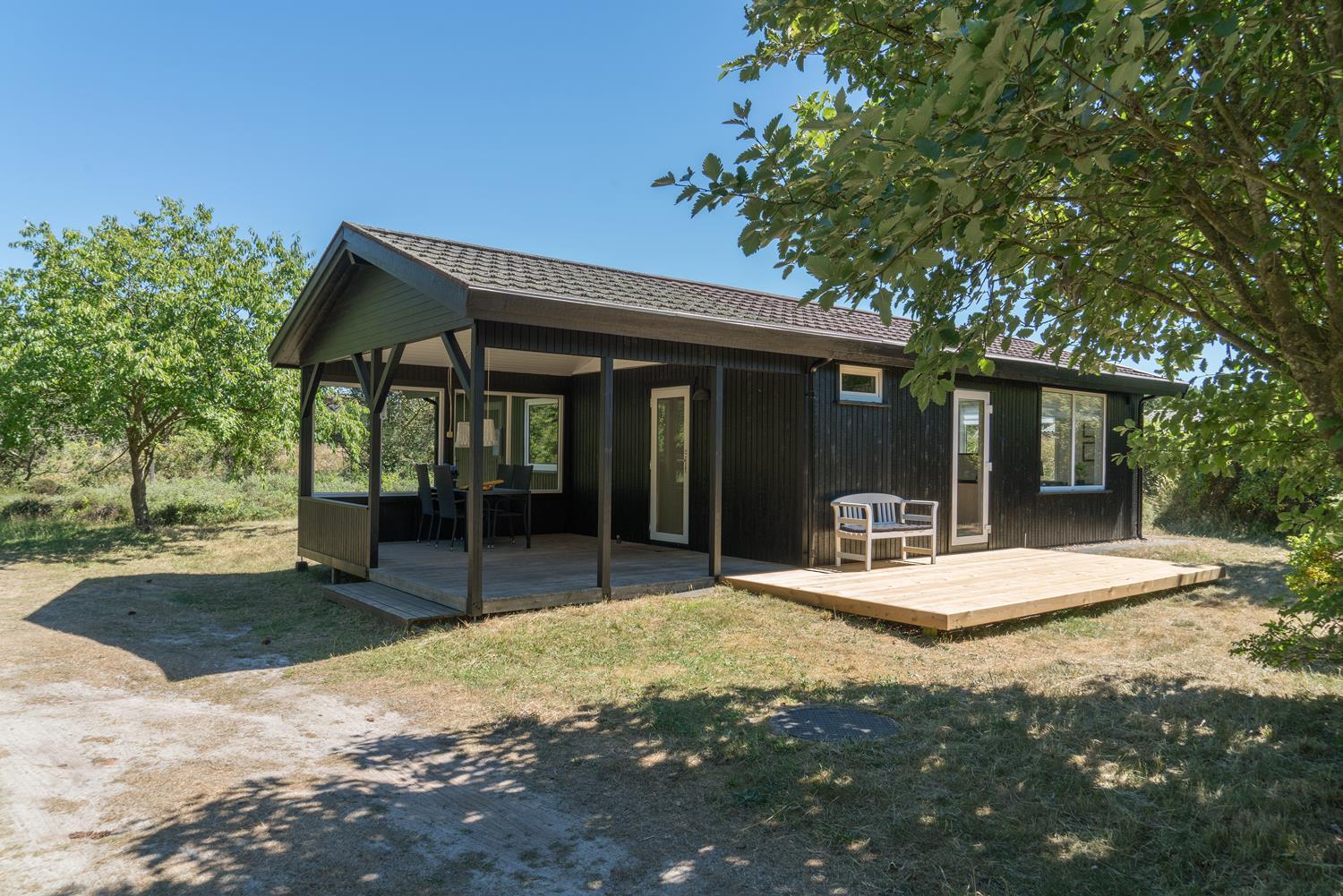 Hyggeligt træhus i Henne Strand med moderne faciliteter og tre dejlige terrasser i naturskønne omgivelser.