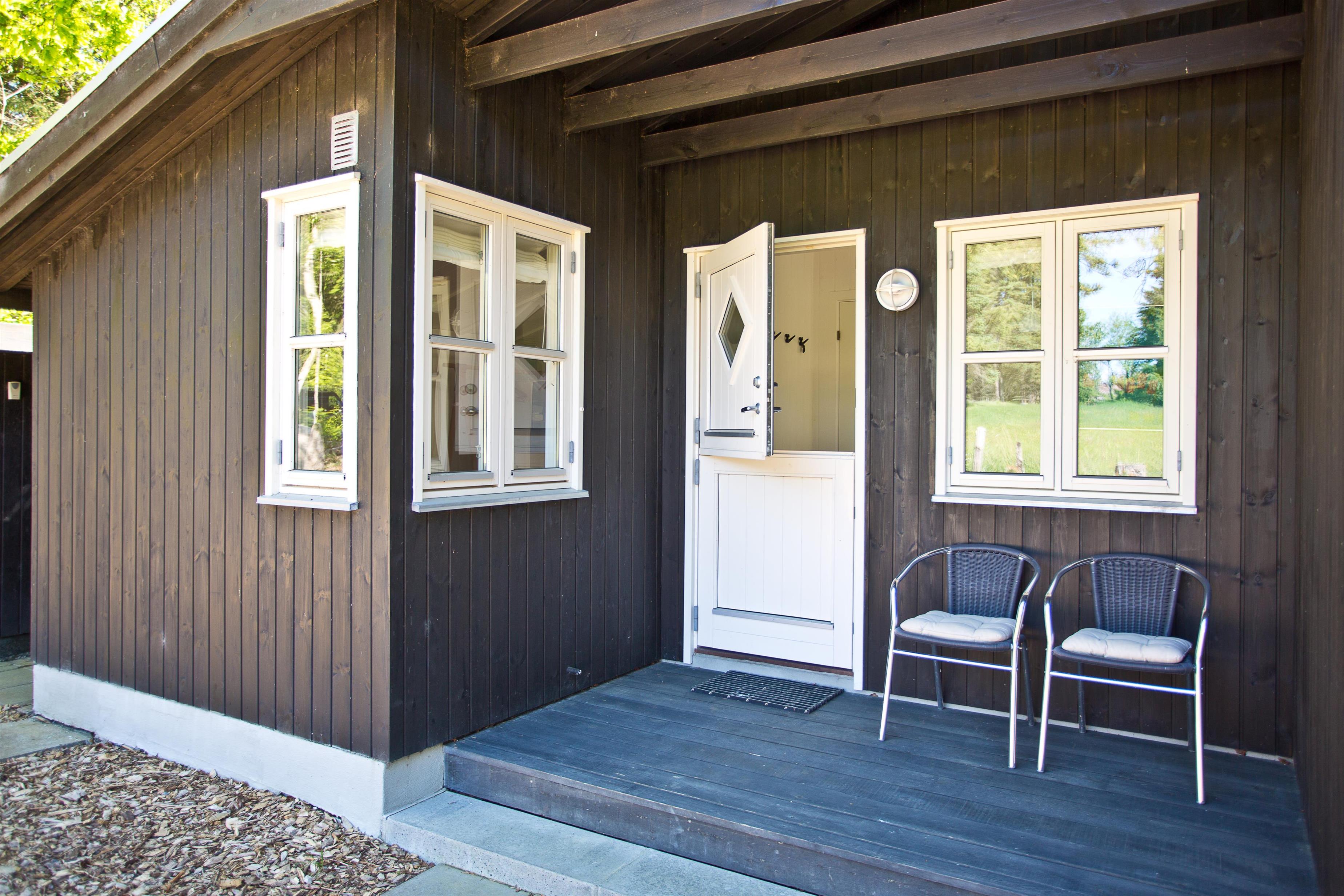 Huset ligger på naturgrund hvor du ugenert kan nyde de dejlige omgivelser. Der er terrasse rundt om huset med havemøbler og grill. Ved indgangen er der også en lille overdækket terrasse med med havestole.