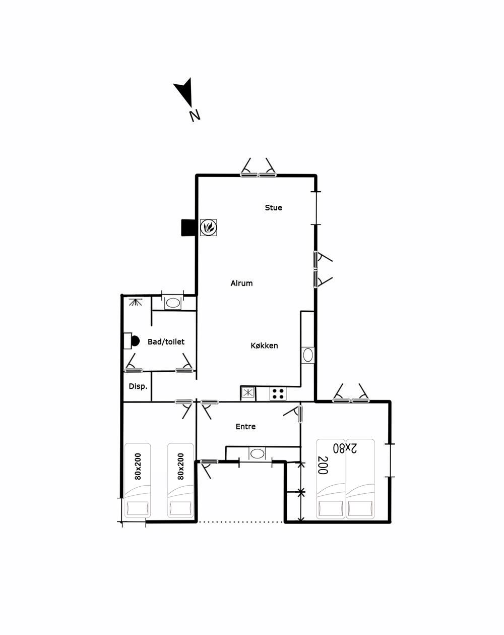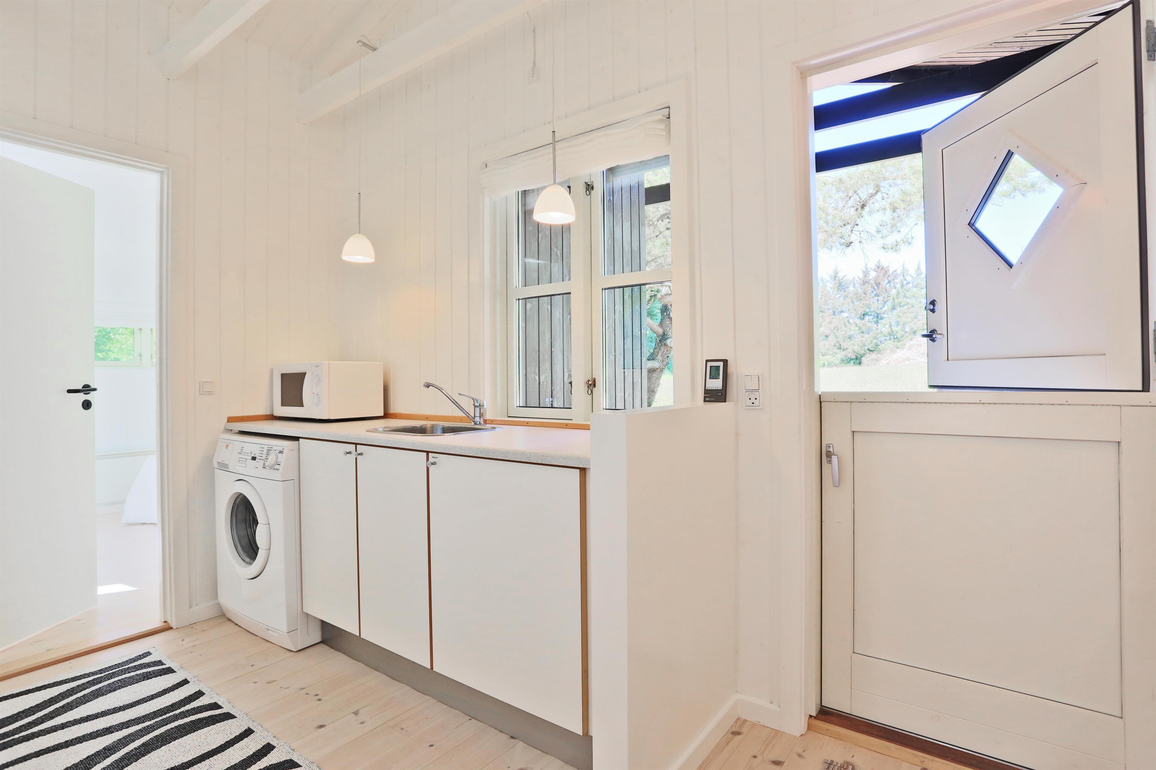 Et super dejligt træsommerhus med smagfuld indretning, renoveret i 2006. Flot badeværelse, gode og hyggelige Soverum, et bryggers hvorfra du går ind husets køkken og stue. Stuen, husets største rum er med brændeovn og er lyst og venligt.