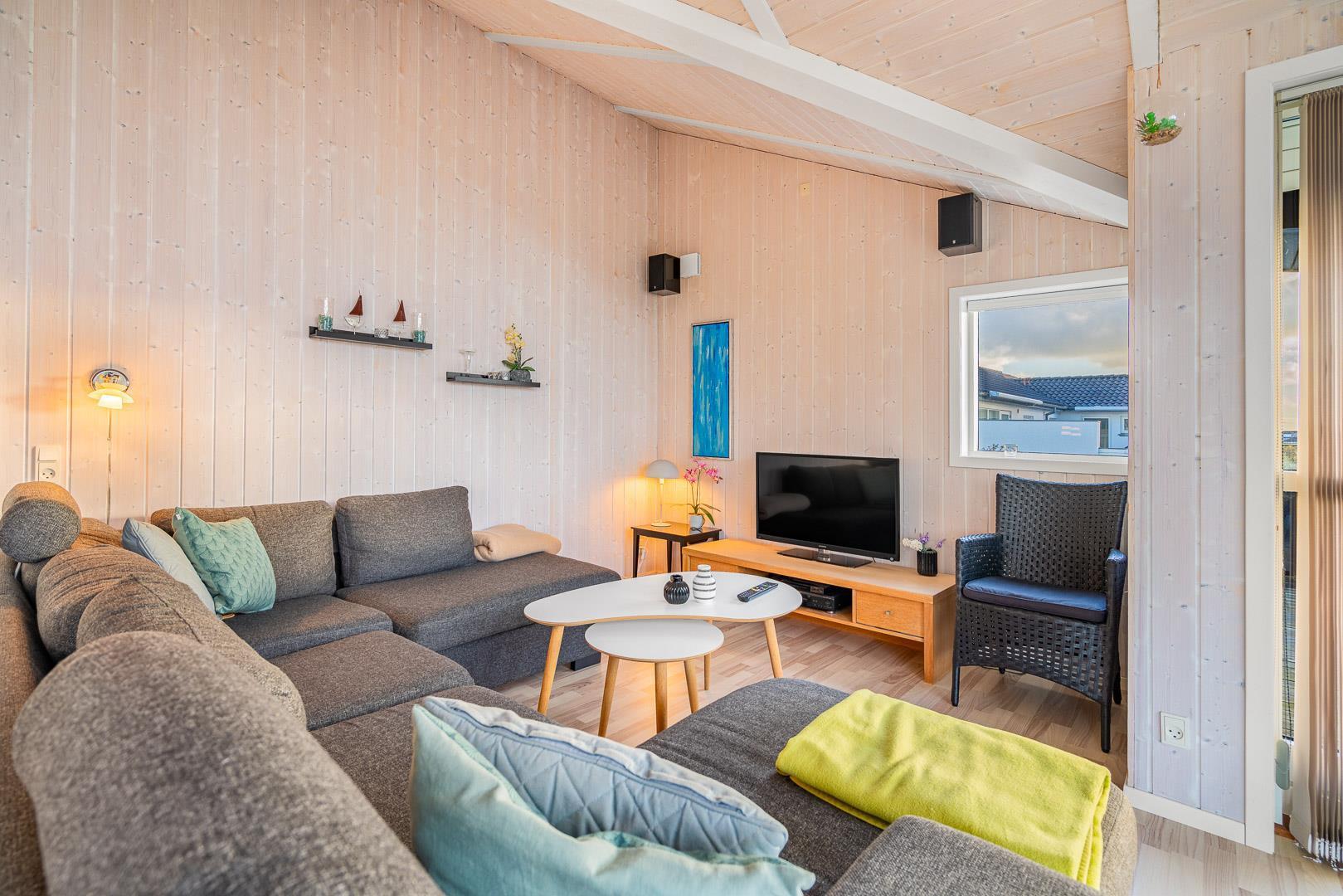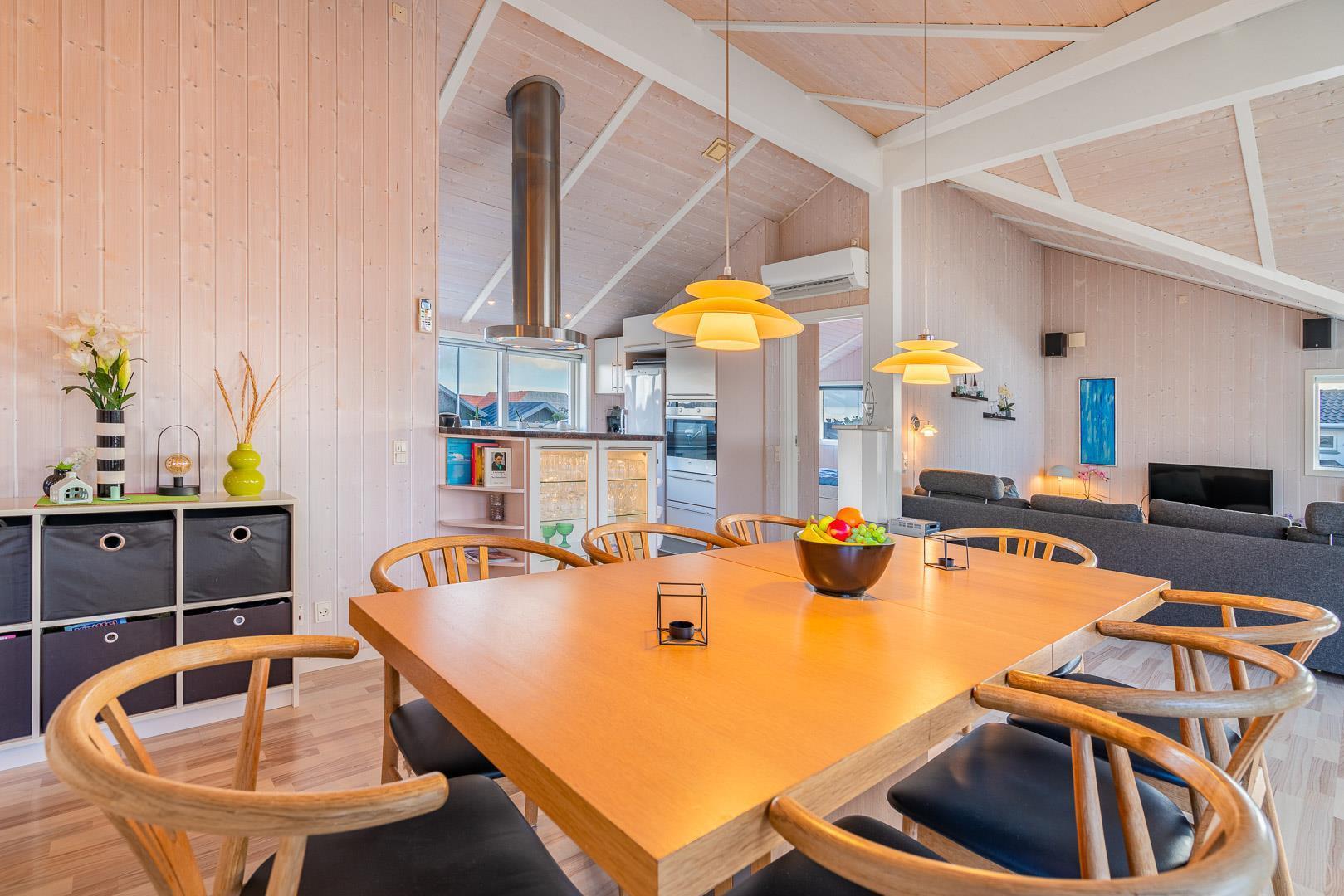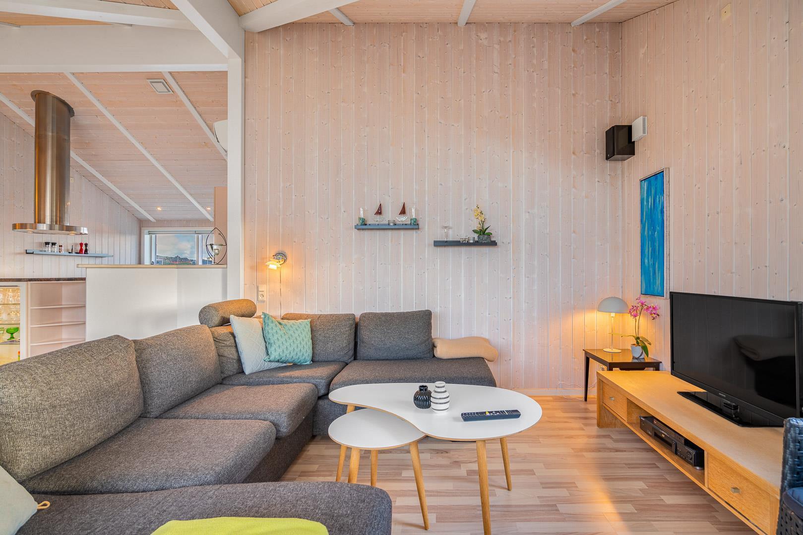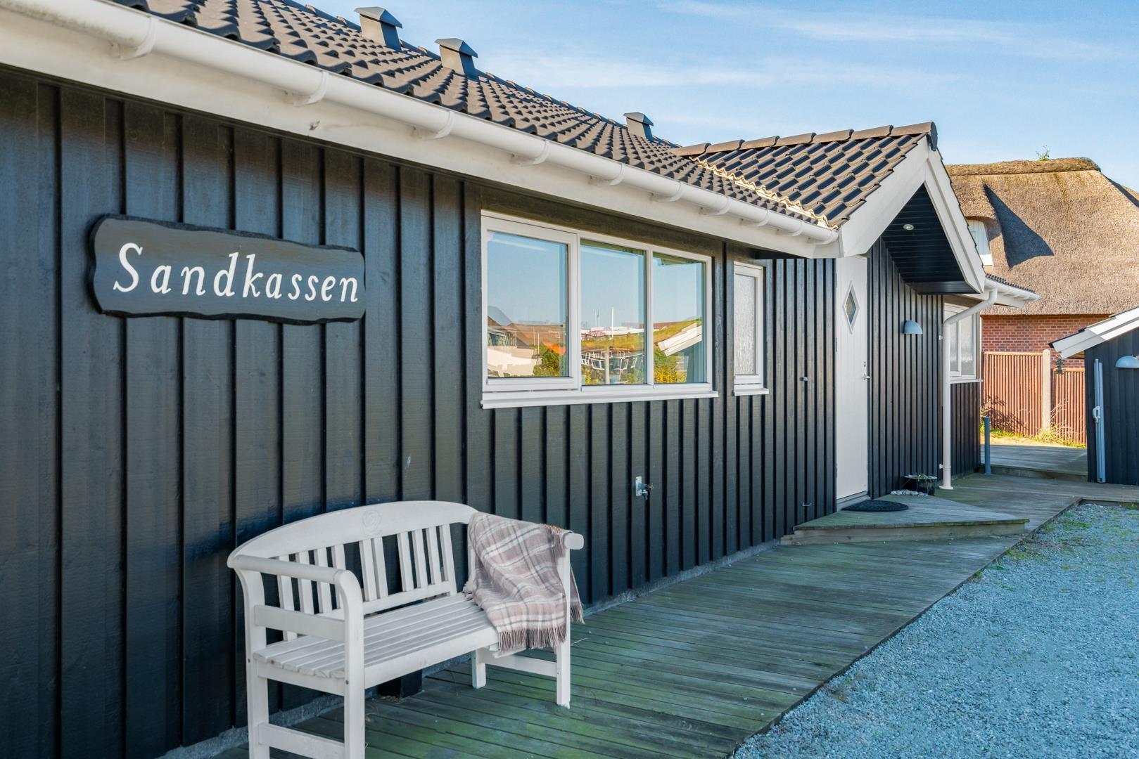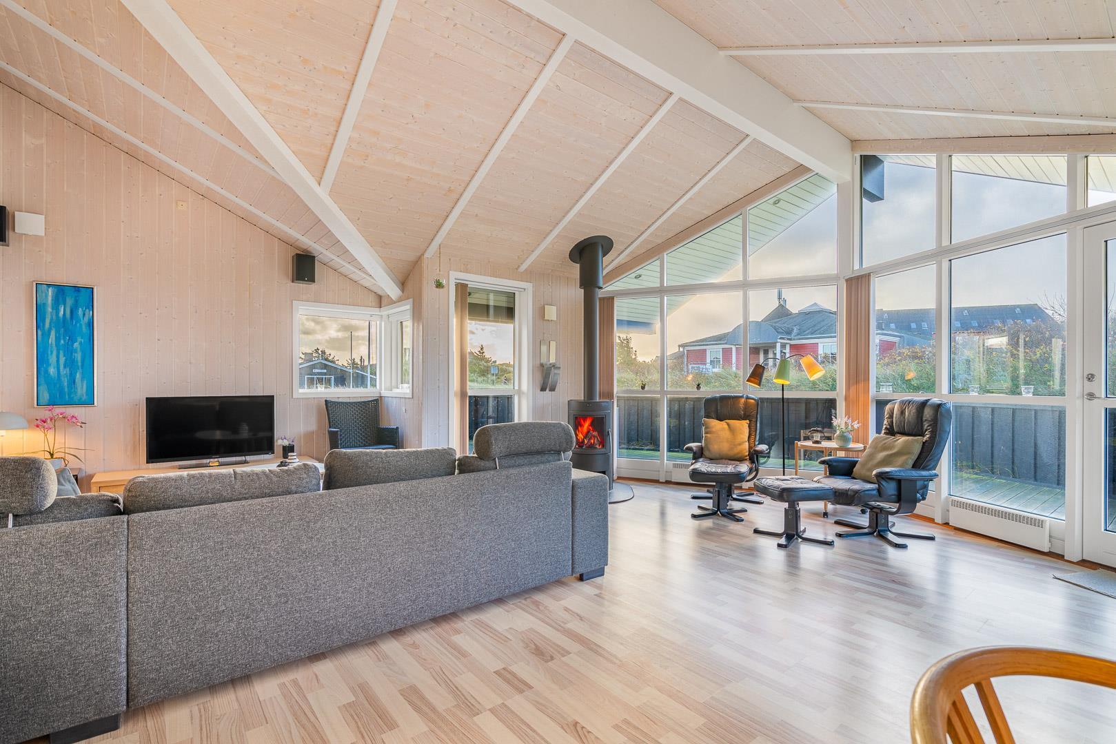 Kvalitetsferiehus med spa og sauna nær Henne Strands centrum og strand, med flere ugenerede terrasser og godt lysindfald.