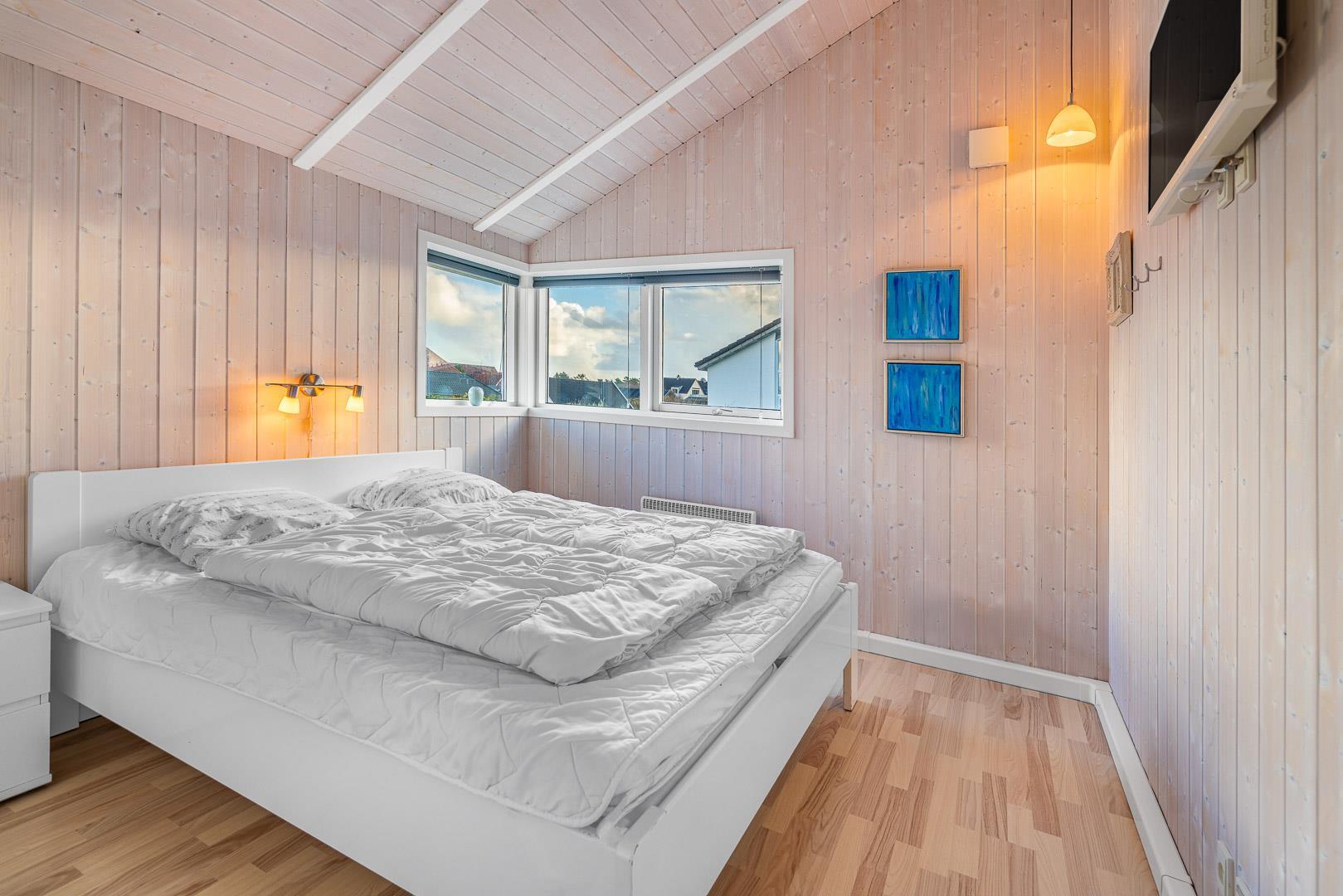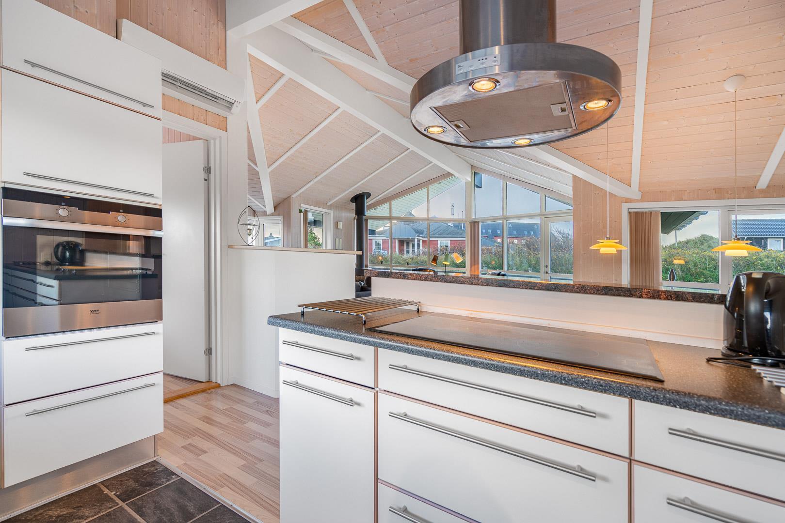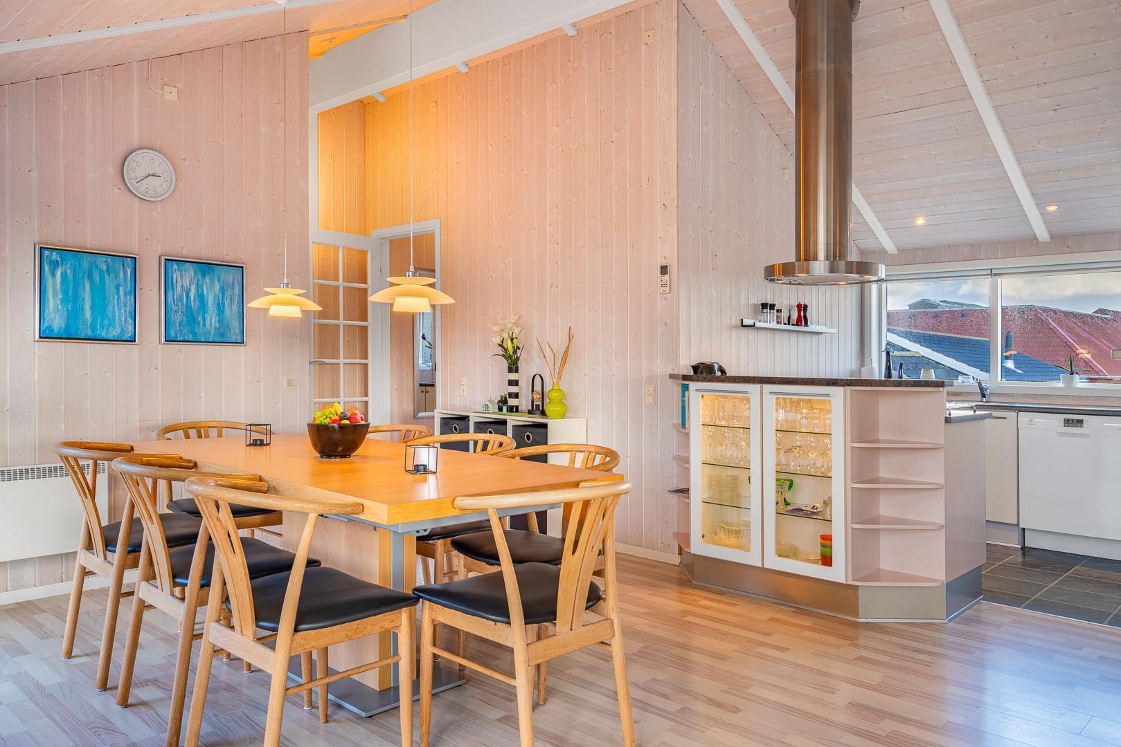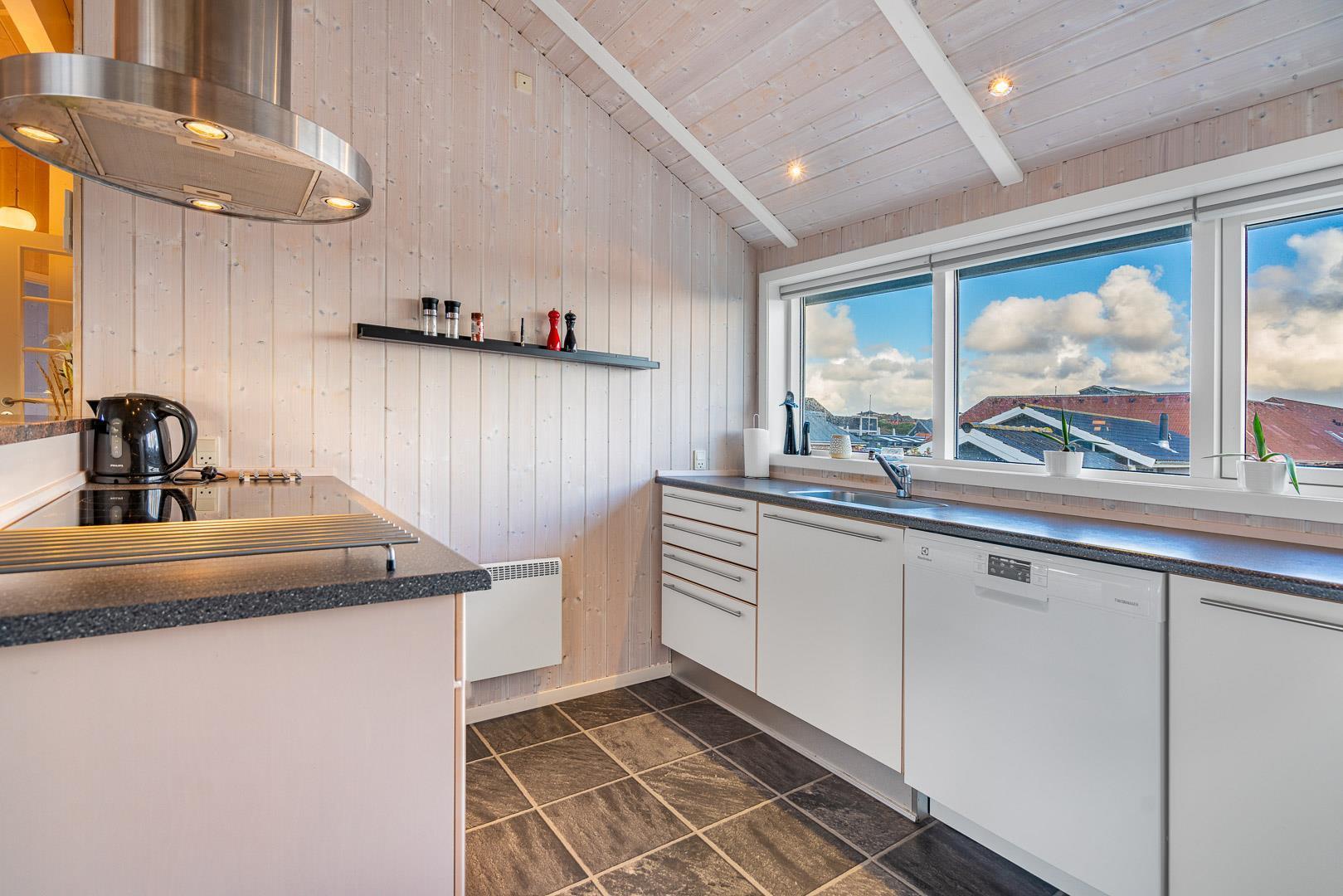 På en skøn klitgrund kun 2 minutters gang fra Henne Strands centrum og stranden, ligger dette kvalitetsferiehus med spa og sauna, godt tilbagetrukket i forhold til vejen, Det store vinduesparti giver et godt lysindfald ind i stuen. Huset råder over flere dejlige ugenerede terrasser, hvor der altid er mulighed for at finde en læ krog.