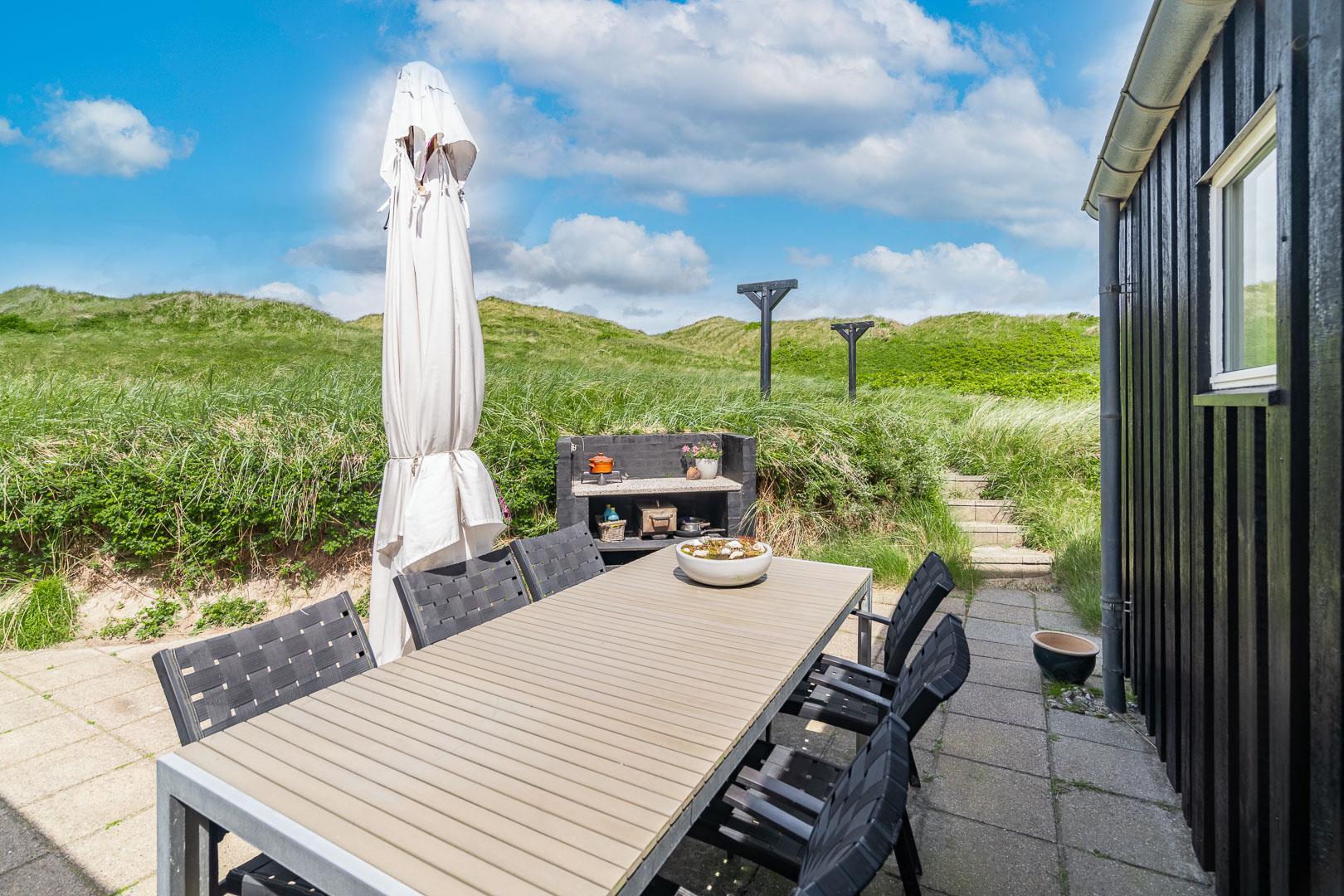Oplev skønne øjeblikke på de omkransende terrasser, der er placeret efter verdenshjørnerne – perfekte steder at nyde en lækker frokost eller slappe af efter en forfriskende dukkert i Vesterhavet. Dette sommerhus i Henne Strand er helt igennem unikt og skaber rammerne for en uforglemmelig ferie tæt på naturen. Med Henne Strands pulserende café- og byliv inden for cykelafstand får du det bedste fra begge verdener – ro og nærvær kombineret med liv og energi. Husk derfor at medbringe cyklerne hvis du ønsker at opleve Henne Strand og den dejlige natur omkring huset fra cyklen.