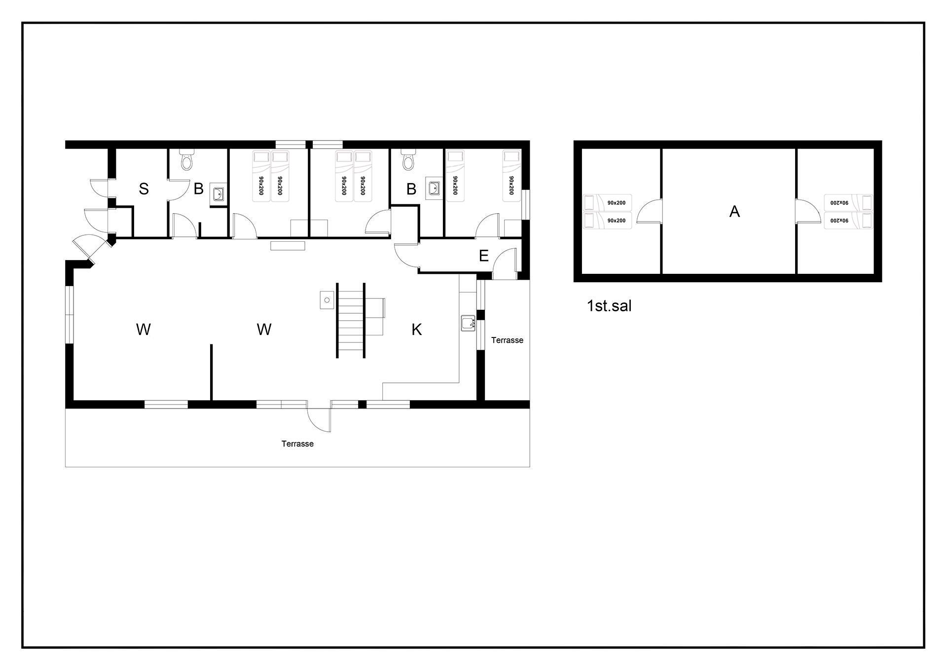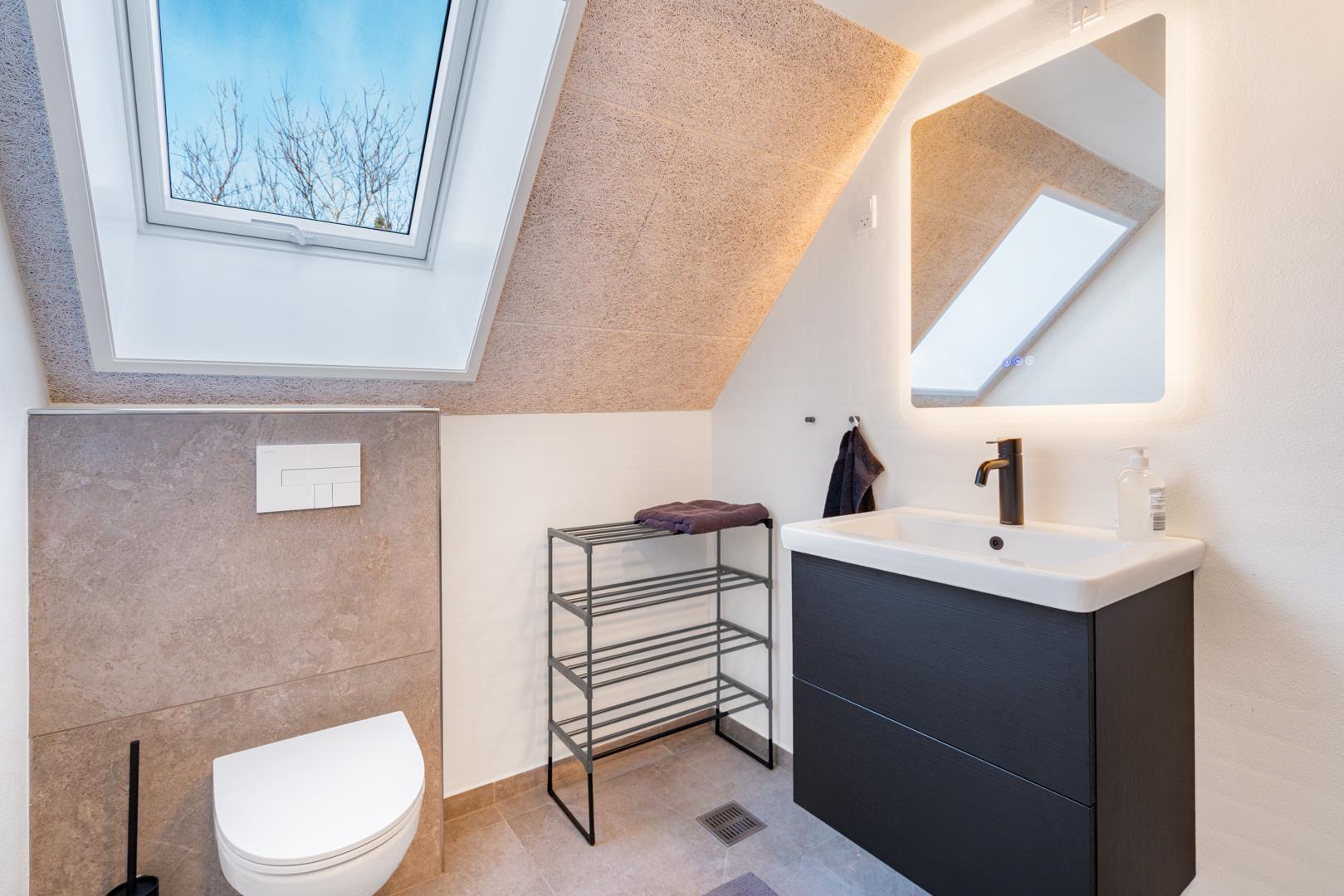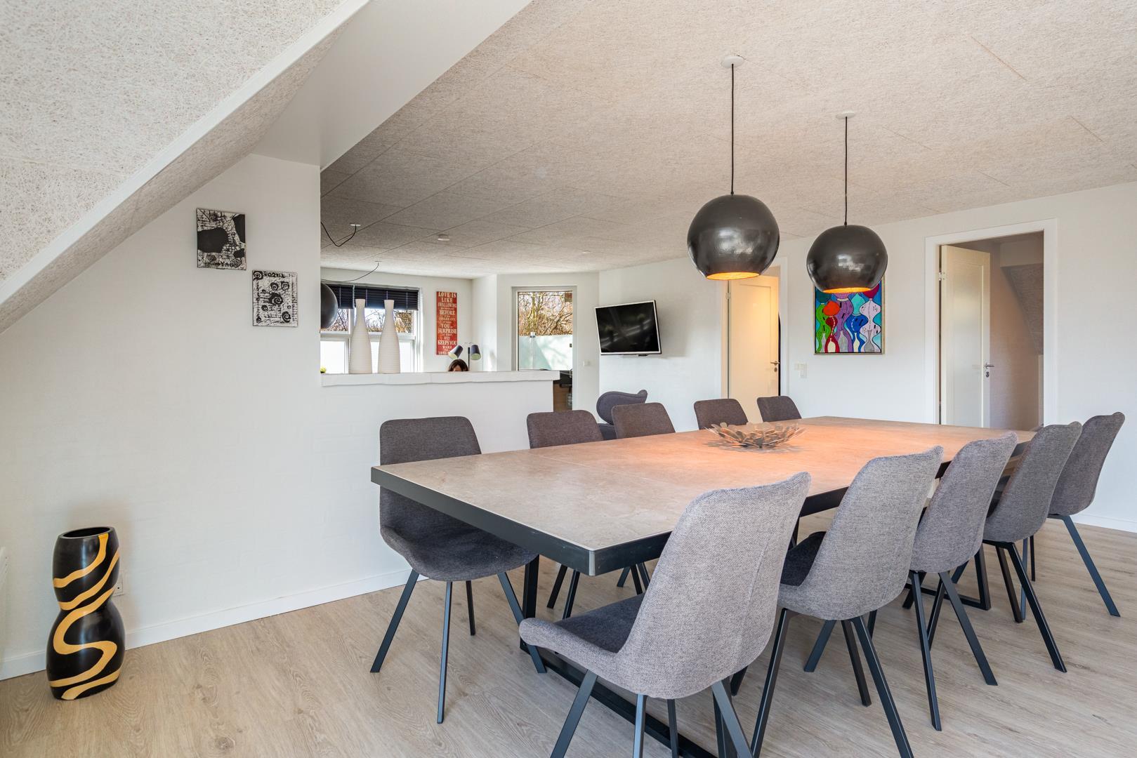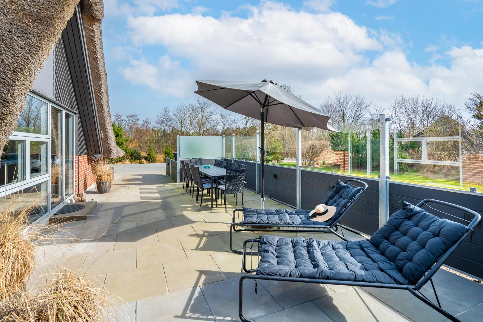 Dette sommerhus har 5 soveværelser og 2 moderne badeværelser med gulvvarme, hvilket gør det ideelt til både familier og vennegrupper. Et ekstra plus er saunaen, hvorfra der også er direkte udgang til terrassen.