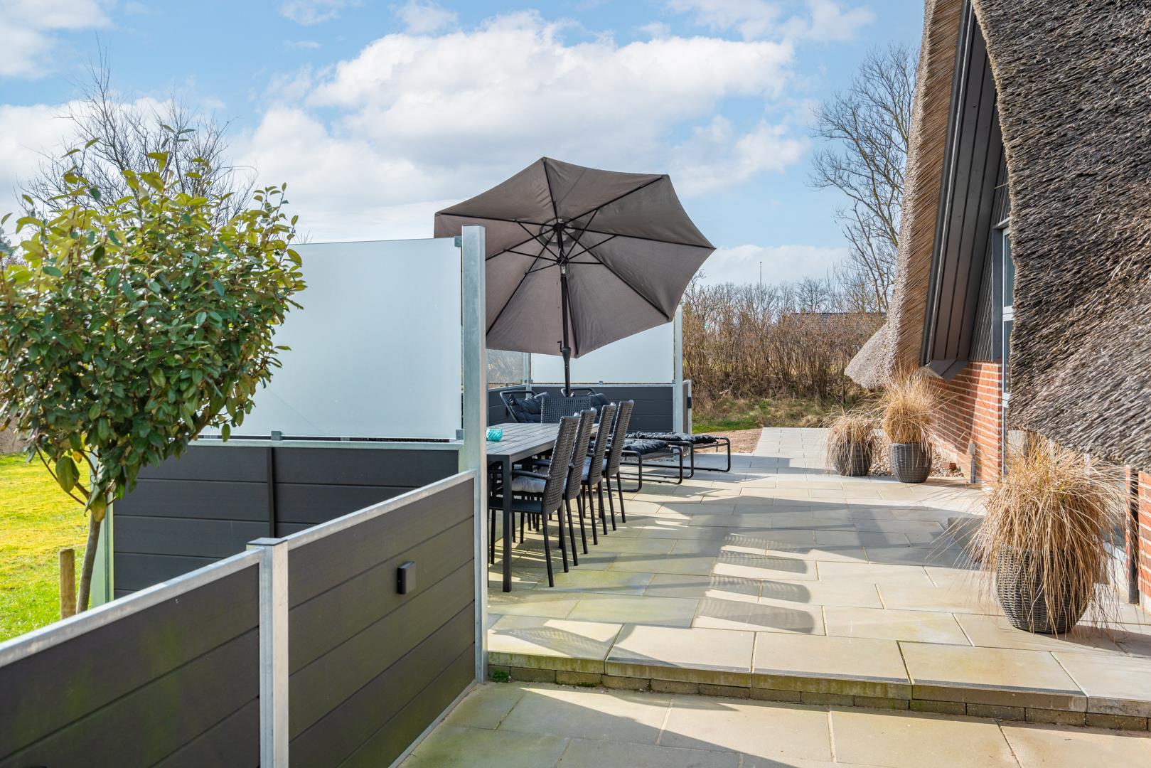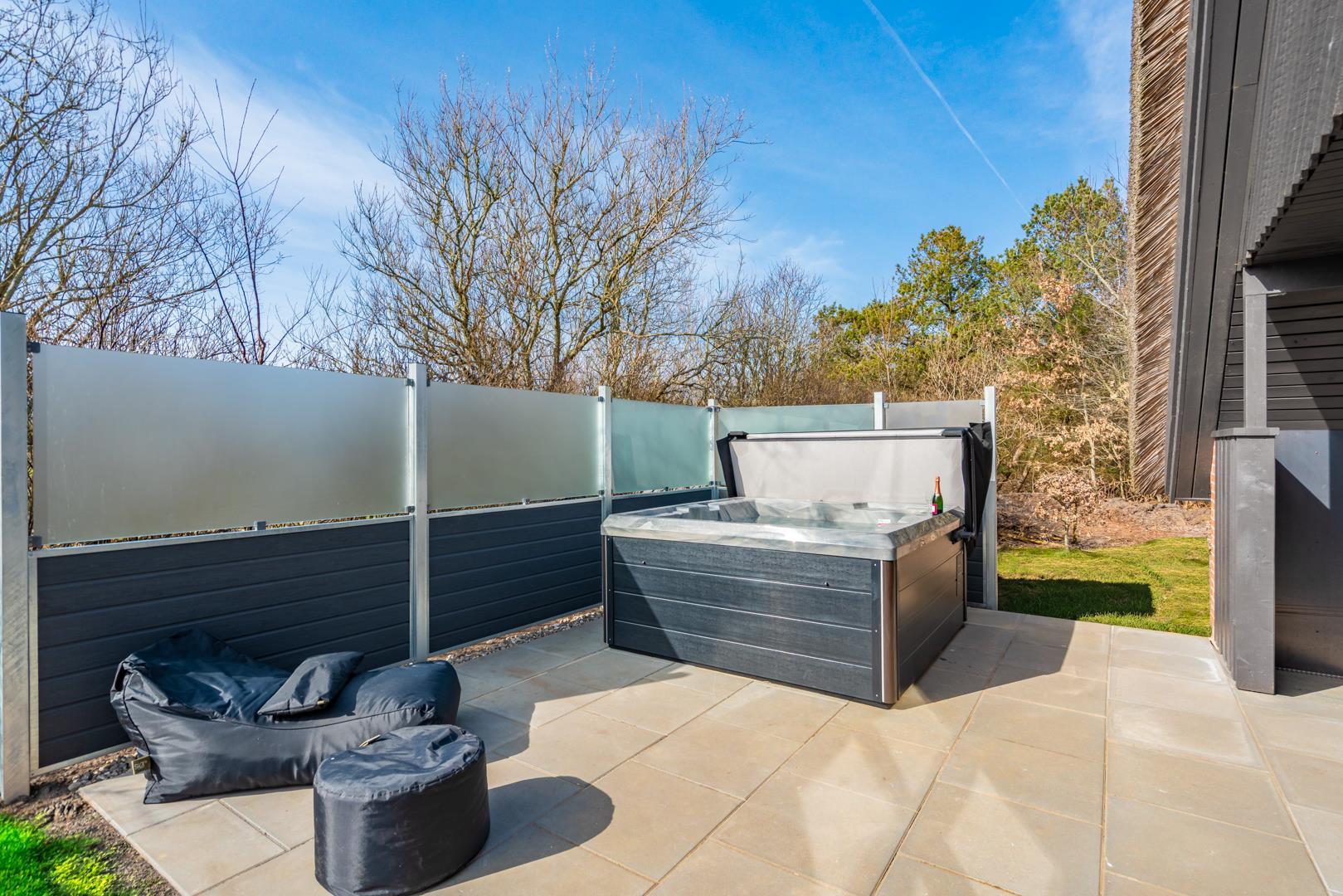 Afskærmet udeområde med spabad og terrasse