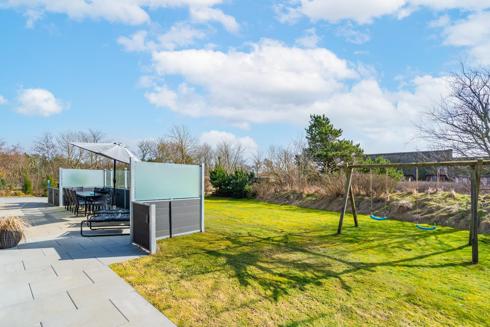 For børnene er der en gynge i haven, og i depotrummet er der ekstra plads til cykler eller golfudstyr.