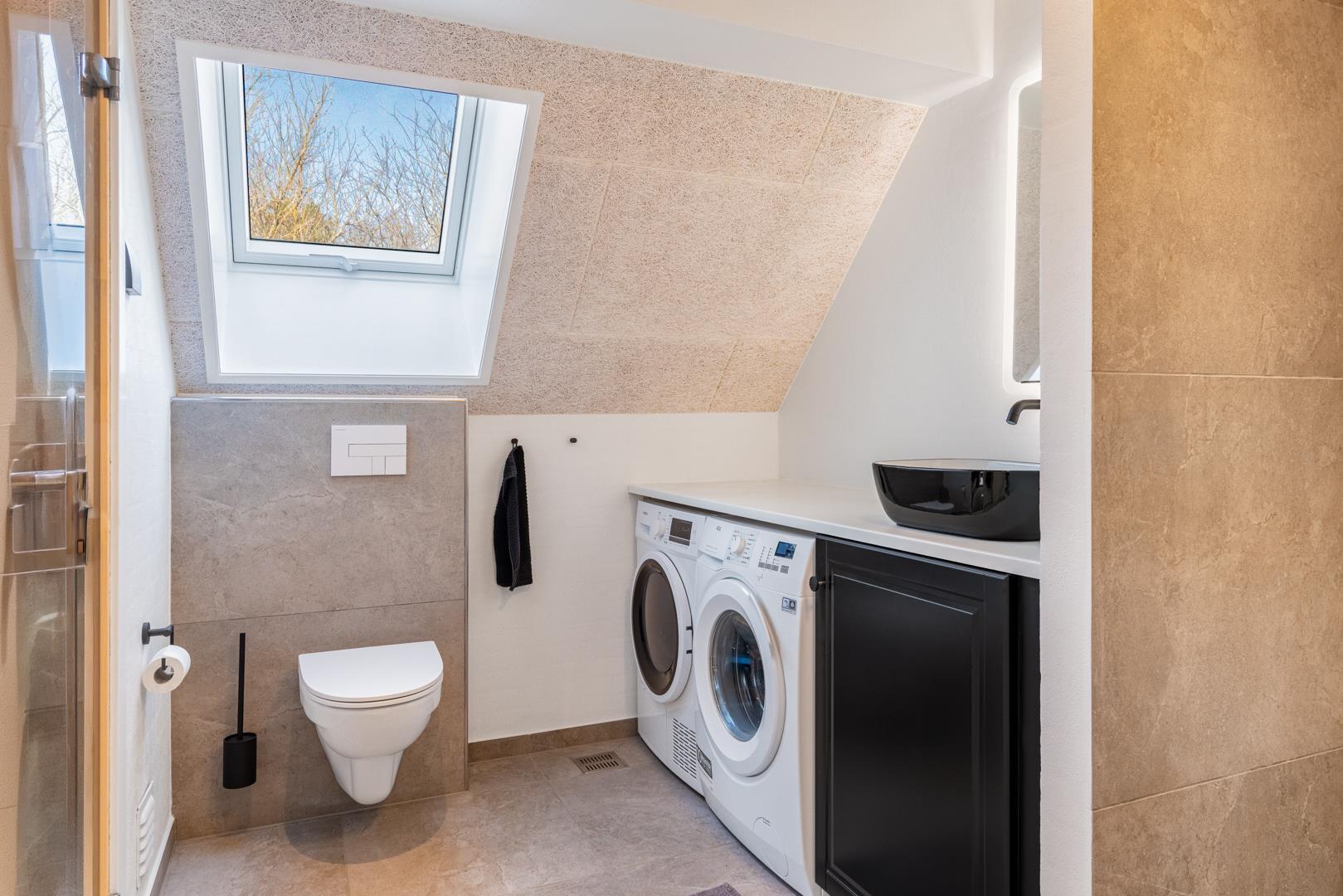 Derudover er der både vaskemaskine og tørretumbler til rådighed, og i entréen er der god plads til jakker, sko og overtøj.