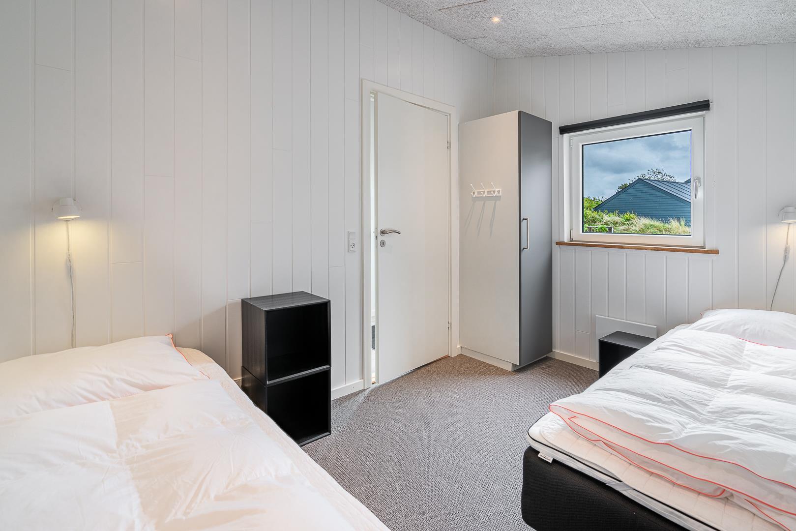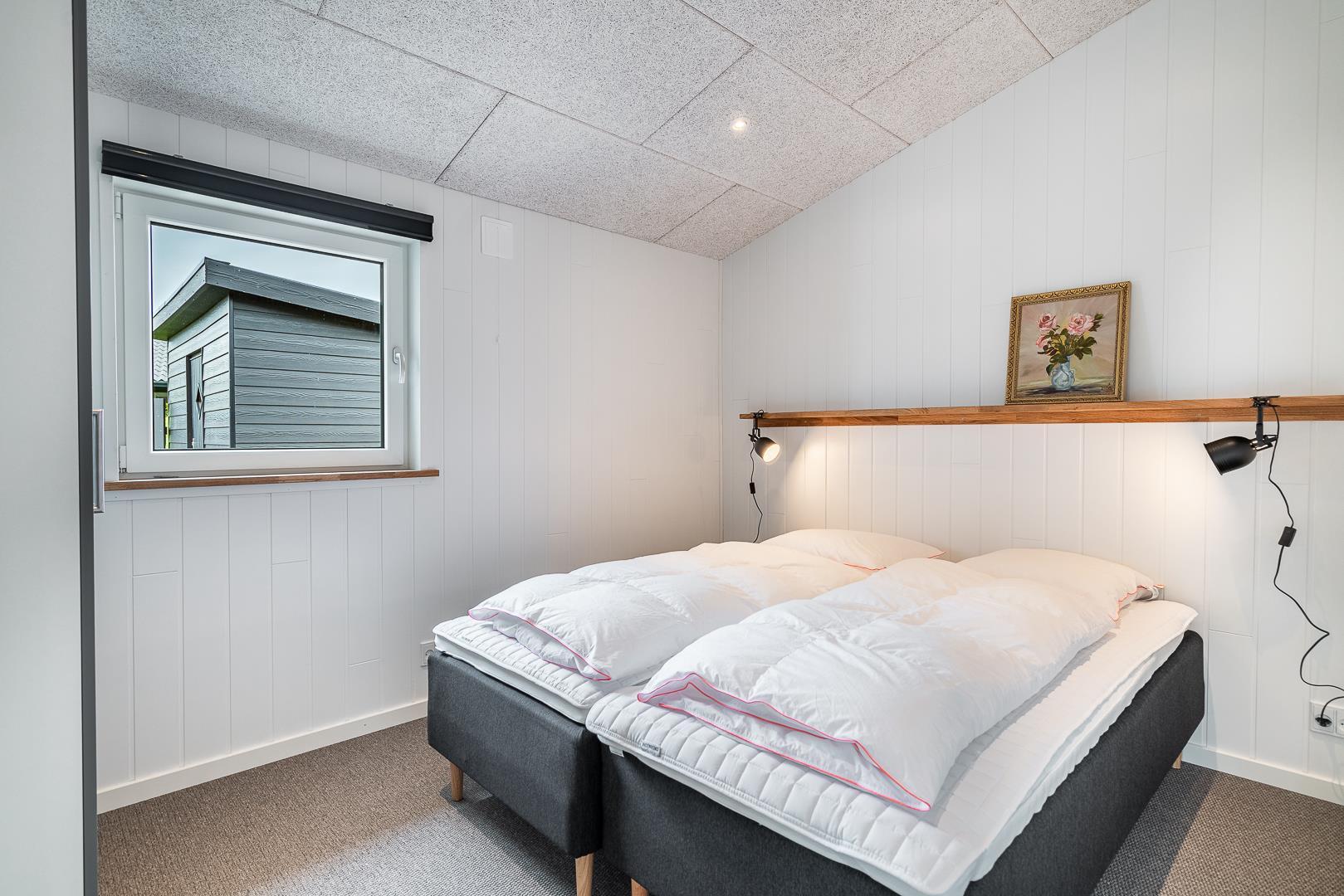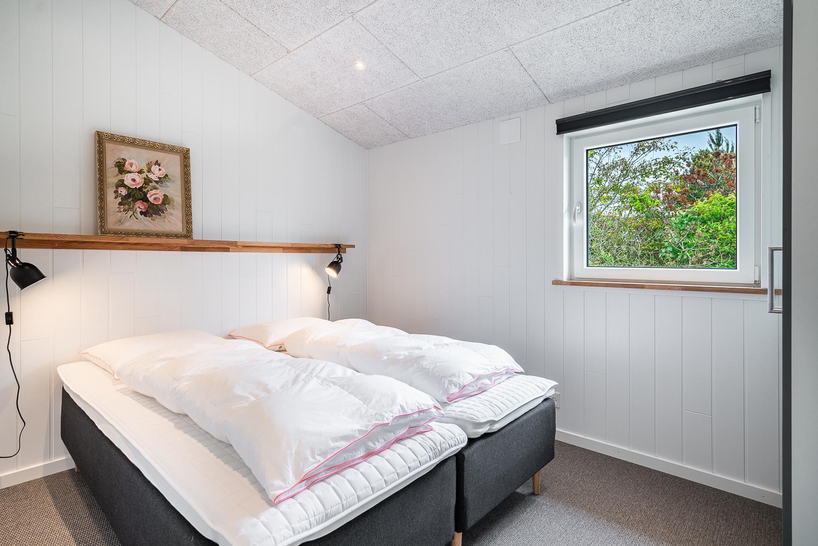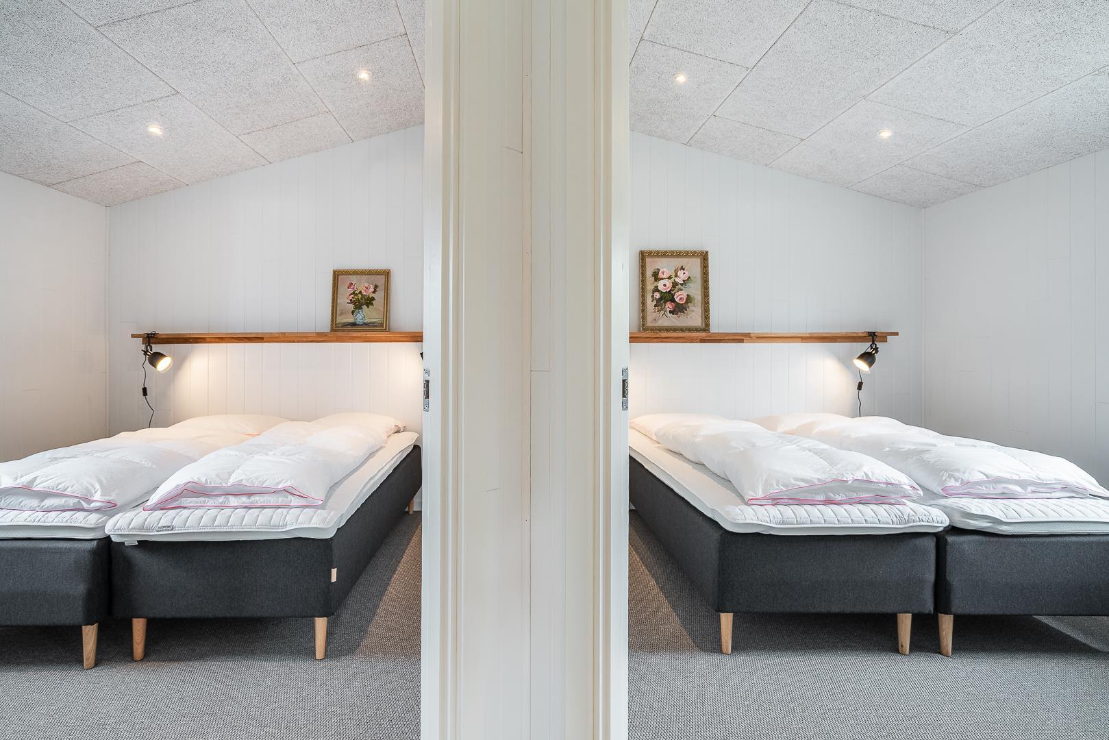 Husets sengepladser fordeler sig på 2 værelser med dobbeltsenge og 1 med 2 enkeltsenge.
