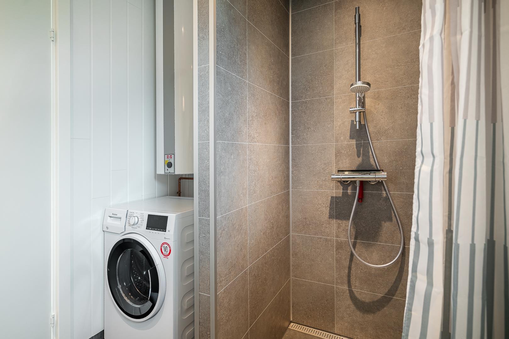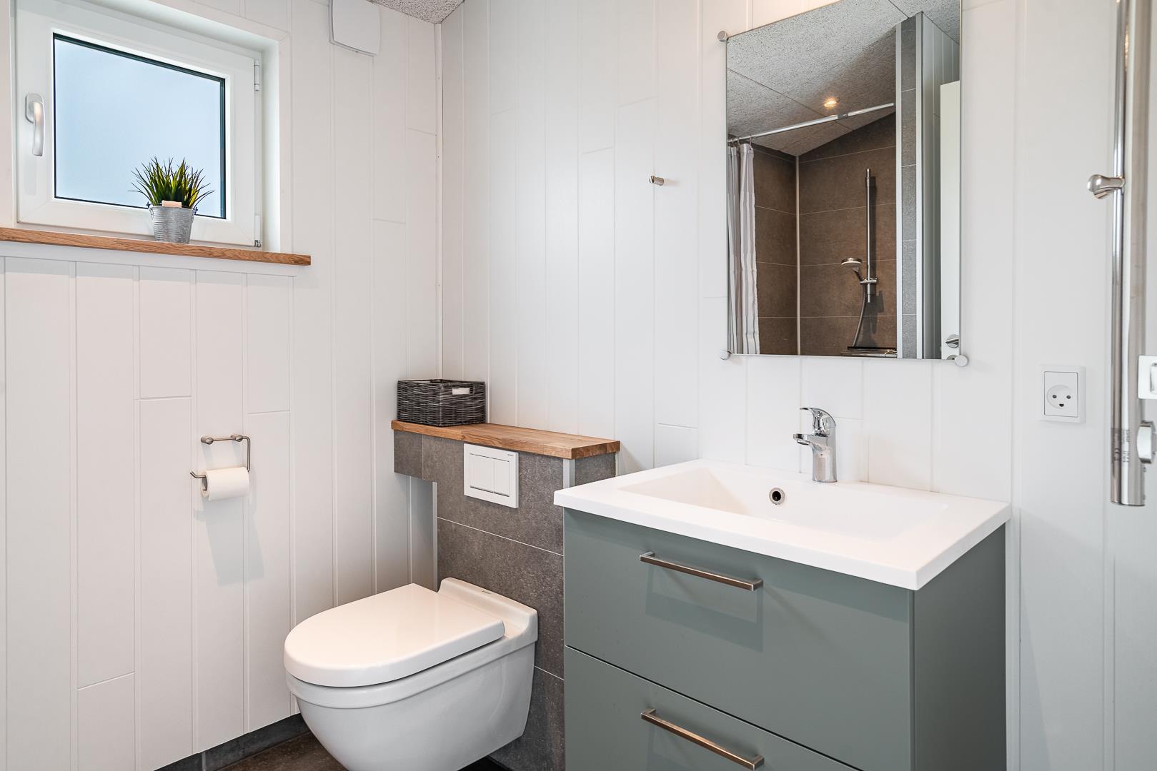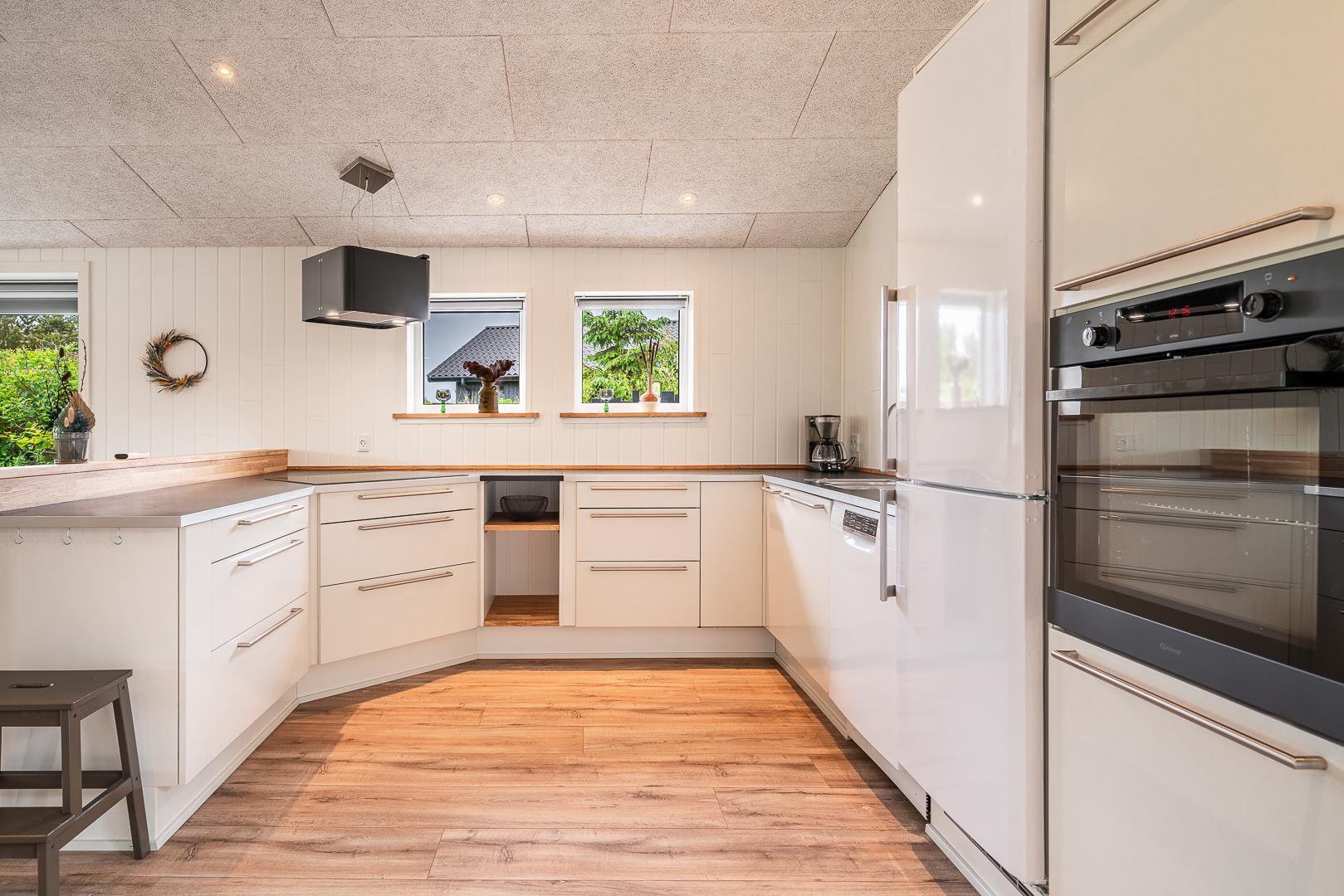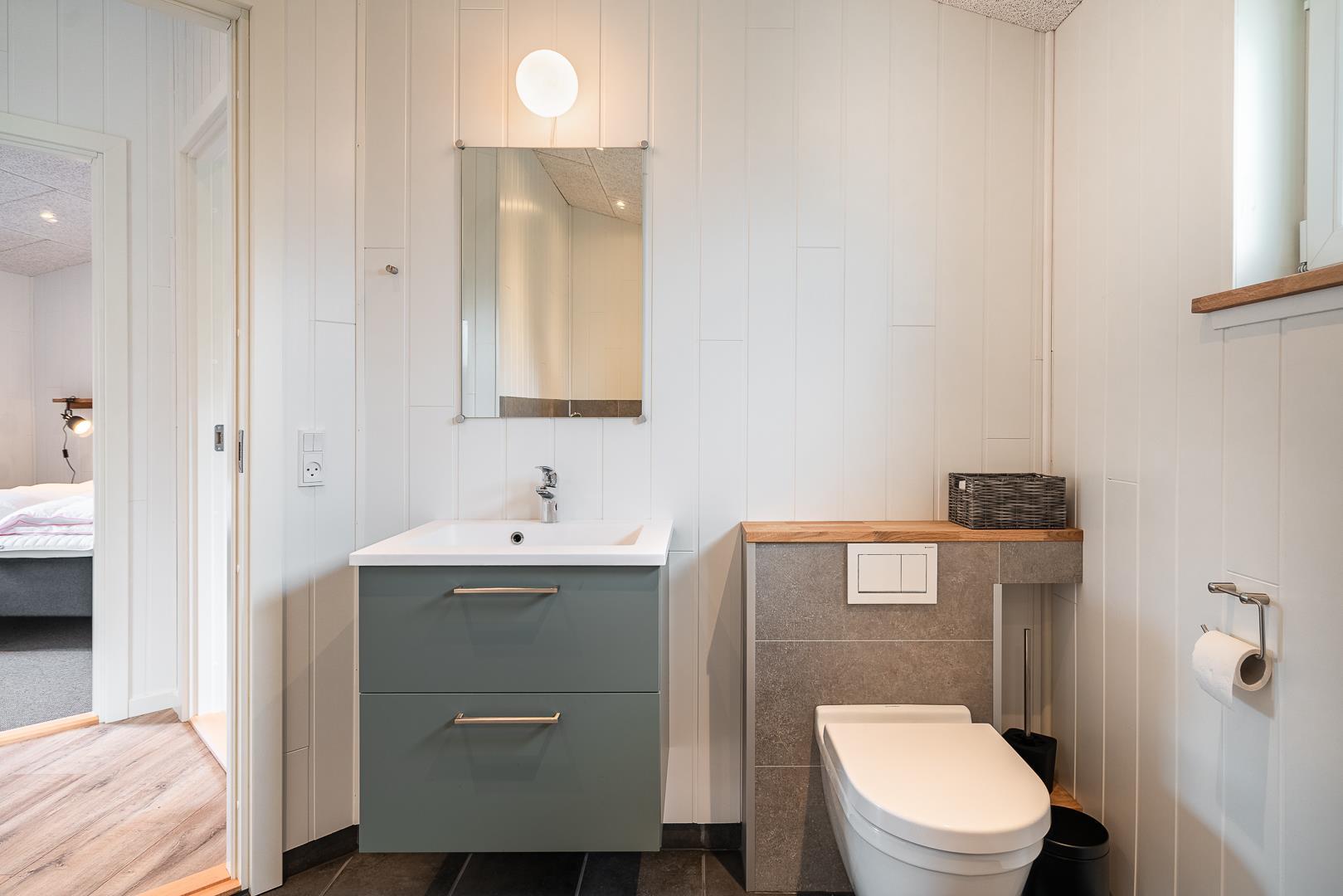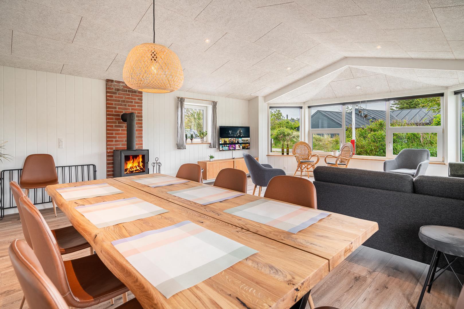 Stuen og køkkenet er i hjertet af huset og her er samlingspunktet for hele familien, hvor der kan laves mad, hygges og se TV. Der kan også på de kolde aftener efter en lang travetur ved stranden tændes op i brændeovnen. 2 dejlige badeværelser med bruser og gulvvarme.