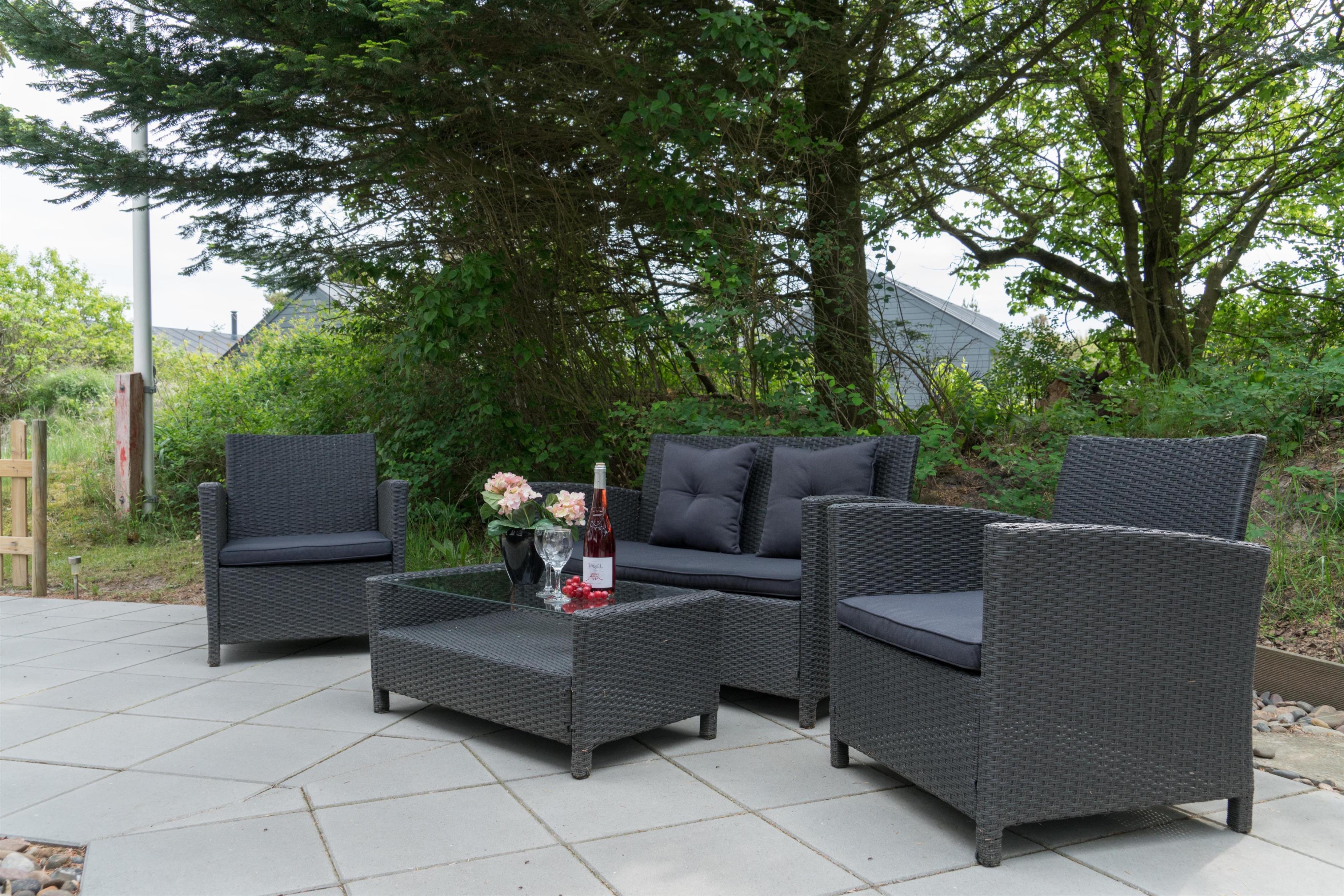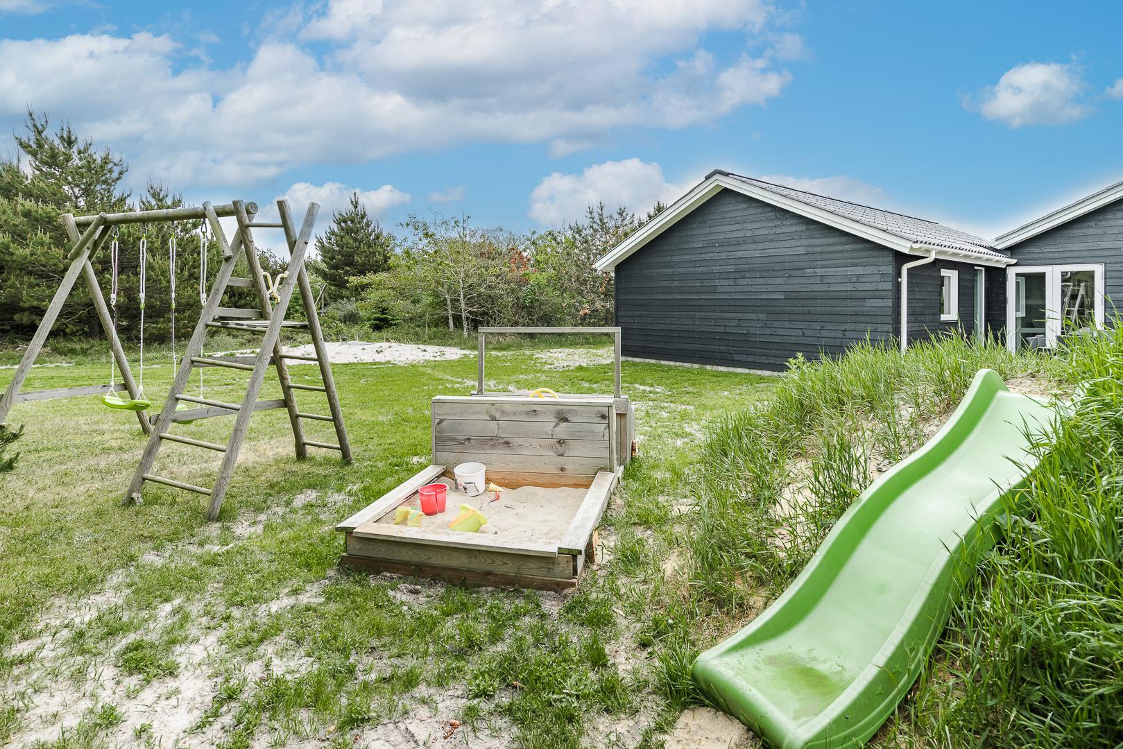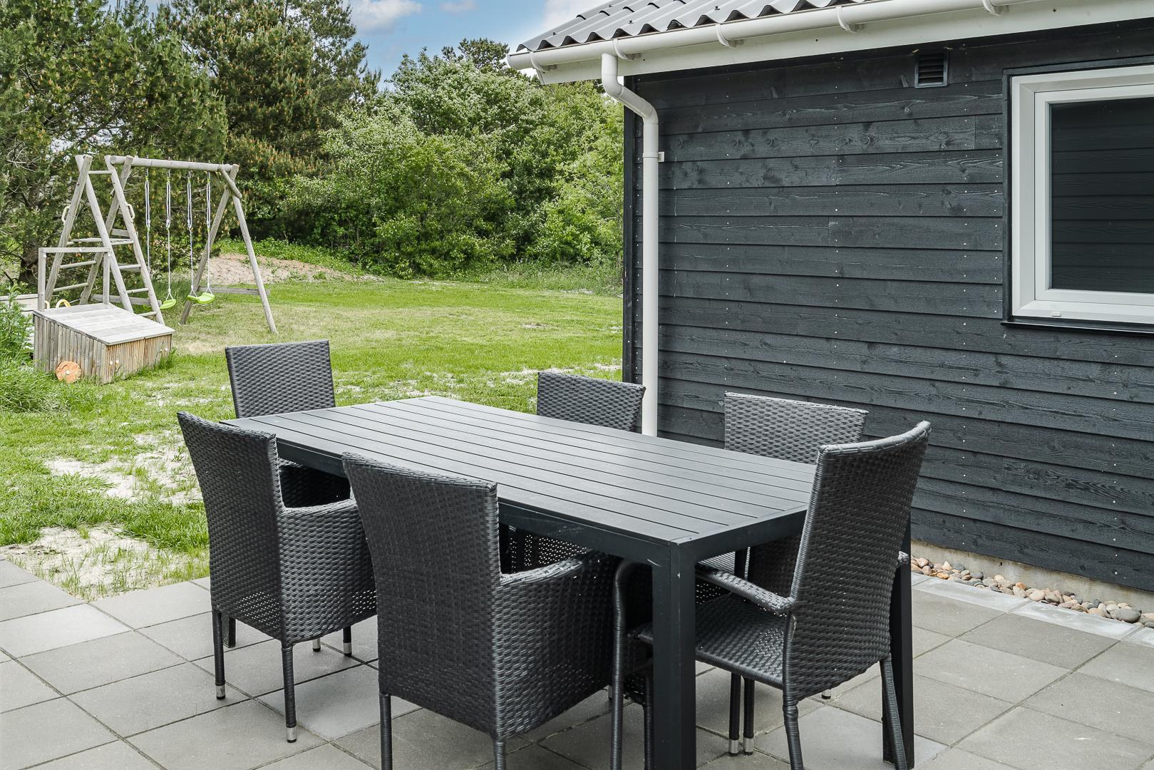Feriehuset er beliggende på en stor grund hvor børnene har god plads til leg og boldspil. På de dejlige terrasser kan solen og aftenen foran grillen nydes. Et skønt velbeliggende feriehus som er ideel for familien med børn.