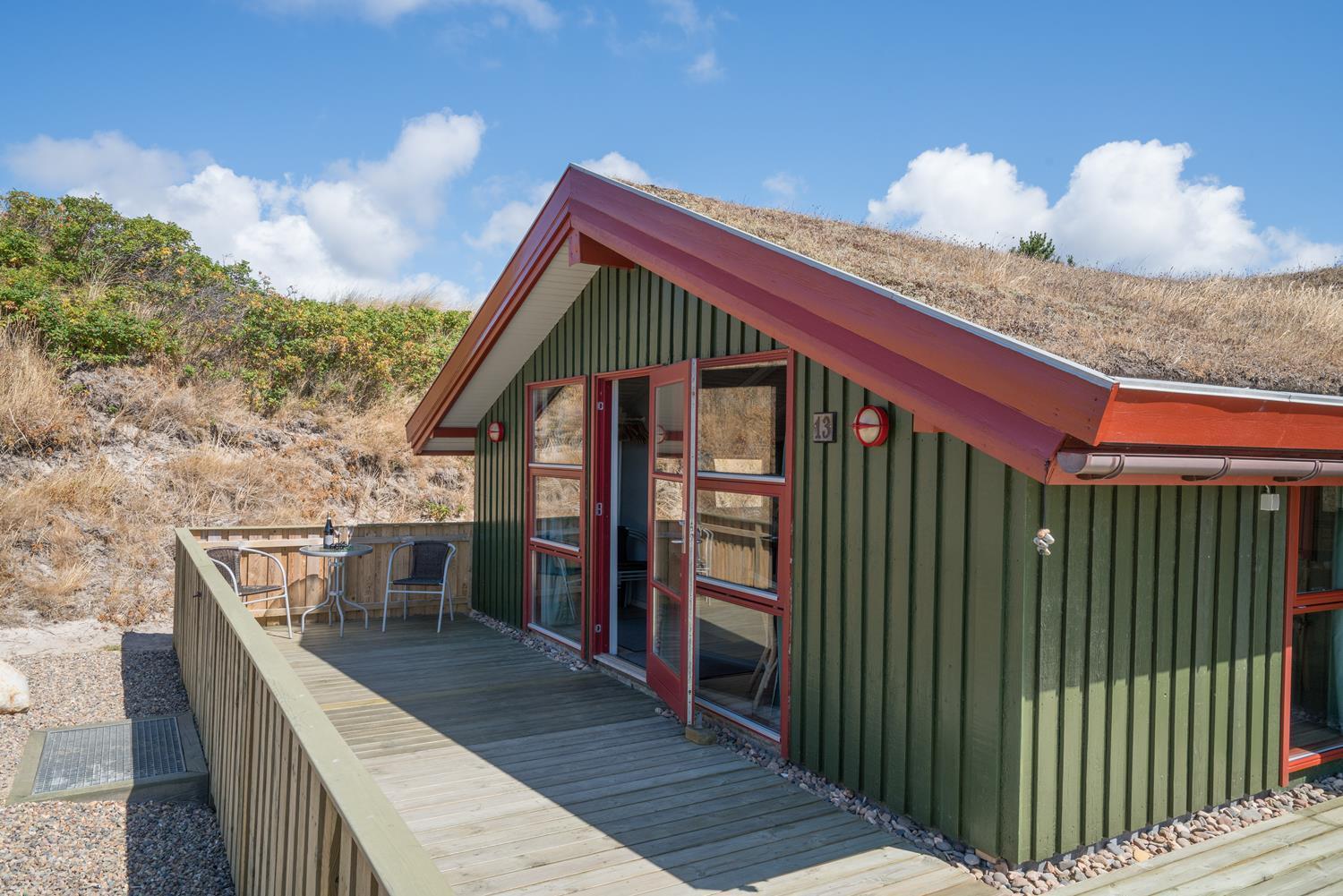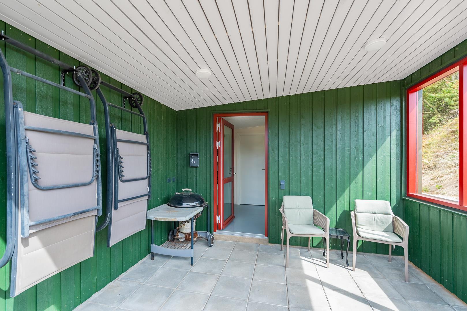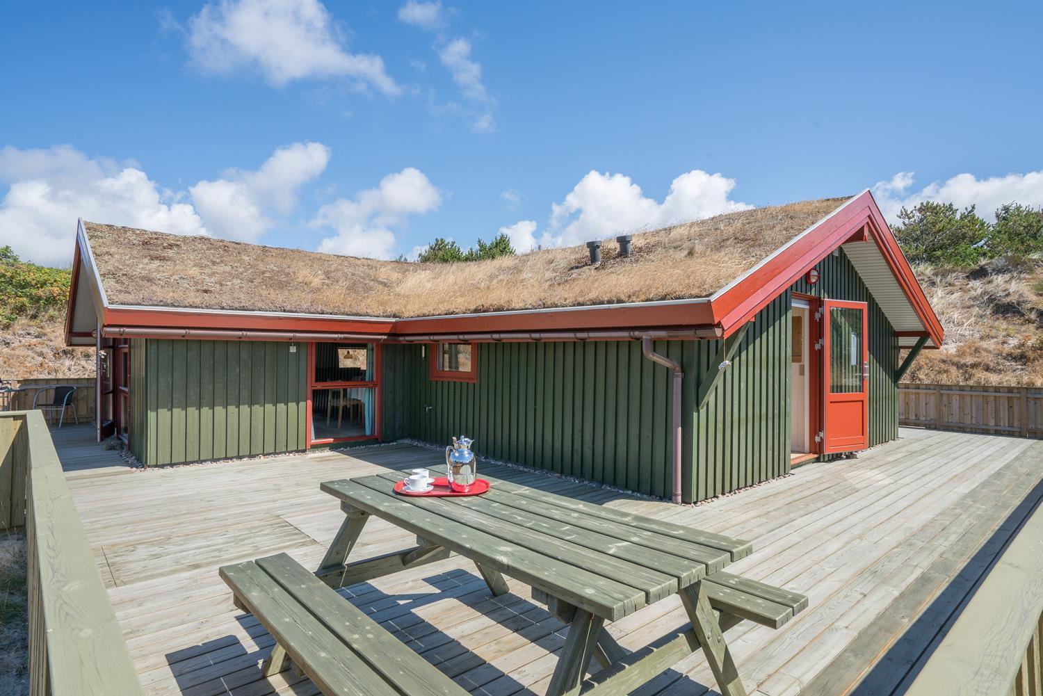 Udendørsområdet ved sommerhuset på Timianvej 13 i Henne Strand er ideelt til afslappende feriedage ved Vesterhavet. På den indhegnet terrasse kan du nyde naturen – uden at skulle bekymre dig om hunden eller de små børn. Den ekstra overdækkede terrasse giver læ for vind og vejr og gør det muligt at sidde hyggeligt udenfor næsten hele året.
