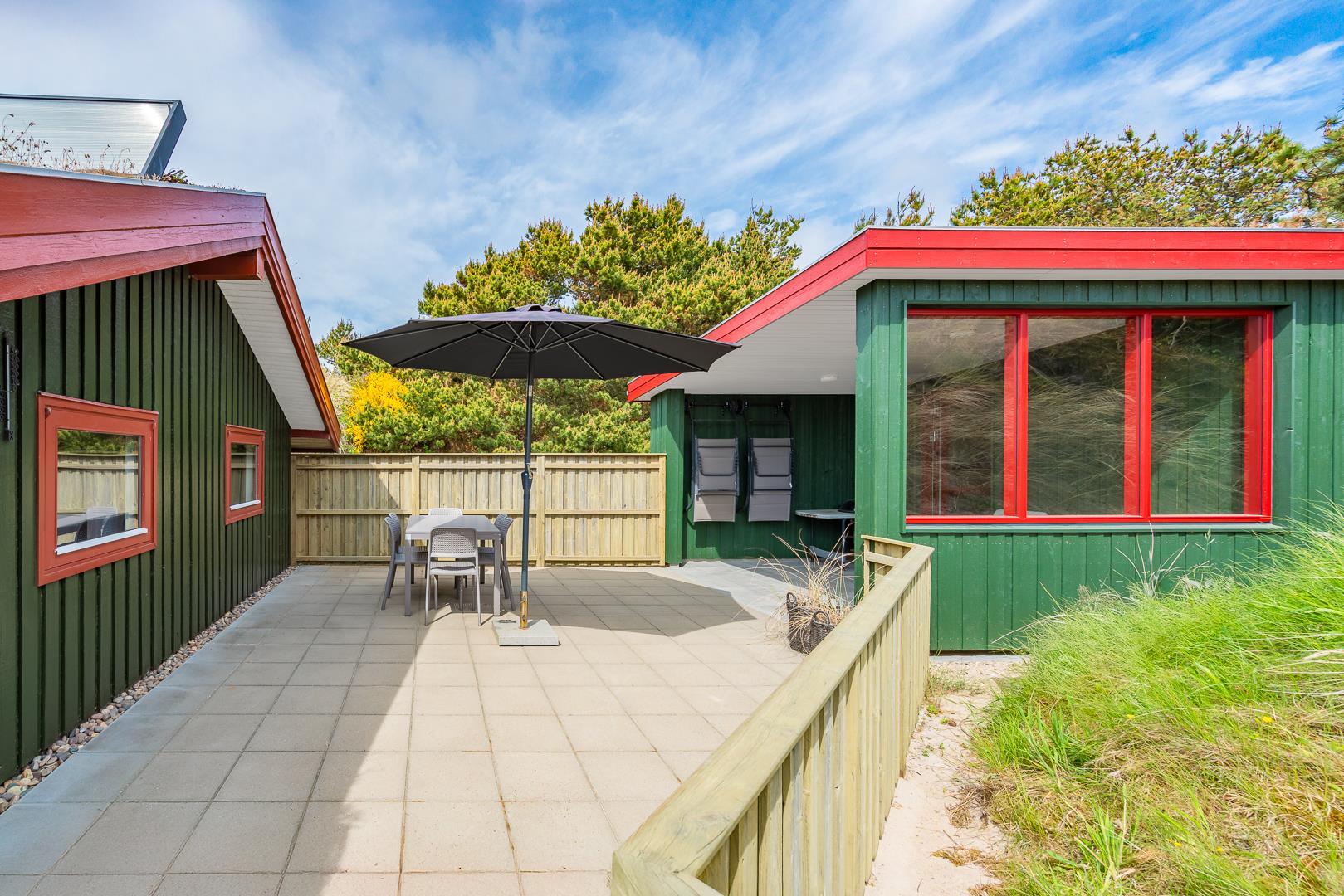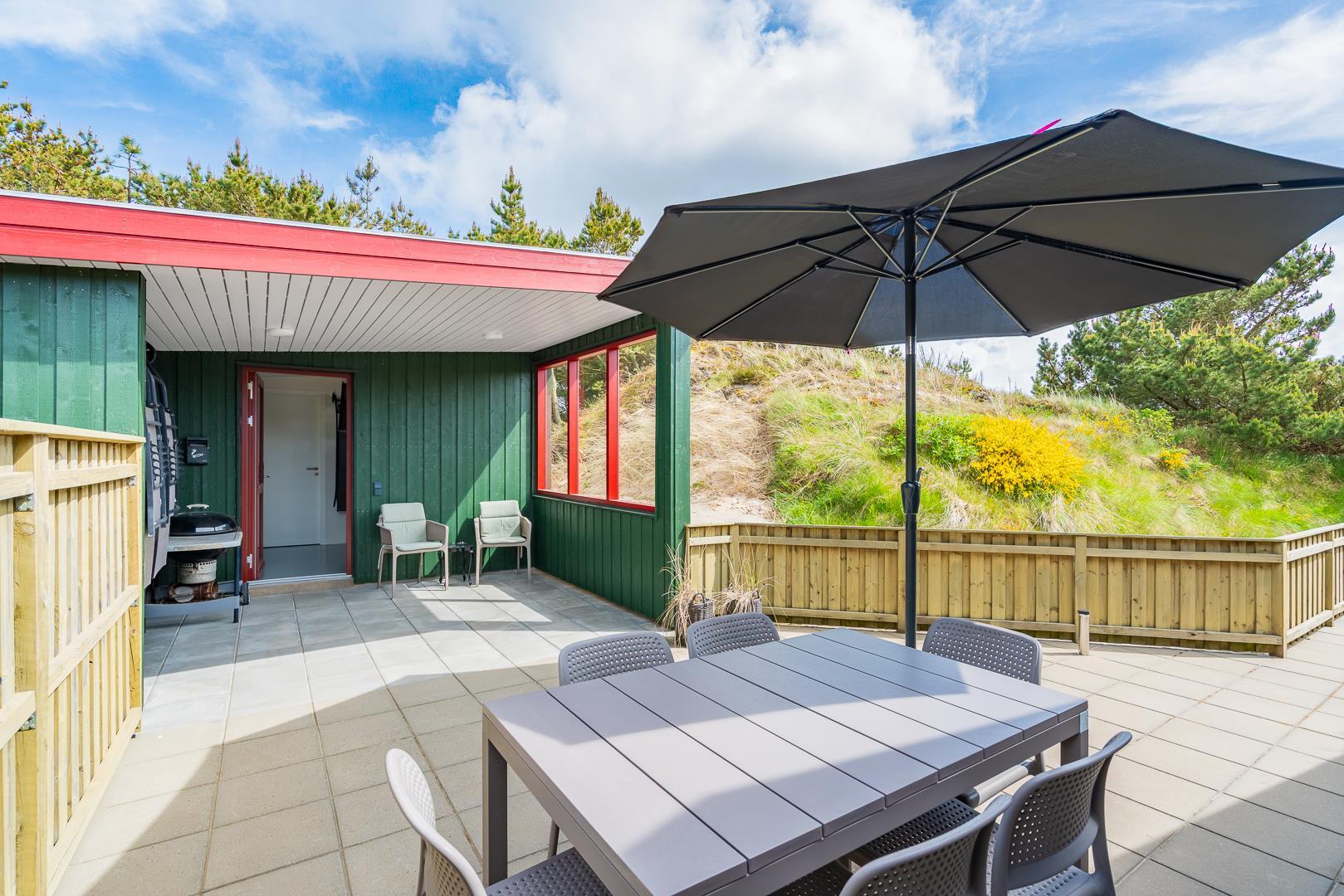 Efter en dag på stranden – der kun ligger 400 meter væk – indbyder terrassen til at afslutte dagen i ro og mag. Den naturprægede grund skaber en behagelig og privat atmosfære.