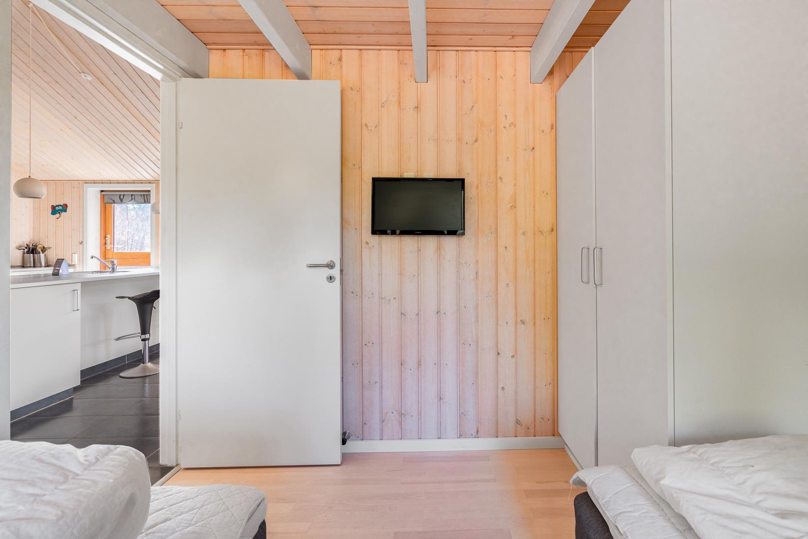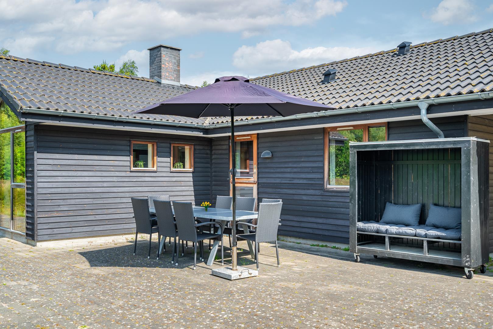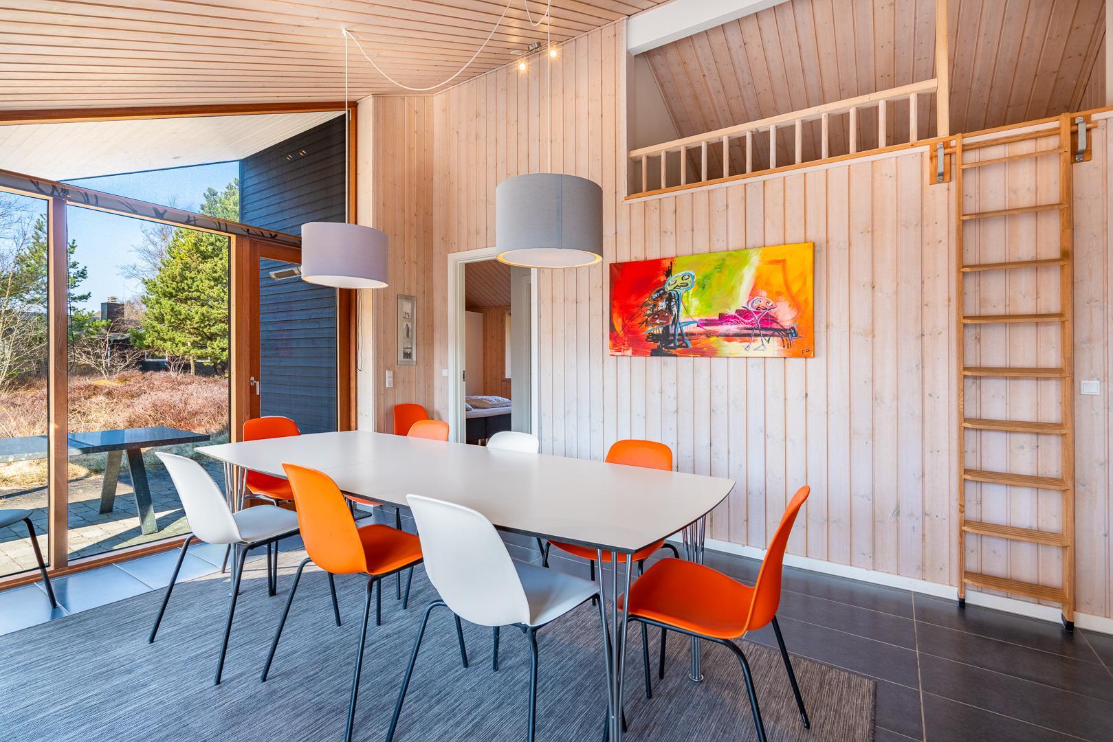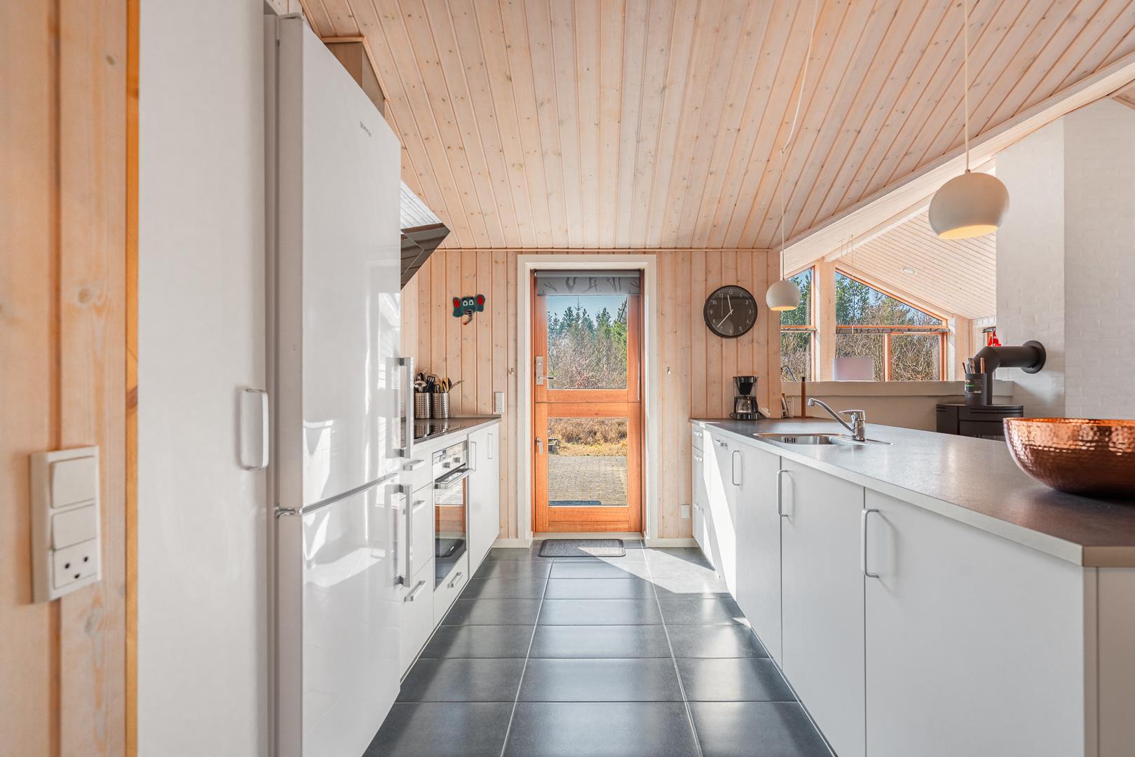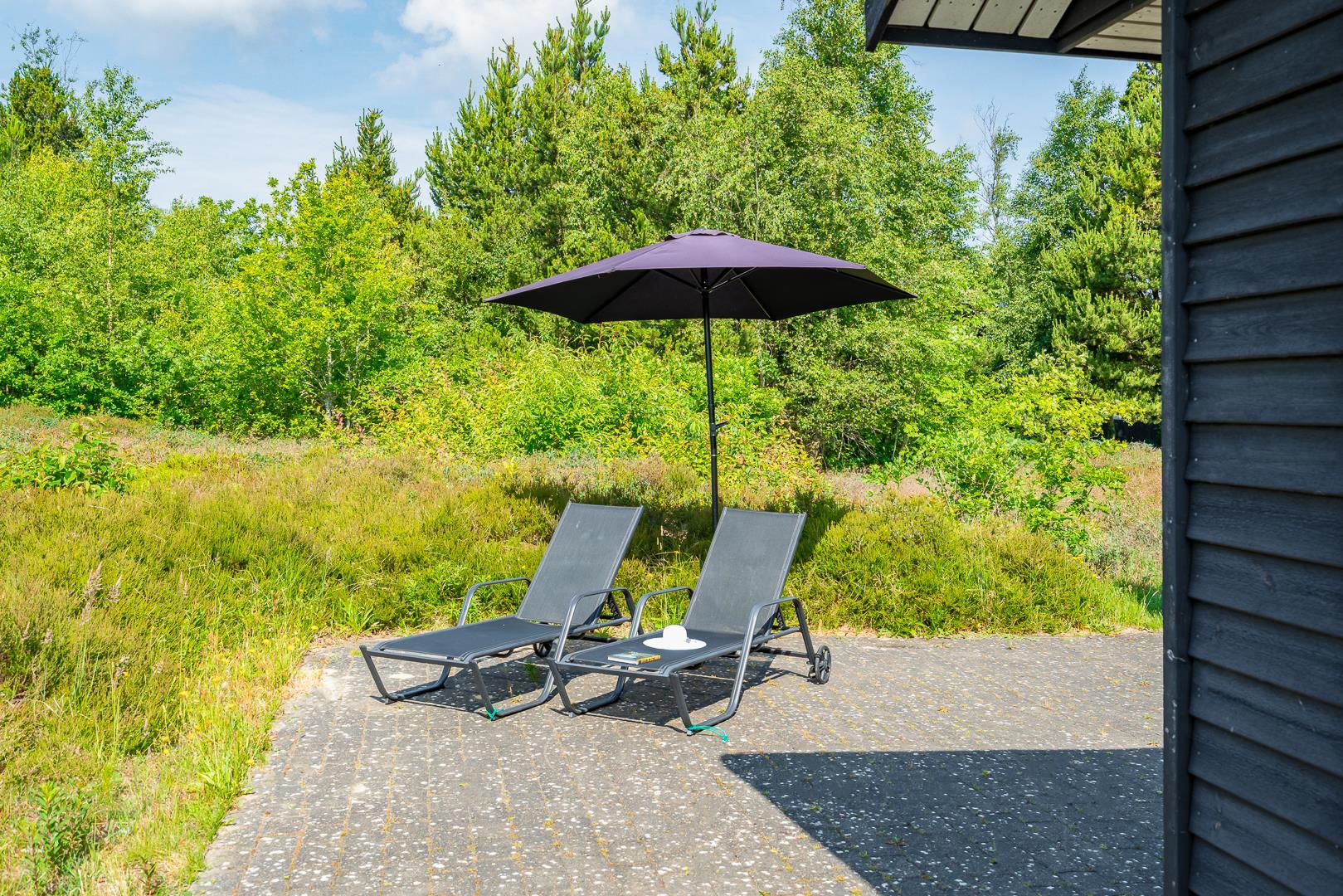 Huset titter frem i en lysning blandt nåletræer og stedsegrøn bevoksning. Indenfor er der skruet op for den hyggelige stemning, uden at der er gået på kompromis med moderne komfort. Lofterne går til kip og store vinduespartier lader lyset strømme ubesværet ind fra syd. Opholdsrummet byder på et tidløst køkken og en hyggelig afdeling med spiseplads og sofahjørne. Der er desuden adgang til en hems, hvor ungerne kan lege sørøvere og prinsesser. Huset er udstyret med TV i alle soverum, to højstole, barneseng og vaskefaciliteter.