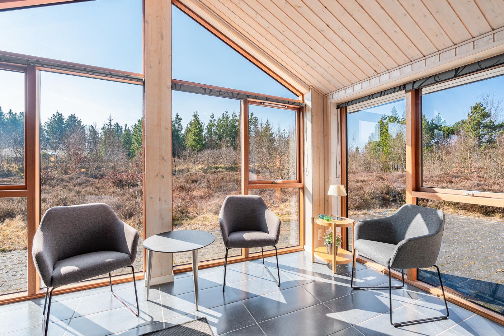 I de koldere ferieuger tilbringes meget af tiden nok inden døre i brændeovnens behagelige skær, mens blæsten rusker i træerne udenfor. Men der er nu heller ikke noget som at gå en lang tur langs stranden for derefter at blive gennem varmet i saunaen eller spabadet.