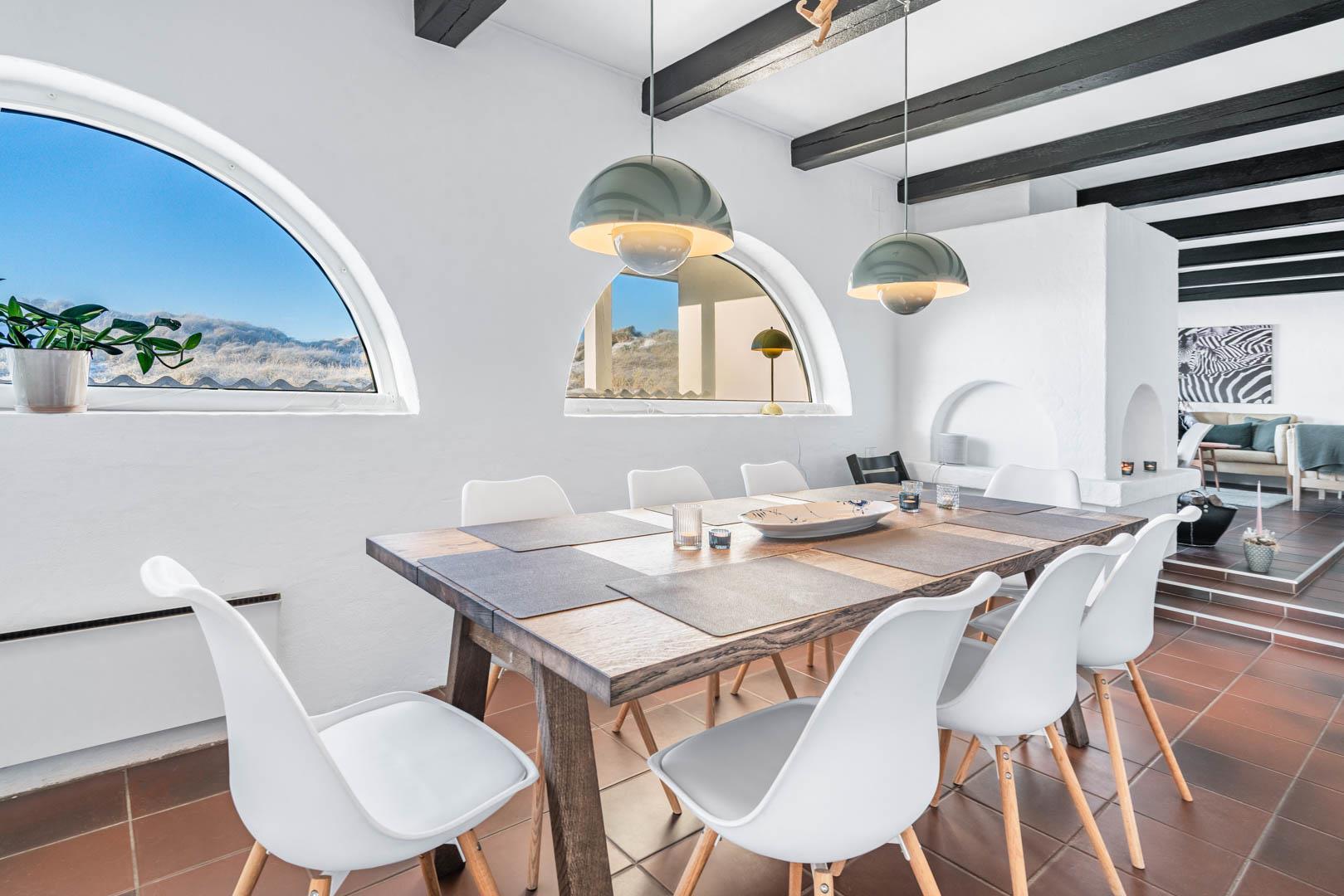 Savner I Andalusiens charme eller Costa Bravas sydende sommerliv? Så book en ferie eller weekend i dette fantastiske hus 683 Strandvejen 439 i Henne Strands idylliske klitlandskab. Huset er opført i en gennemført spansk stil med hvidkalkede vægge, rustikke bjælker og stemningsfyldt gårdterrasse, og da det ligger i første række til stranden og har swimmingpool, er det er næsten som at komme til sydpå - uanset årstiden.