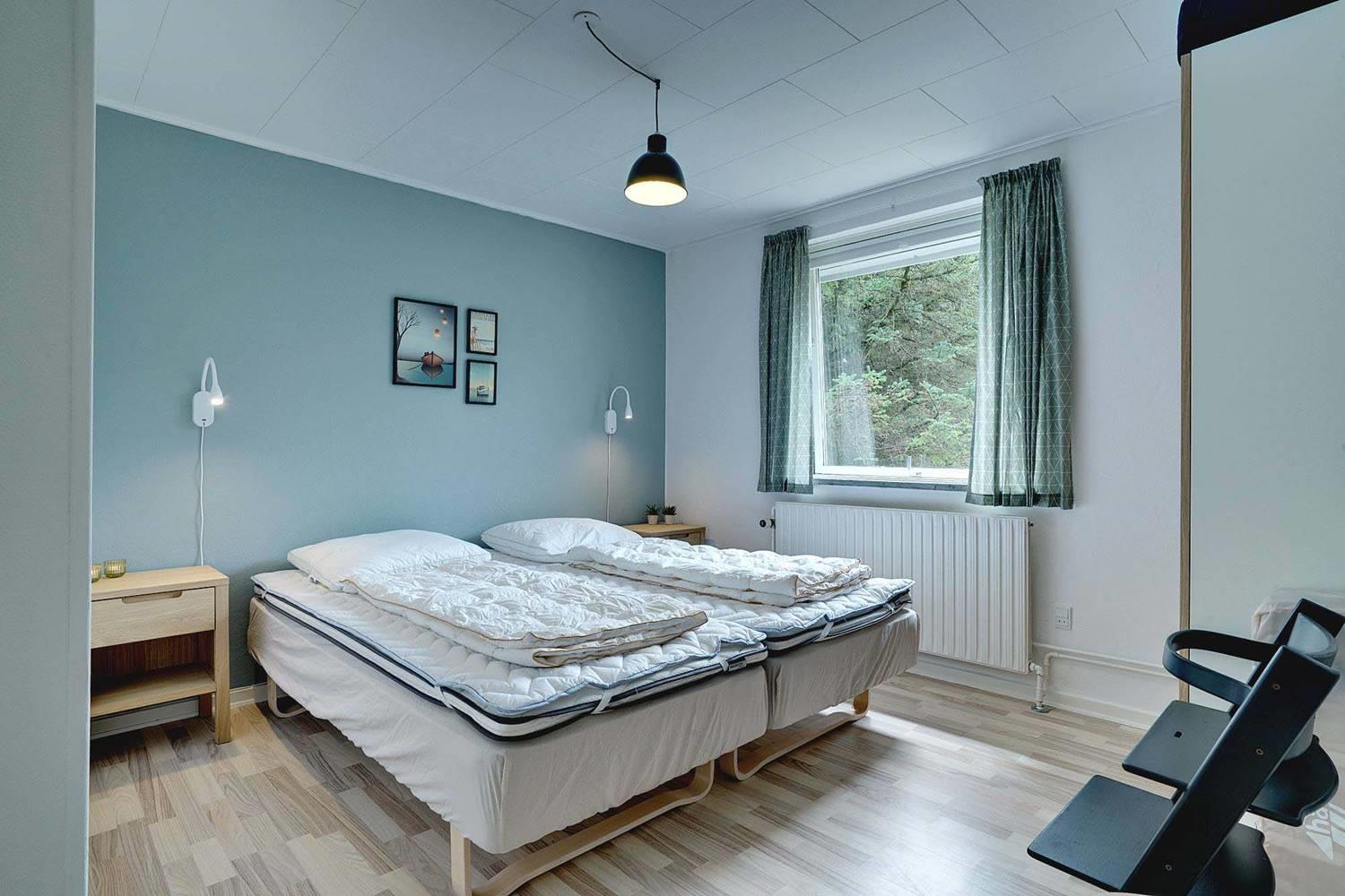 Sengestørrelser: 1 dobbeltseng med 2 madrasser 90 x 200 cm + 1 dobbeltseng 140 x 200 cm + 2 enkeltsenge 80 x 200 cm