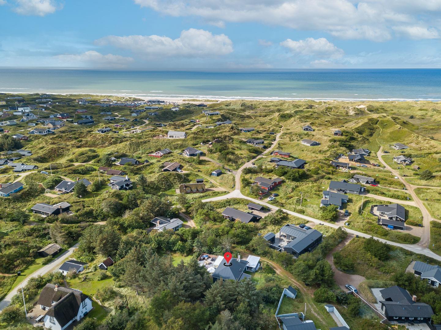 Beliggenheden er ideel i Henne Strand, kun en kort tur fra det betagende Vesterhav, som fascinerer året rundt. Den nærliggende ferieby byder på spændende shoppingmuligheder, hyggelige caféer og charmerende atmosfære, hvor du kan forkæle dig selv med lokale delikatesser og opleve stemningen i denne vestjyske perle.