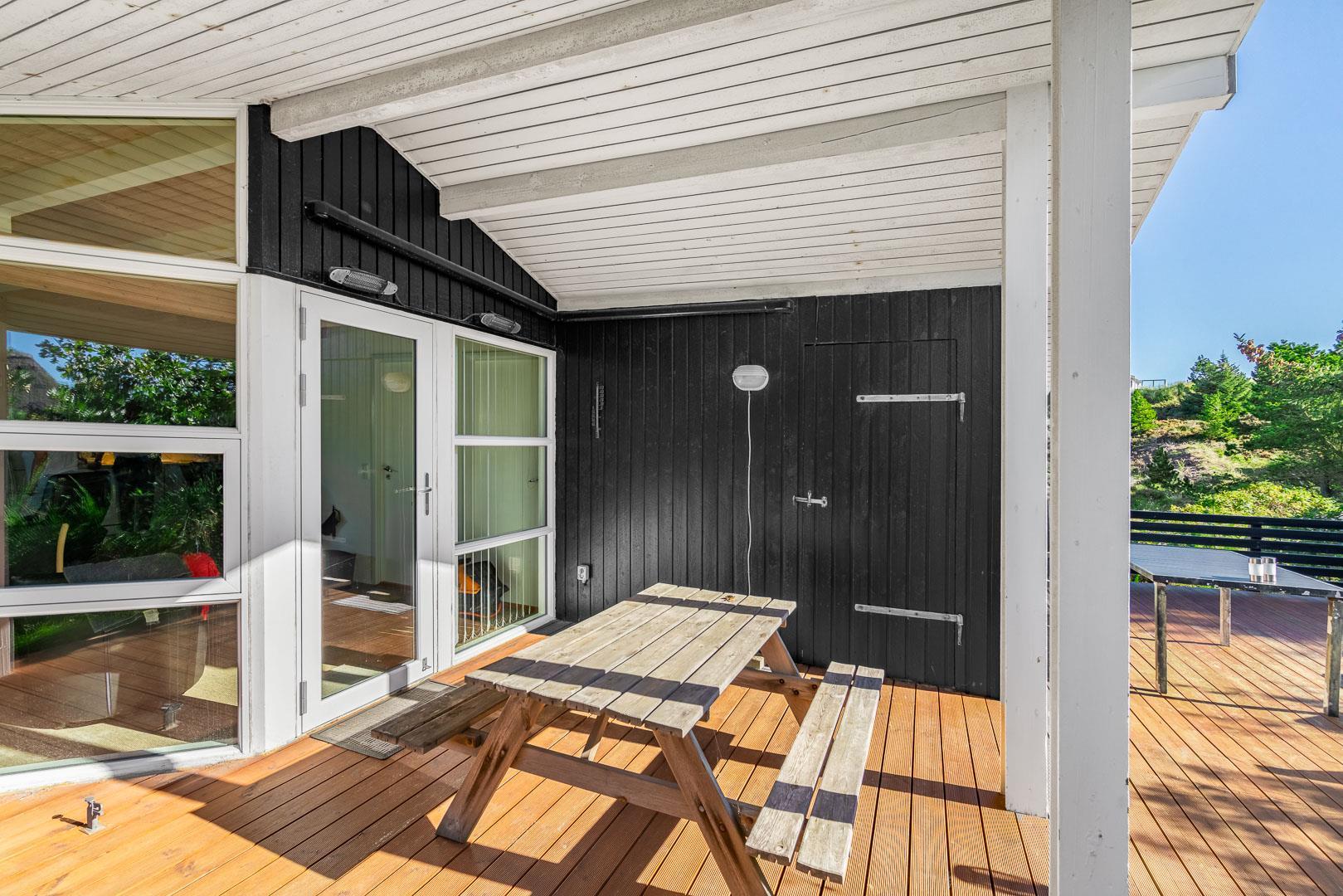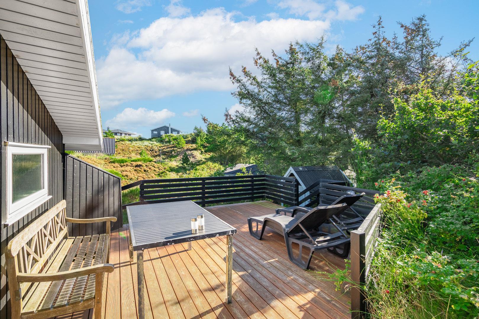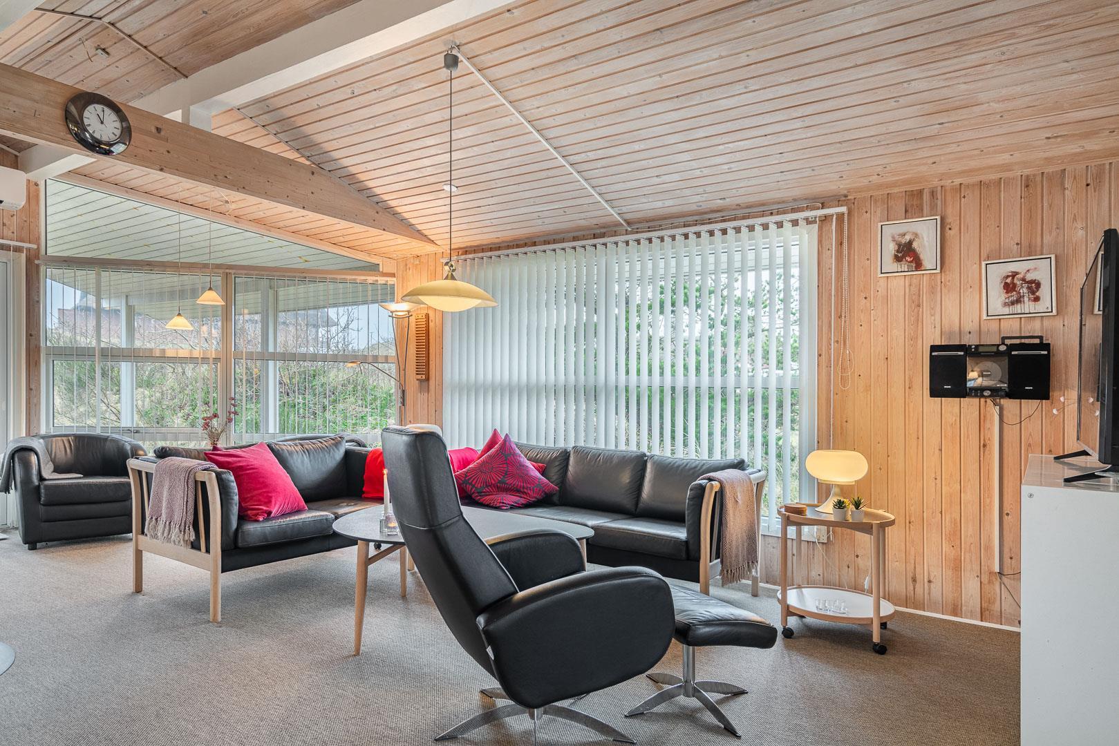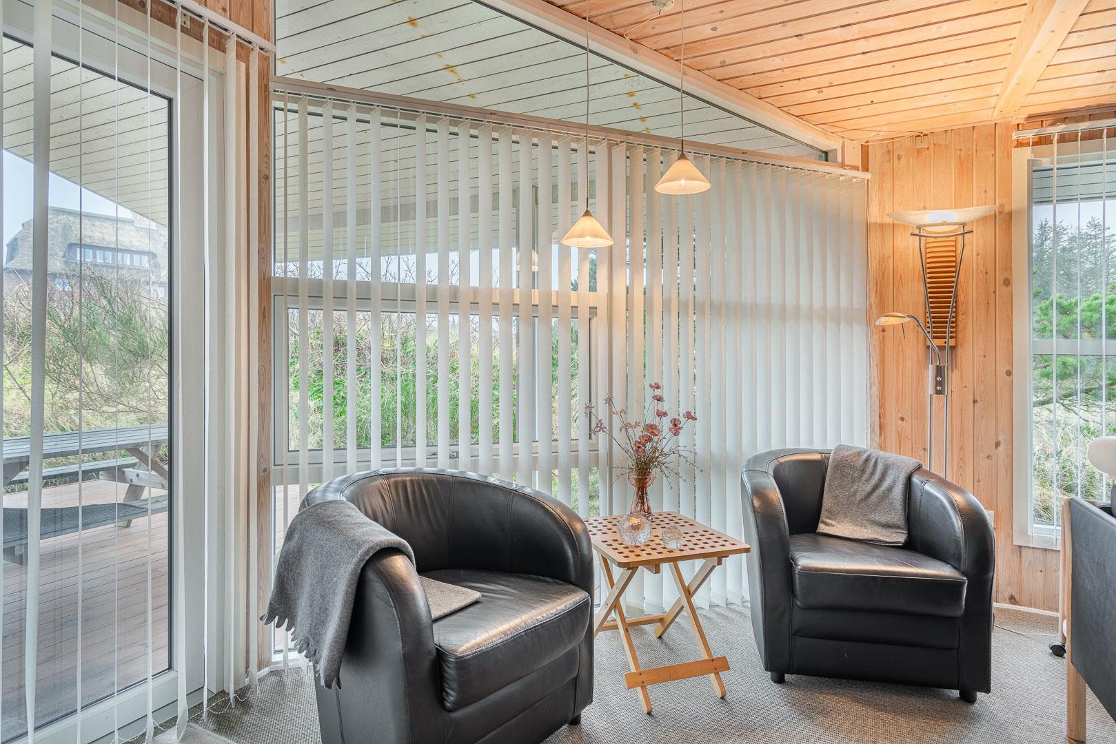 Her finder du en rigtig fin lille perle tæt på Vesterhavet, der indbyder til hygge hele året rundt. I sommerhuset finder du en dejlig stor stue, hvor du i de kolde vintermåneder kan nyde varmen fra brændeovnen. Derudover kan det nævnes, at der også er en varmepumpe i stuen der bidrager til ekstra komfort. Fra stuen er der udgang til den dejligste overdækket terrasse med terrassevarmer, perfekt til at sidde og snakke over et koldt glas rosé imens I nyder udsigten over området. På terrassen finder du også gode muligheder for at finde læ, spise en frokost i solen eller bare ligge og slappe af med en god bog.