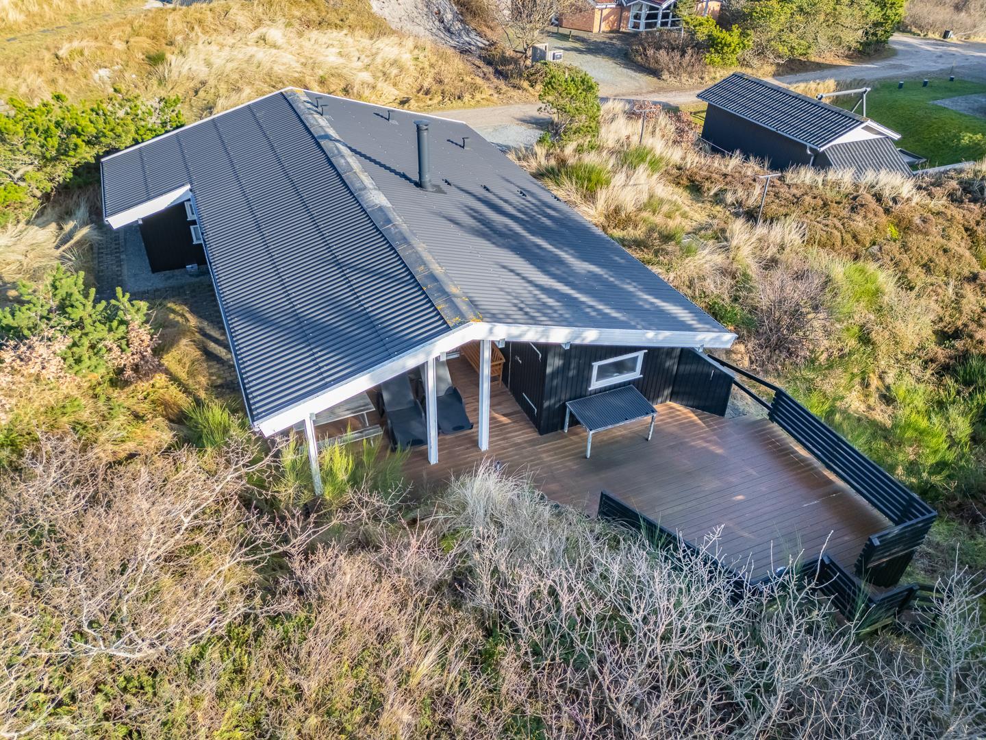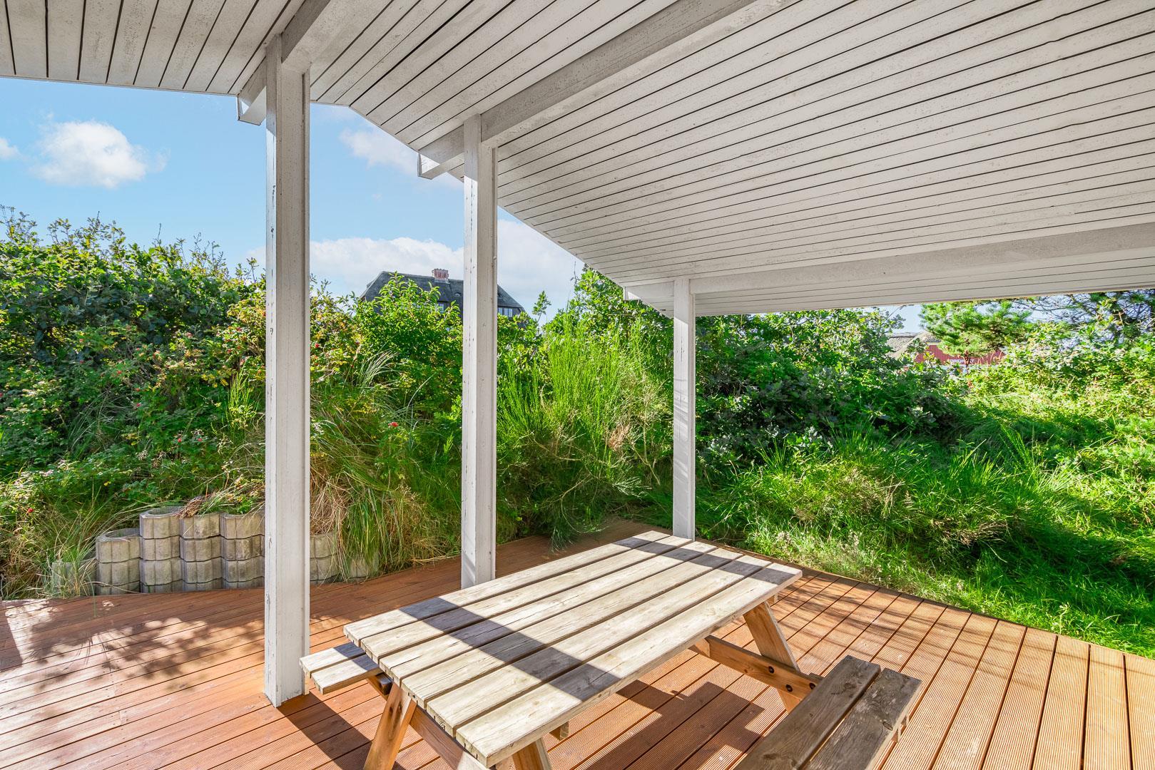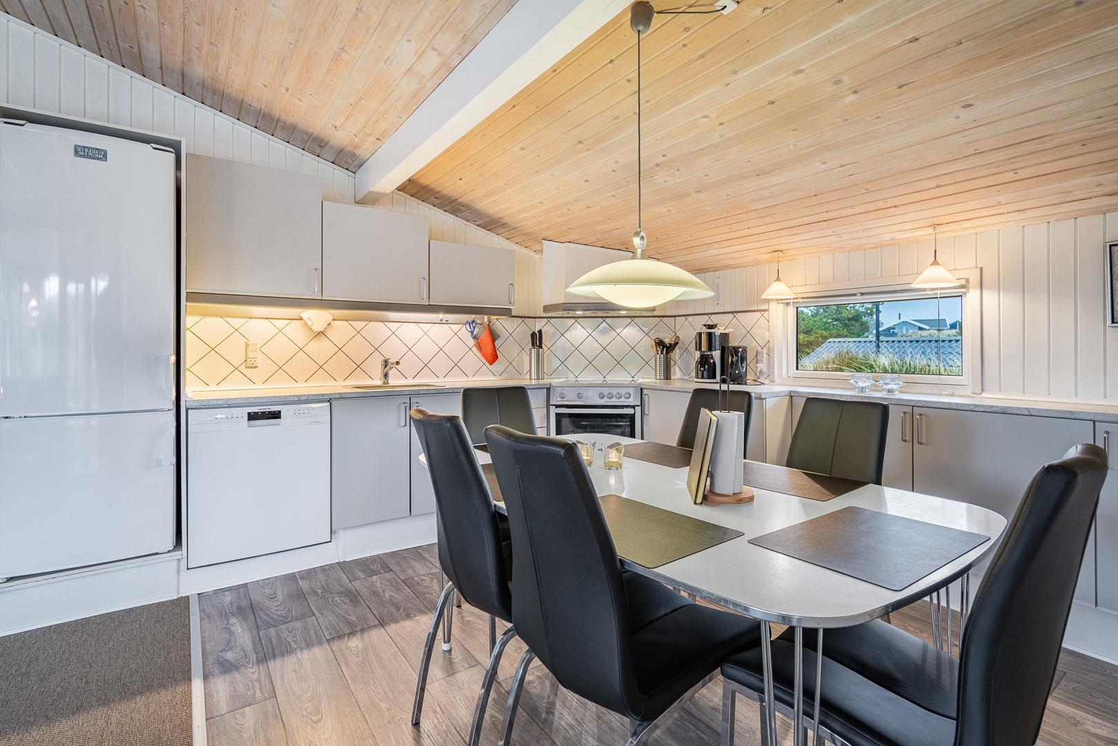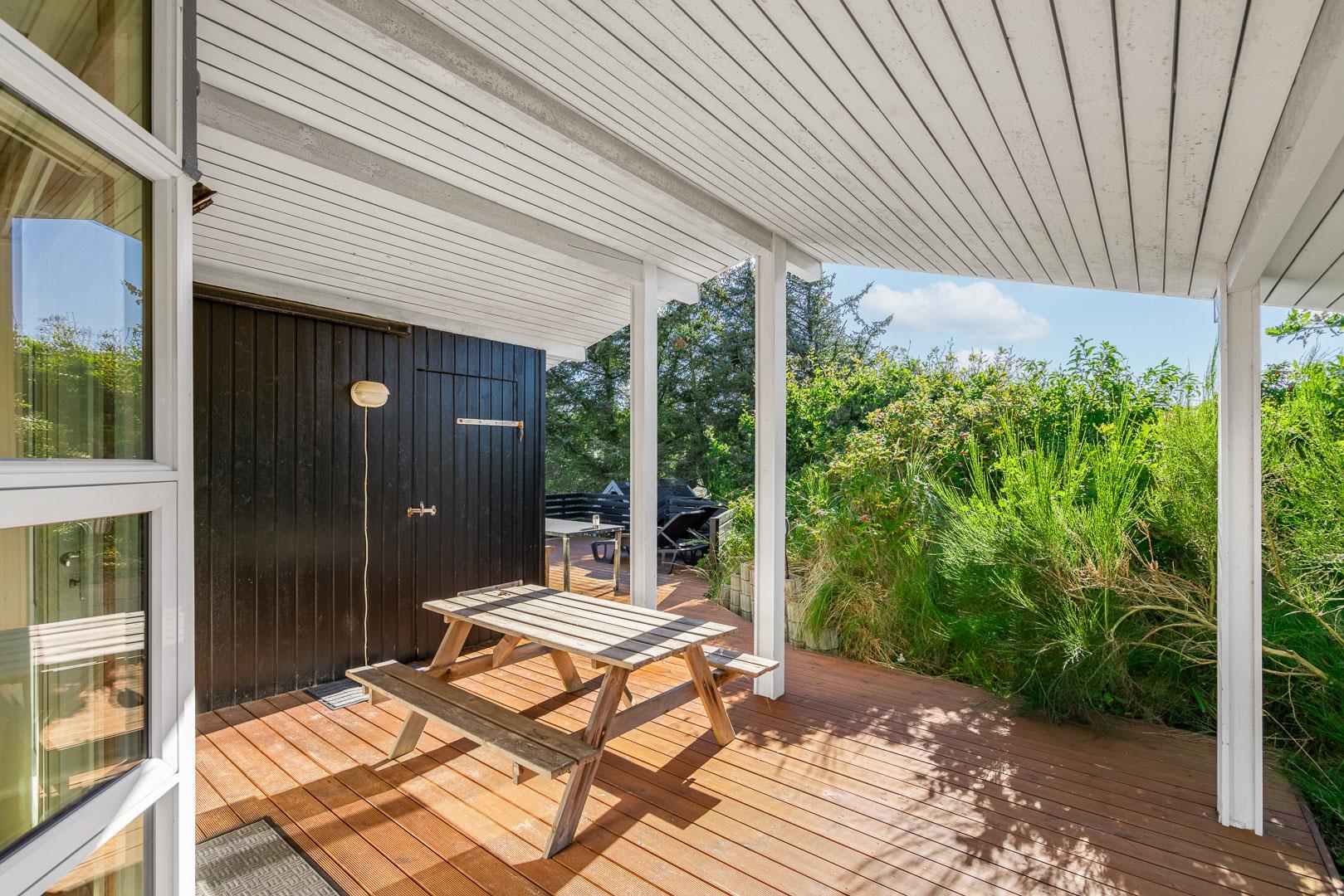 Her finder du en rigtig fin lille perle tæt på Vesterhavet, der indbyder til hygge hele året rundt. I sommerhuset finder du en dejlig stor stue, hvor du i de kolde vintermåneder kan nyde varmen fra brændeovnen. Derudover kan det nævnes, at der også er en varmepumpe i stuen der bidrager til ekstra komfort. Fra stuen er der udgang til den dejligste overdækket terrasse med terrassevarmer, perfekt til at sidde og snakke over et koldt glas rosé imens I nyder udsigten over området. På terrassen finder du også gode muligheder for at finde læ, spise en frokost i solen eller bare ligge og slappe af med en god bog.