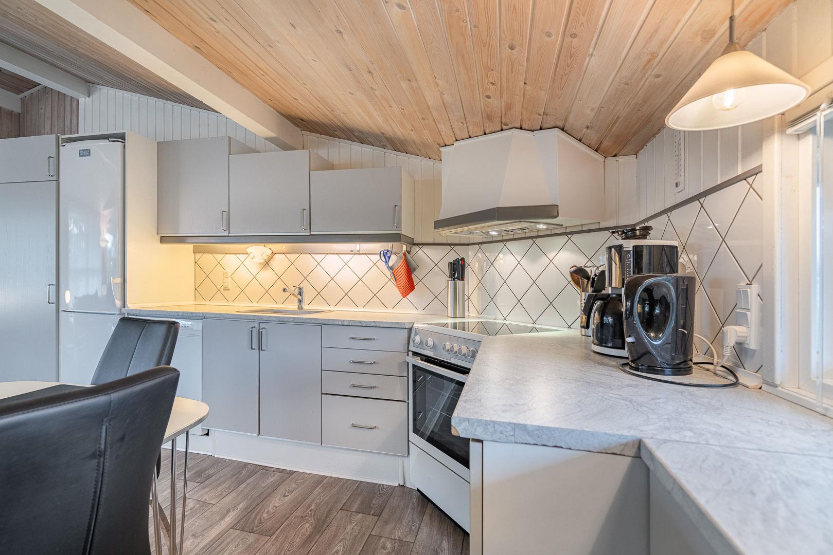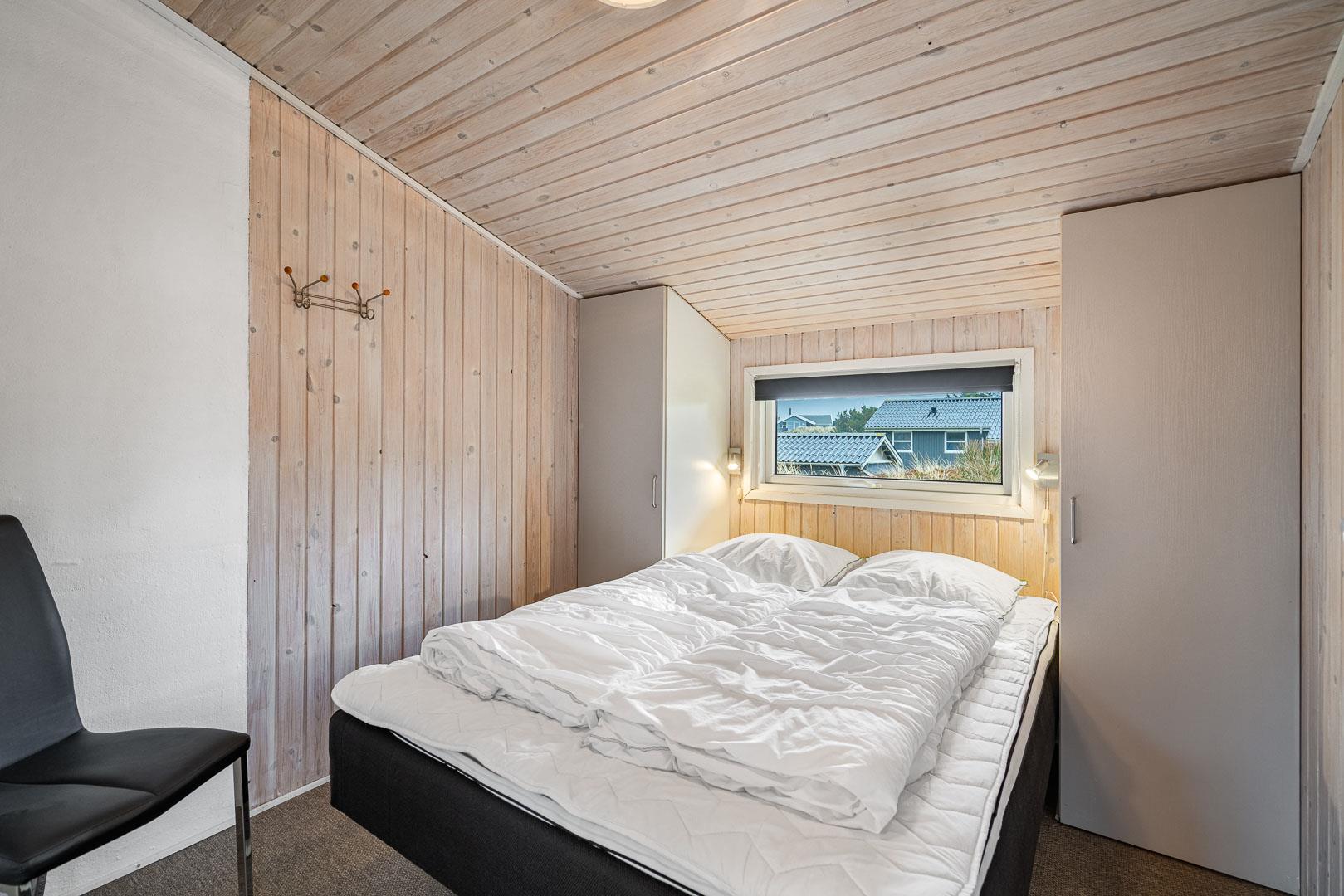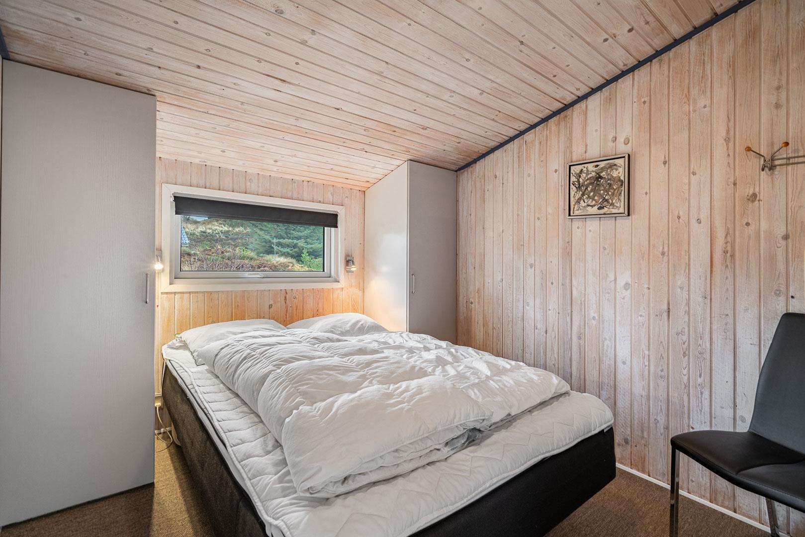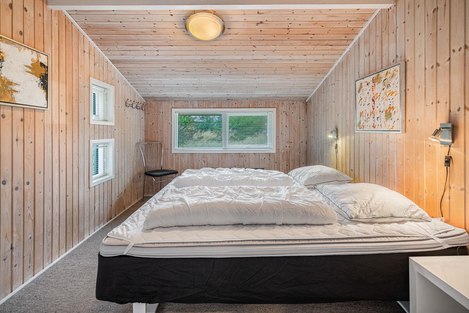 Køkkenet integreres elegant med stuen og skaber en harmonisk atmosfære. I feriehuset er der desuden et super lækkert badeværelse med sauna, hvor du kan forkæle dig selv med ekstra afslapning på din ferie. Sommerhuset tilbyder tre skønne værelser med dobbeltsenge beliggende centralt omkring stuen.