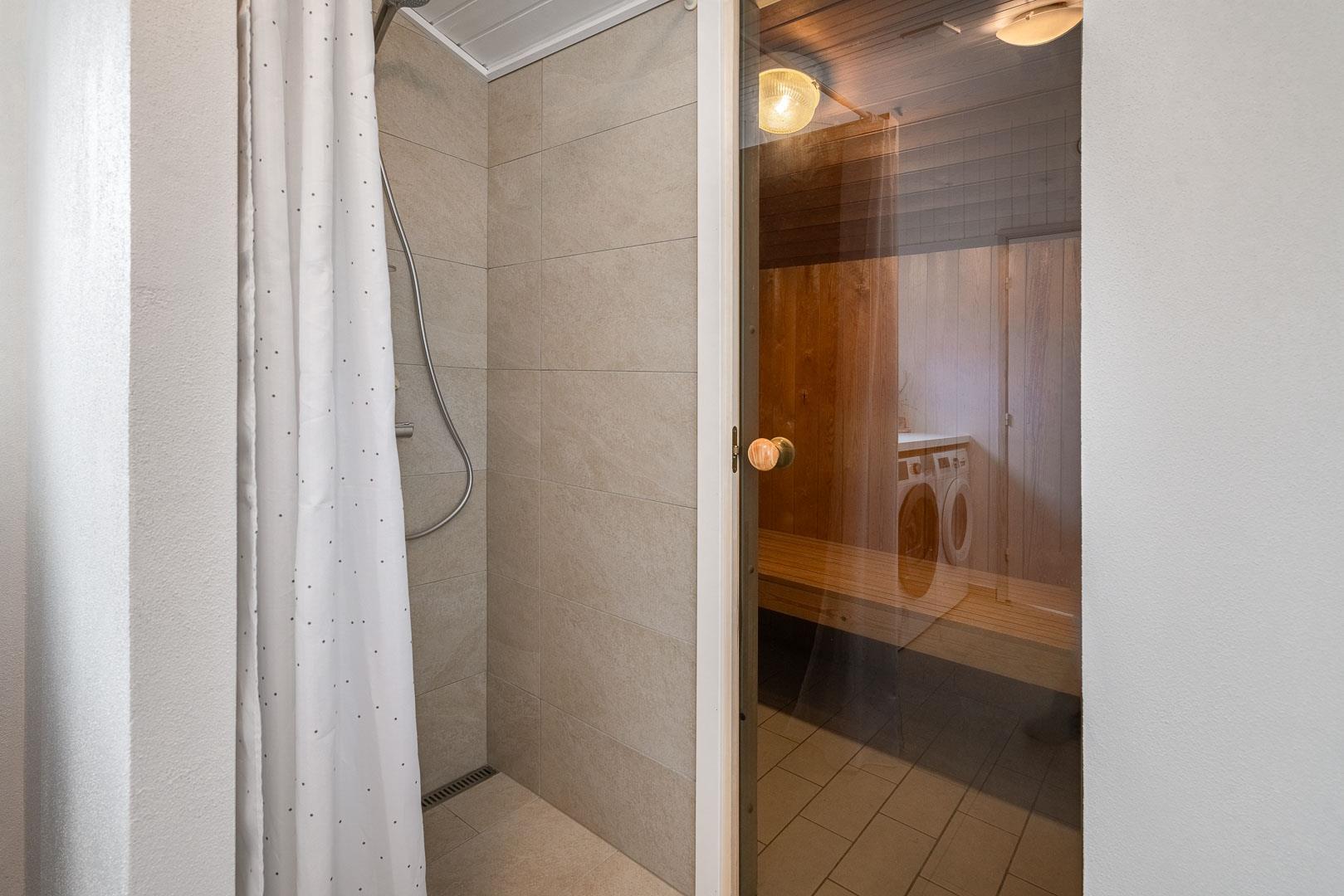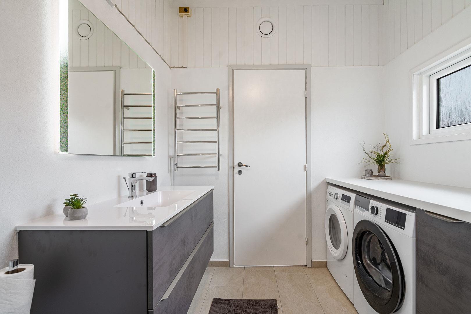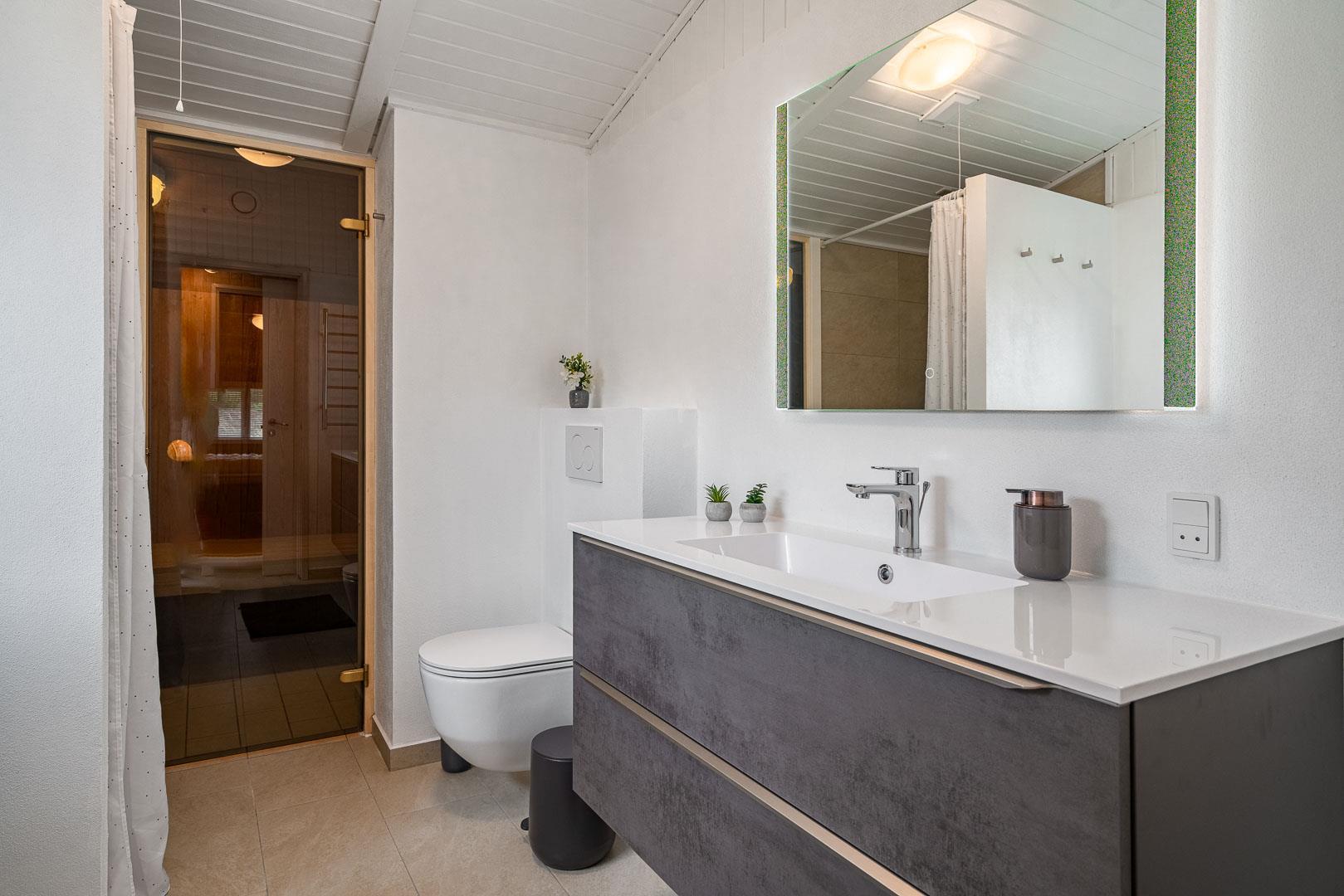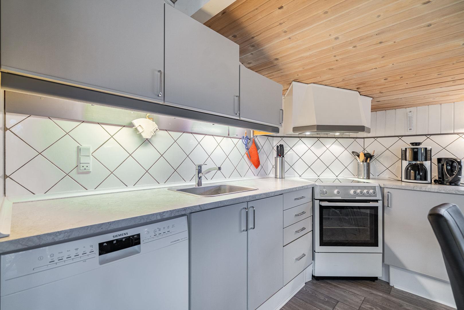 Køkkenet integreres elegant med stuen og skaber en harmonisk atmosfære. I feriehuset er der desuden et super lækkert badeværelse med sauna, hvor du kan forkæle dig selv med ekstra afslapning på din ferie. Sommerhuset tilbyder tre skønne værelser med dobbeltsenge beliggende centralt omkring stuen.