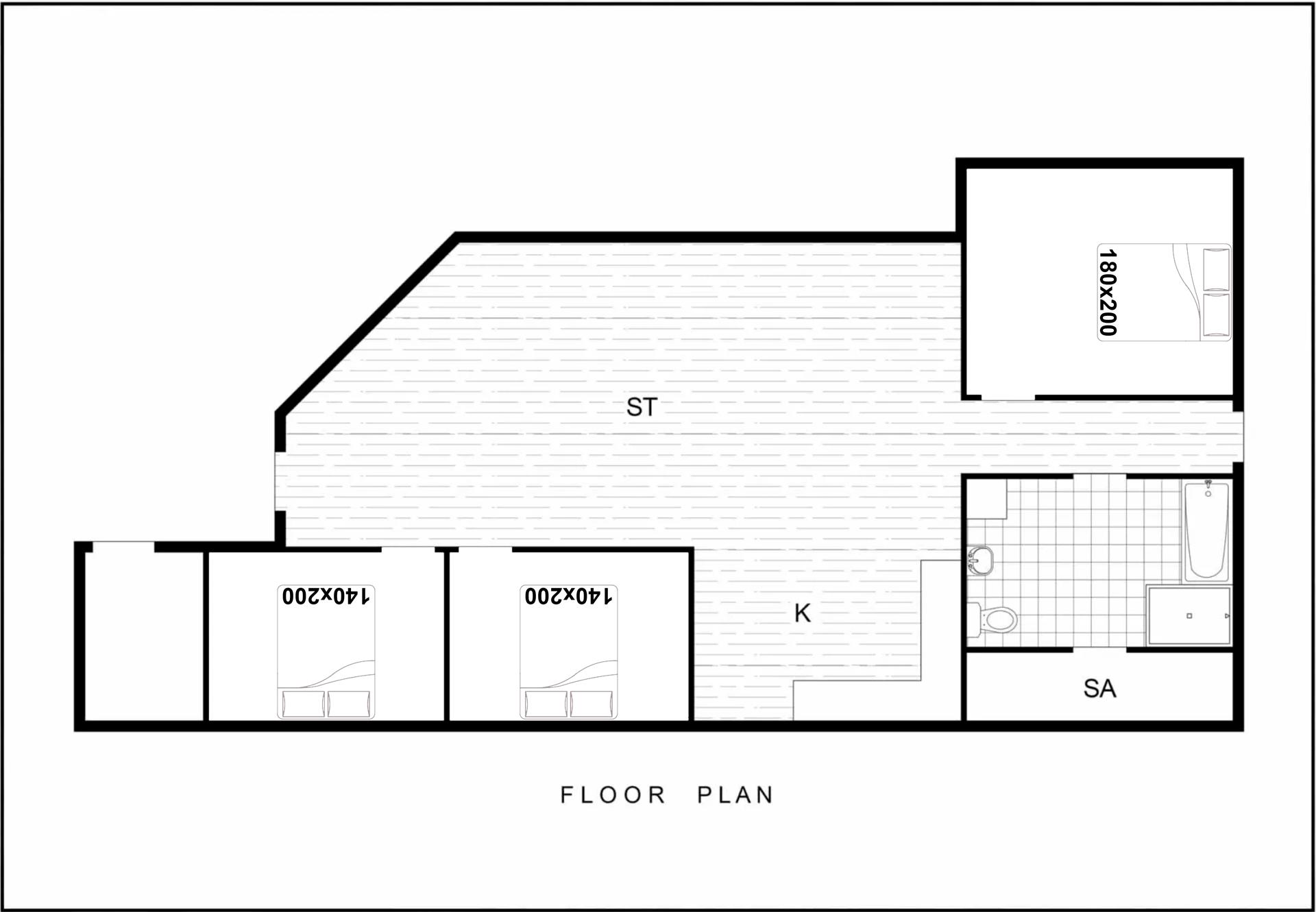 Sengestørrelse: 1 dobbeltseng 180 x 200 cm + 2 dobbeltsenge 140 x 200 cm.