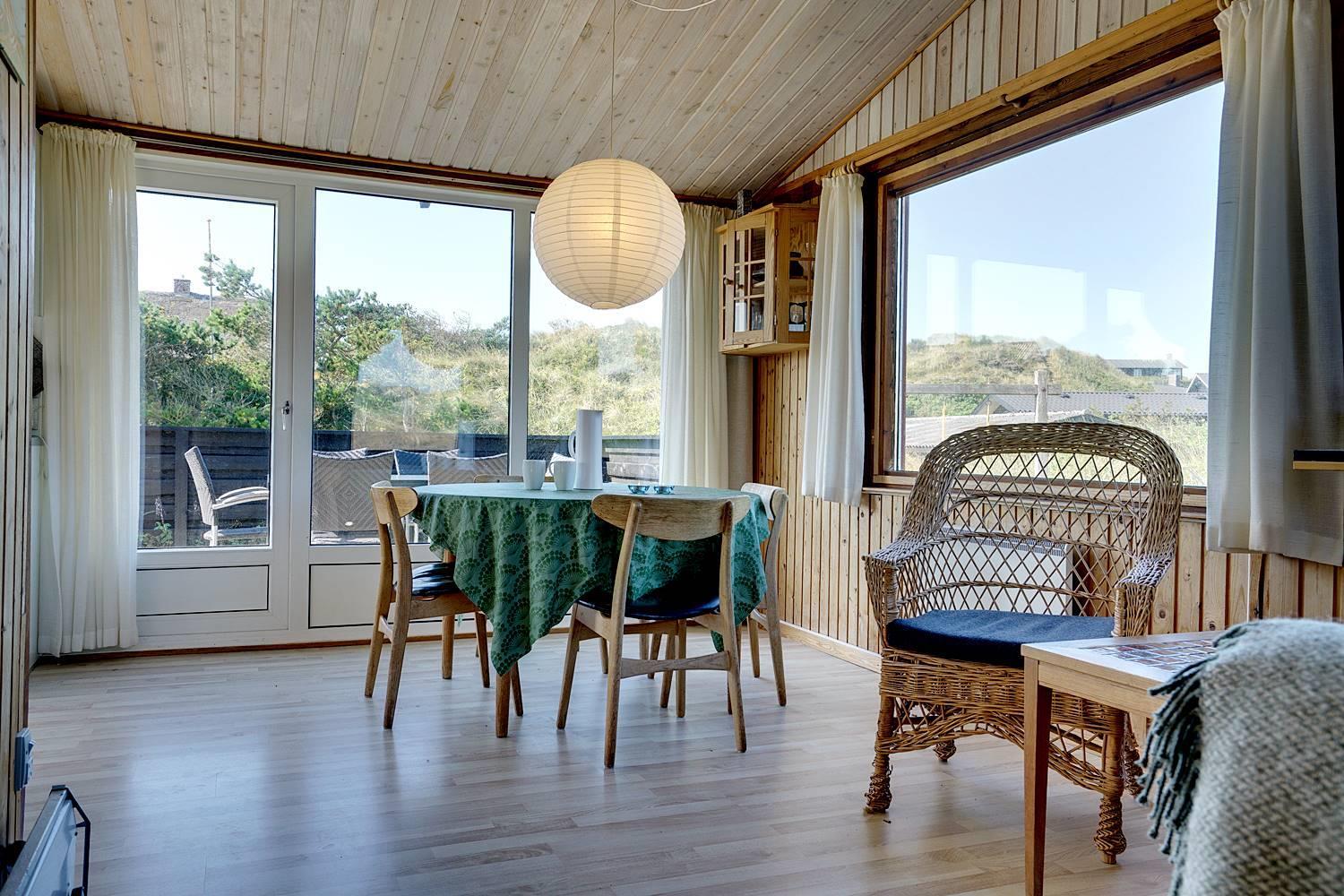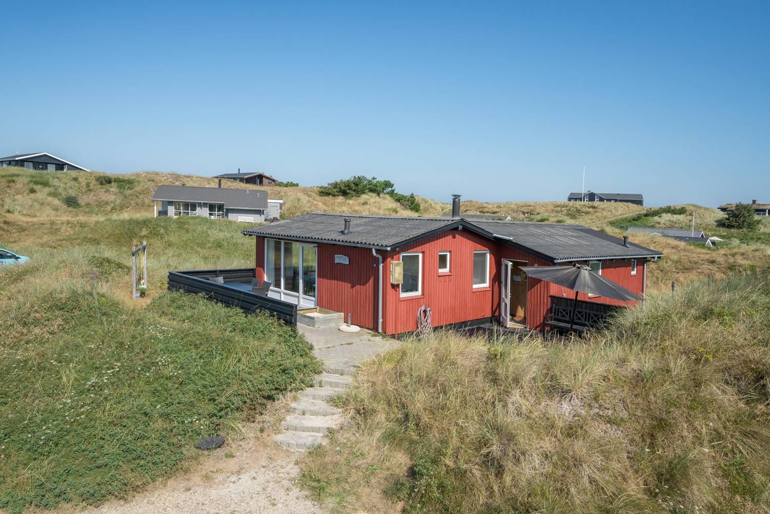 På en dejlig, kuperet naturgrund tæt ved vandet ligger dette hyggelige feriehus med 2 badeværelser med bruser. Lige meget om man sidder i stuen eller på terrassen, kan man nyde udsigten til klitlandskabet. Der er kombineret køkken/spiseafdeling. Der er 3 skønne terrasser, hvor der altid kan findes en lækrog. Der er lavet nyt køkken i 2011.