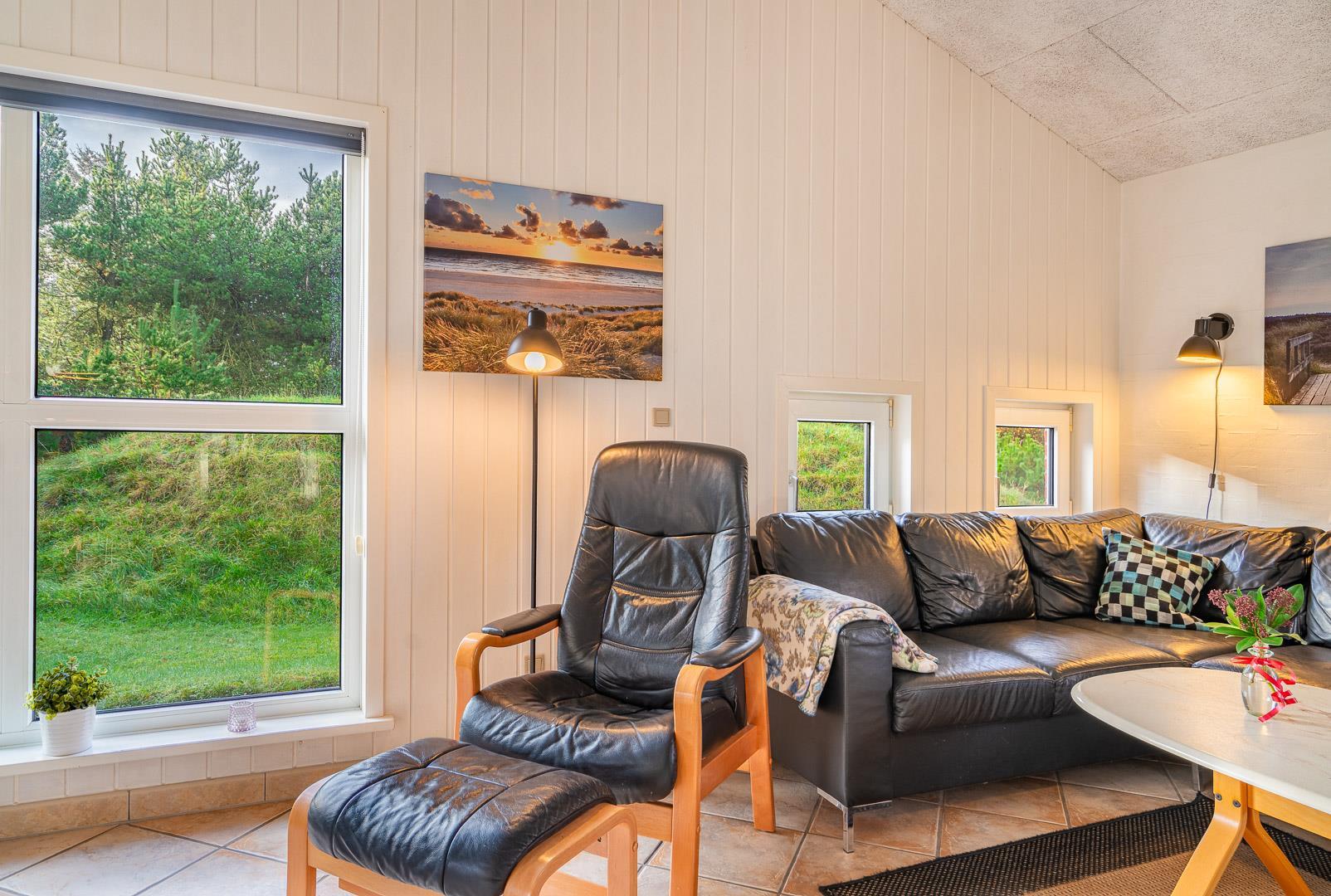 Sommerhuset ligger under ti minutters gang fra byens skønne butiksliv, og herudover er det anbefalelsesværdigt at smøre en madpakke og tage på picnic ved stranden eller i den storslåede natur i Blåbjerg Plantage. Blåbjerg Plantage kan hurtigt nås via vandre- og cykelstier hen over heden.
