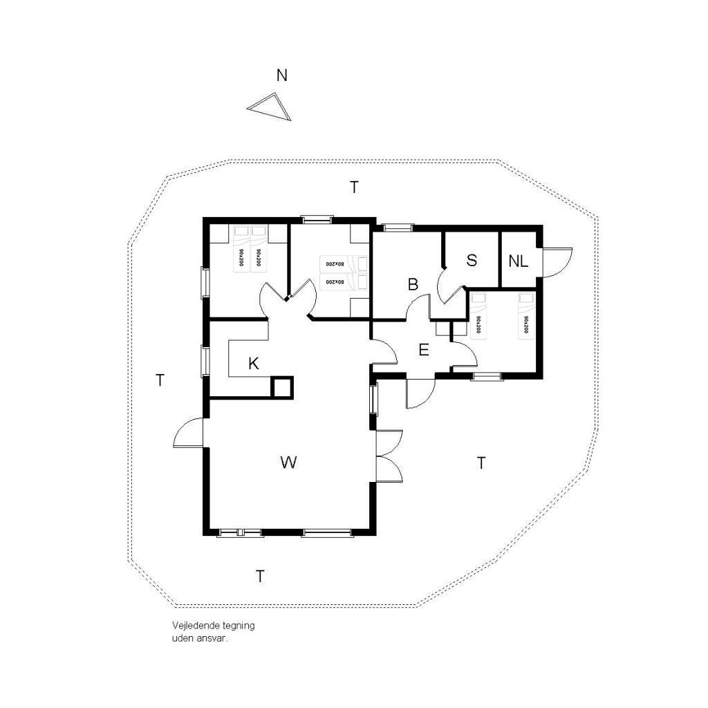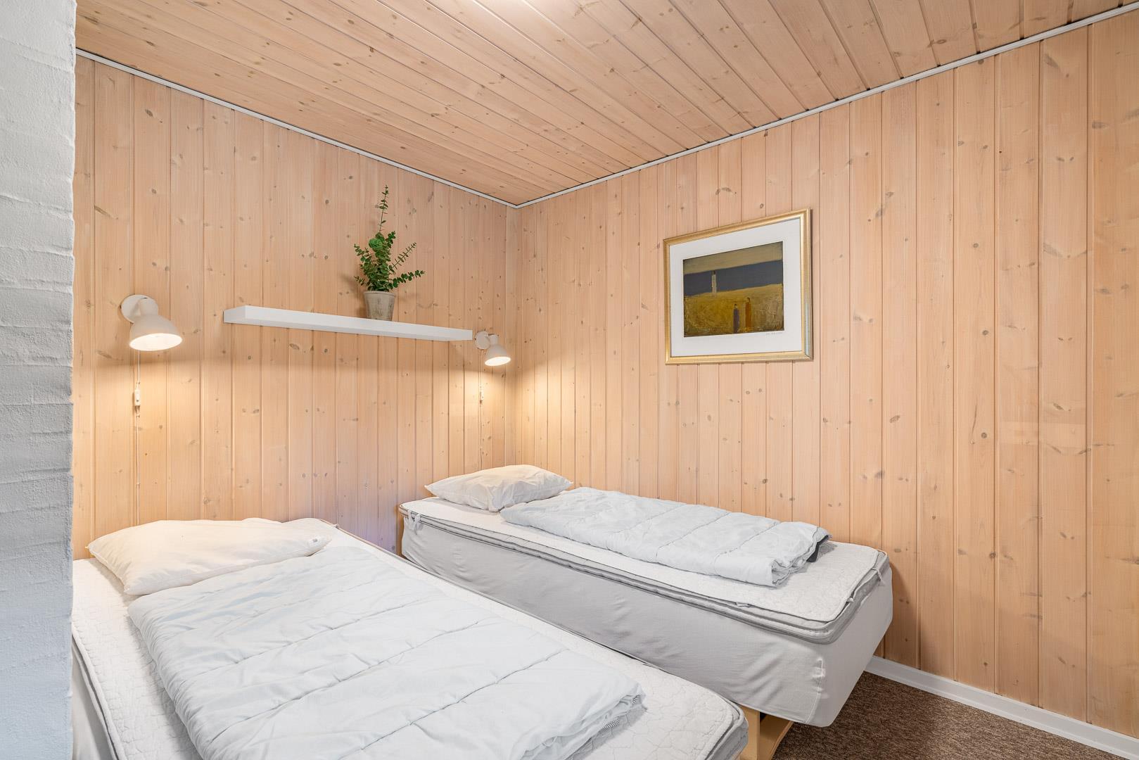 Sengestørrelser: 1 dobbeltseng med 2 madrasser 90 x 200 cm + 1 dobbeltseng med 2 madrasser 80 x 200 cm + 2 enkeltsenge 90 x 200 cm.