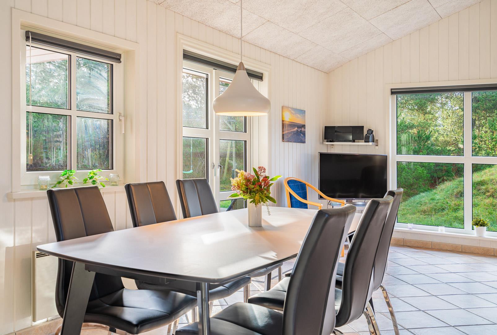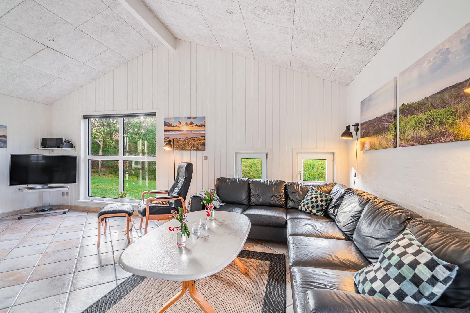 Ferie i dette sommerhus i Henne Strand er lig med skøn sommerhusstemning og socialt samvær i et velholdt hus med brændeovn, spa og sauna. Huset ligger helt fredeligt på en ugeneret naturgrund med et stort, fredet hedelandskab som nabo.