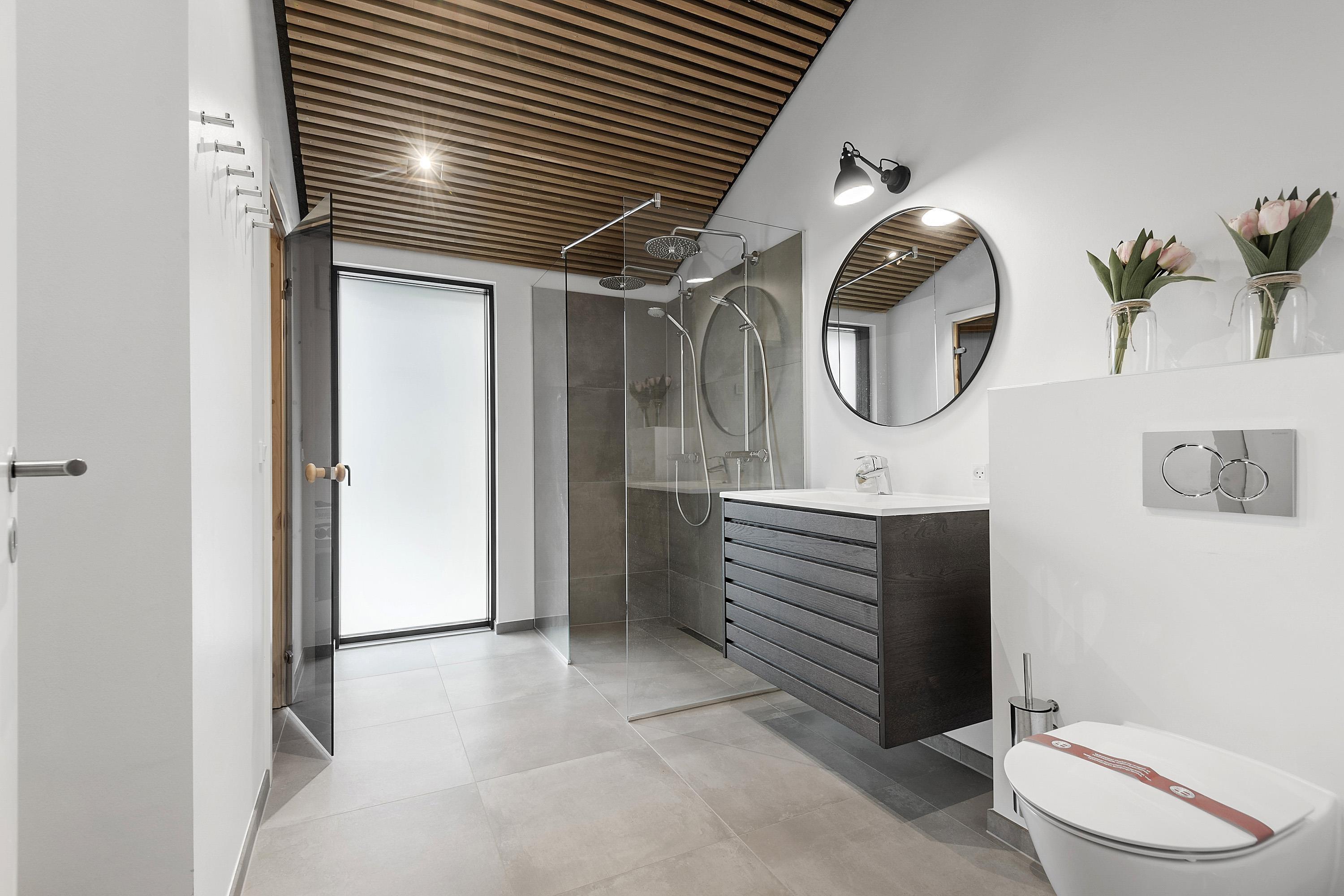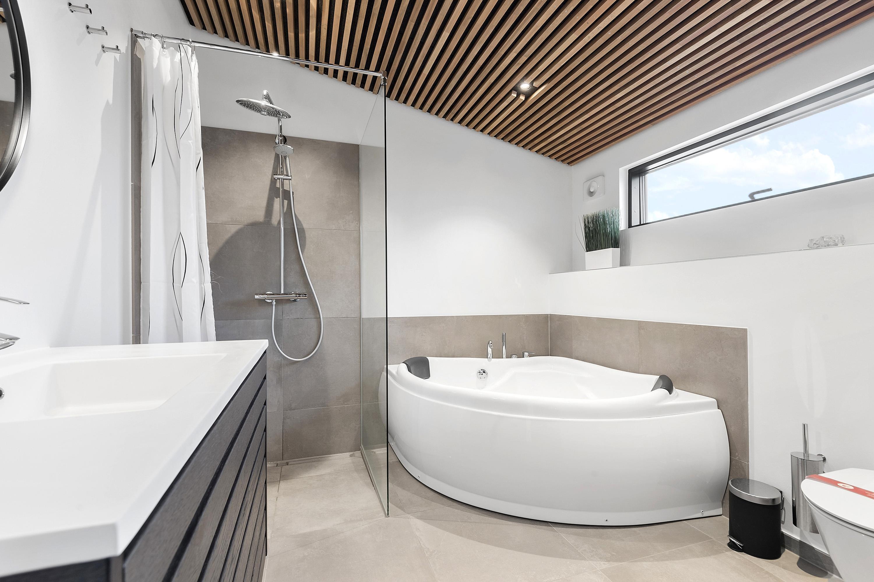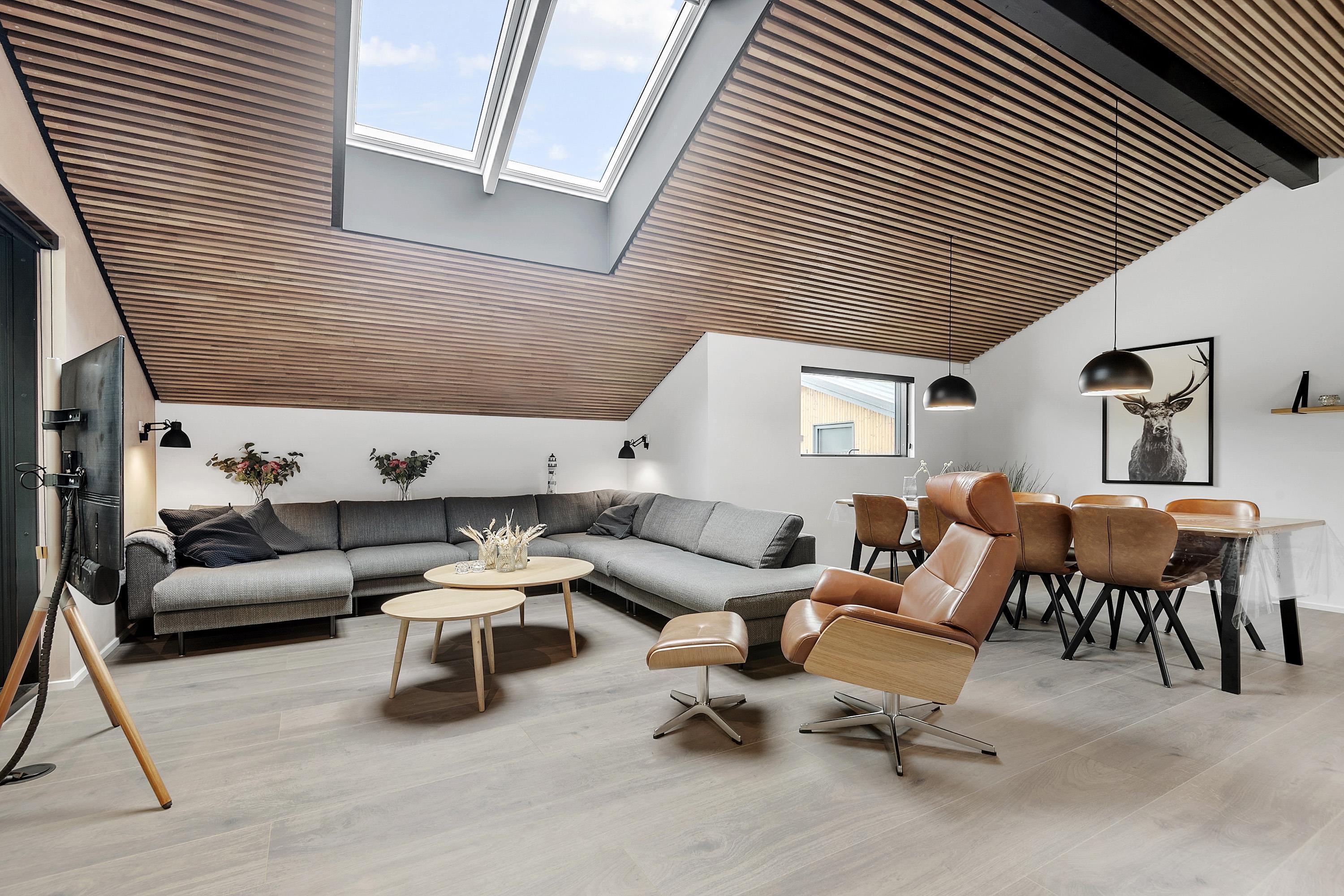 Huset har 4 gode soveværelser og 2 moderne badeværelser – begge med gulvvarme – så alle kan starte dagen komfortabelt.
