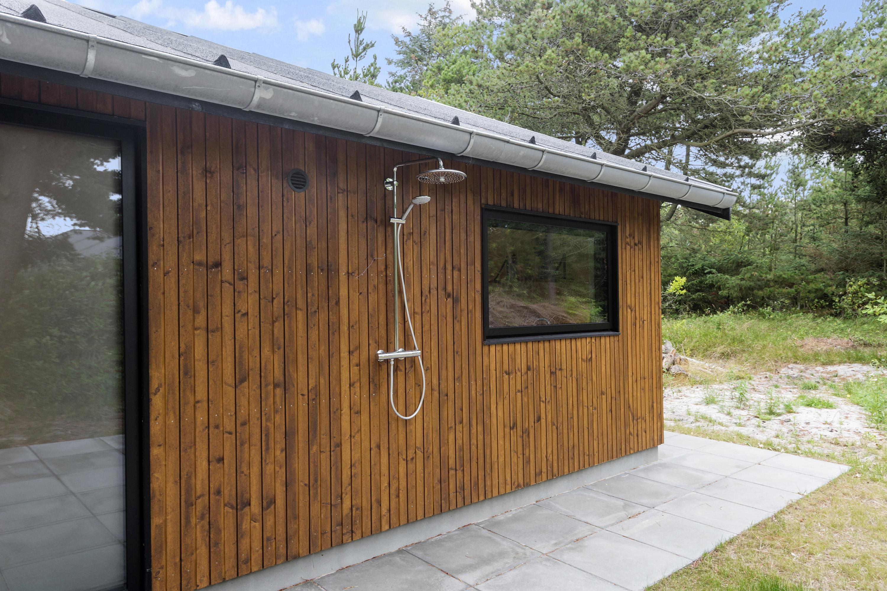 Efter en dag ved stranden kan du skylle sandet af under udebruseren.