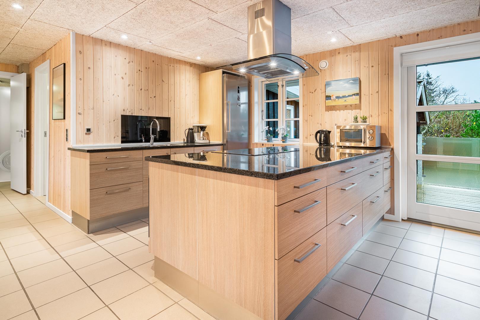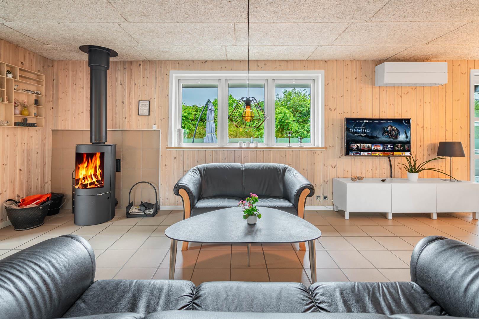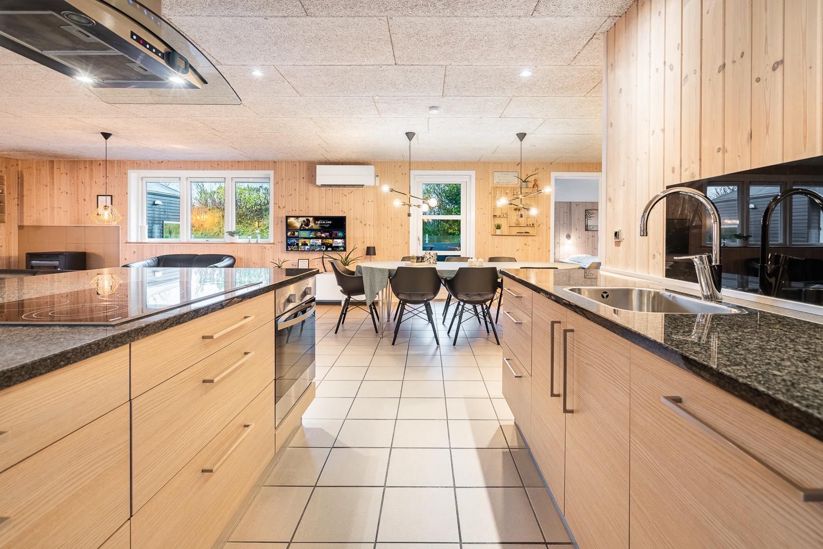 Huset er hyggeligt og indrettet med god smag. Stort køkken som er i åben forbindelse med stuen, som har brændeovn.