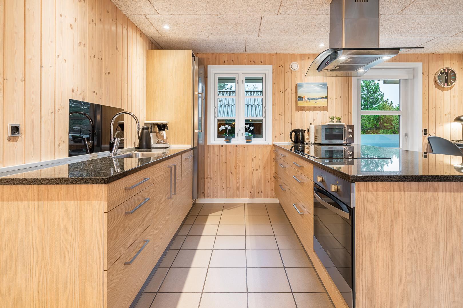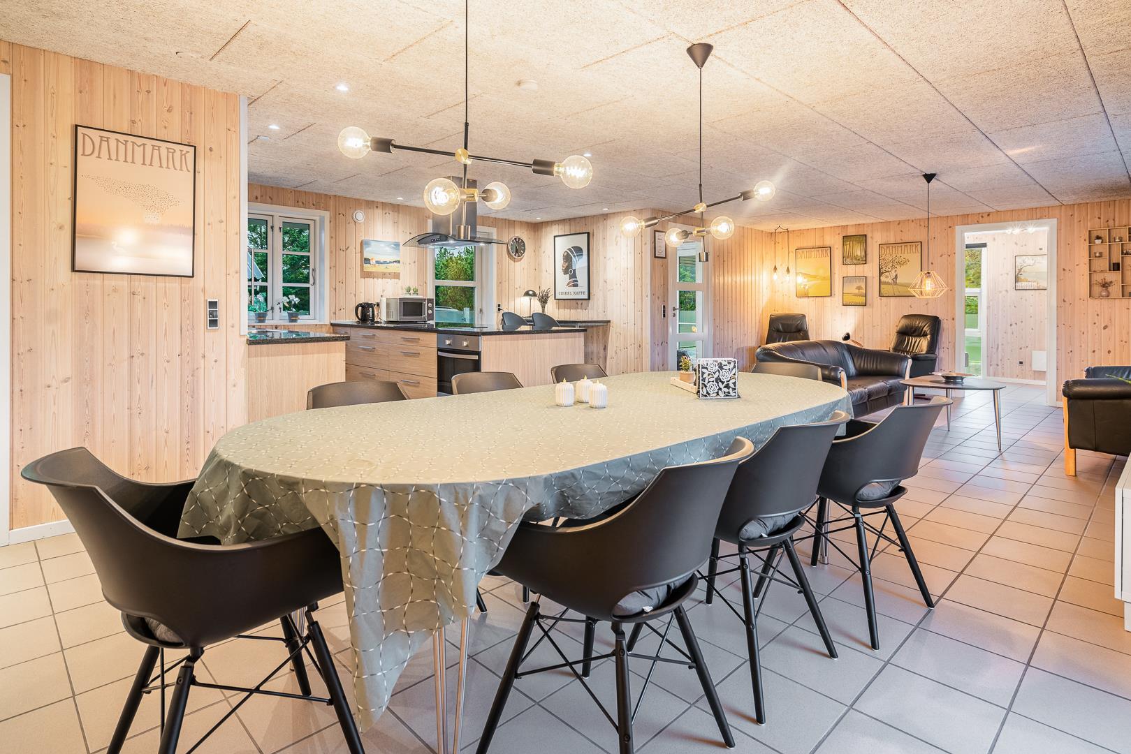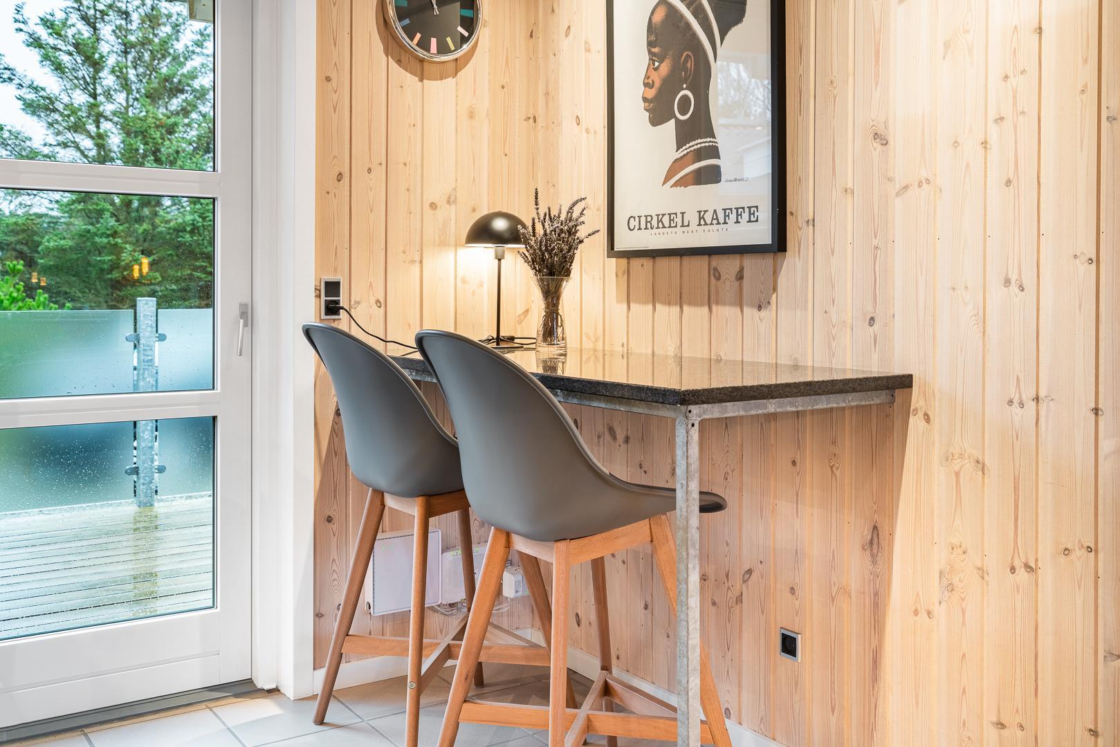 Huset er hyggeligt og indrettet med god smag. Stort køkken som er i åben forbindelse med stuen, som har brændeovn.
