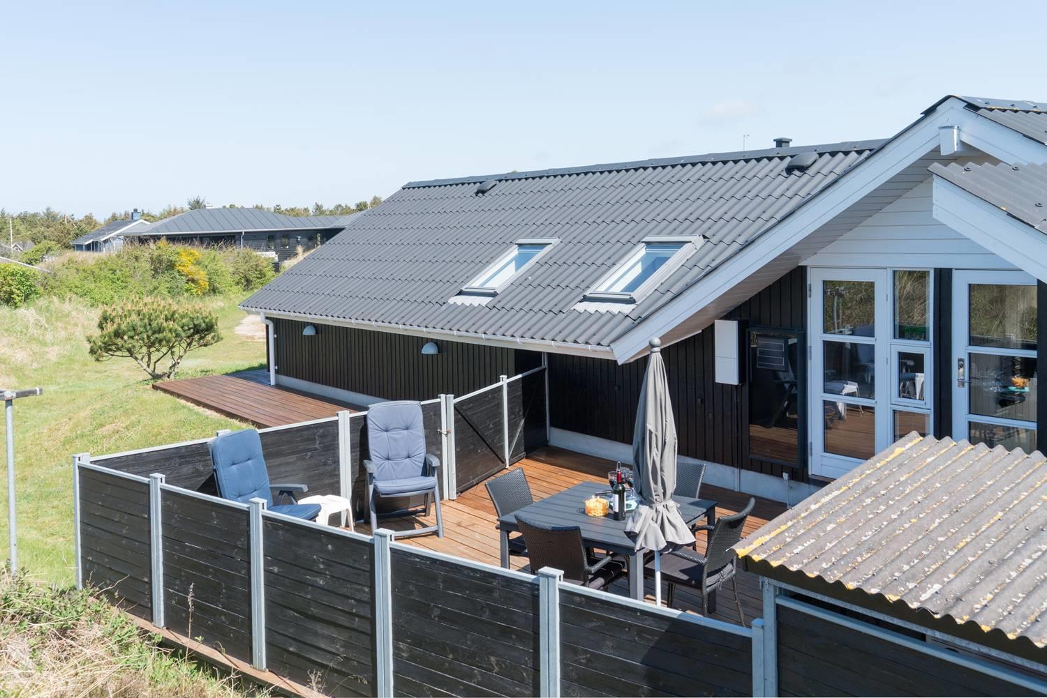 Charmerende feriehus ved Henne Strand med moderne faciliteter og hyggelig atmosfære på en stor naturgrund.