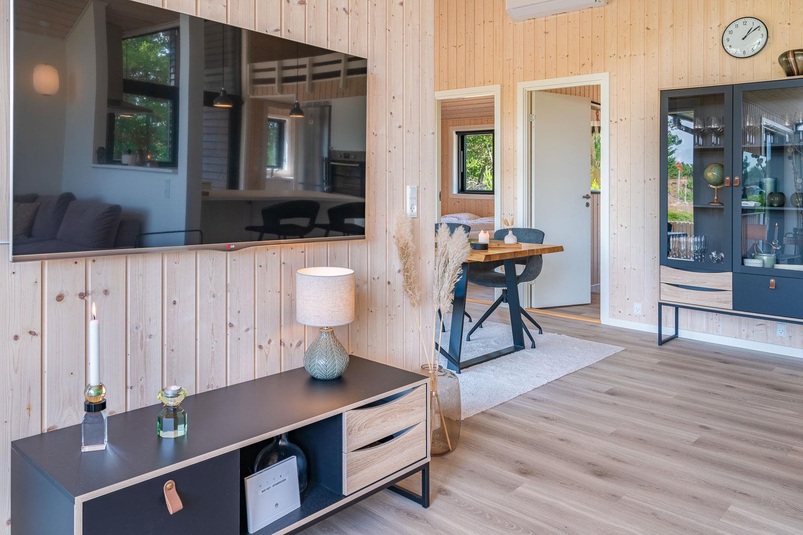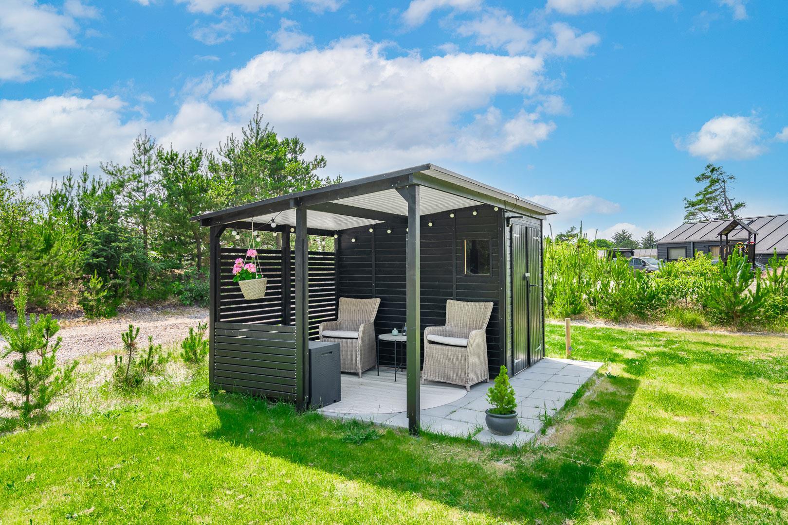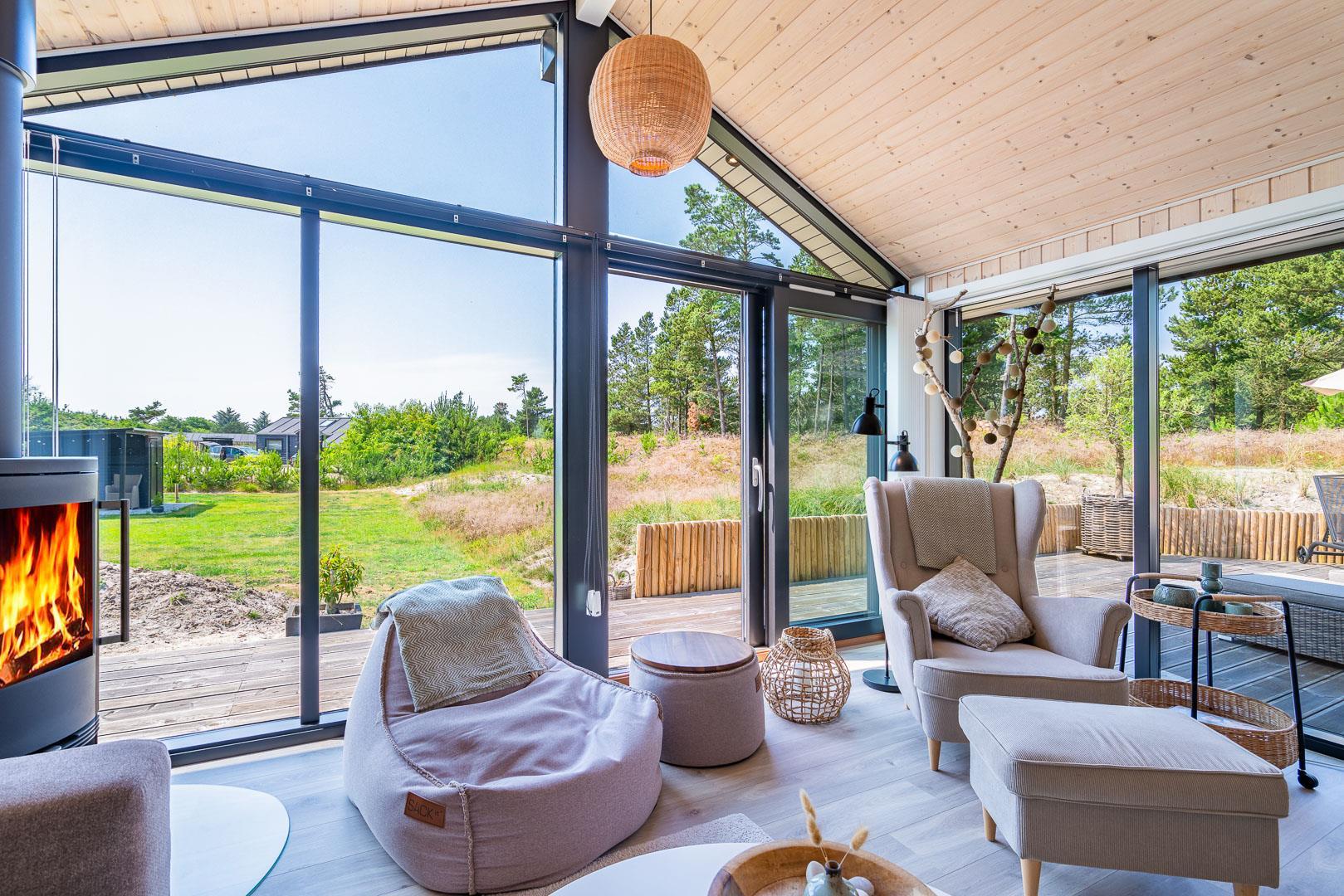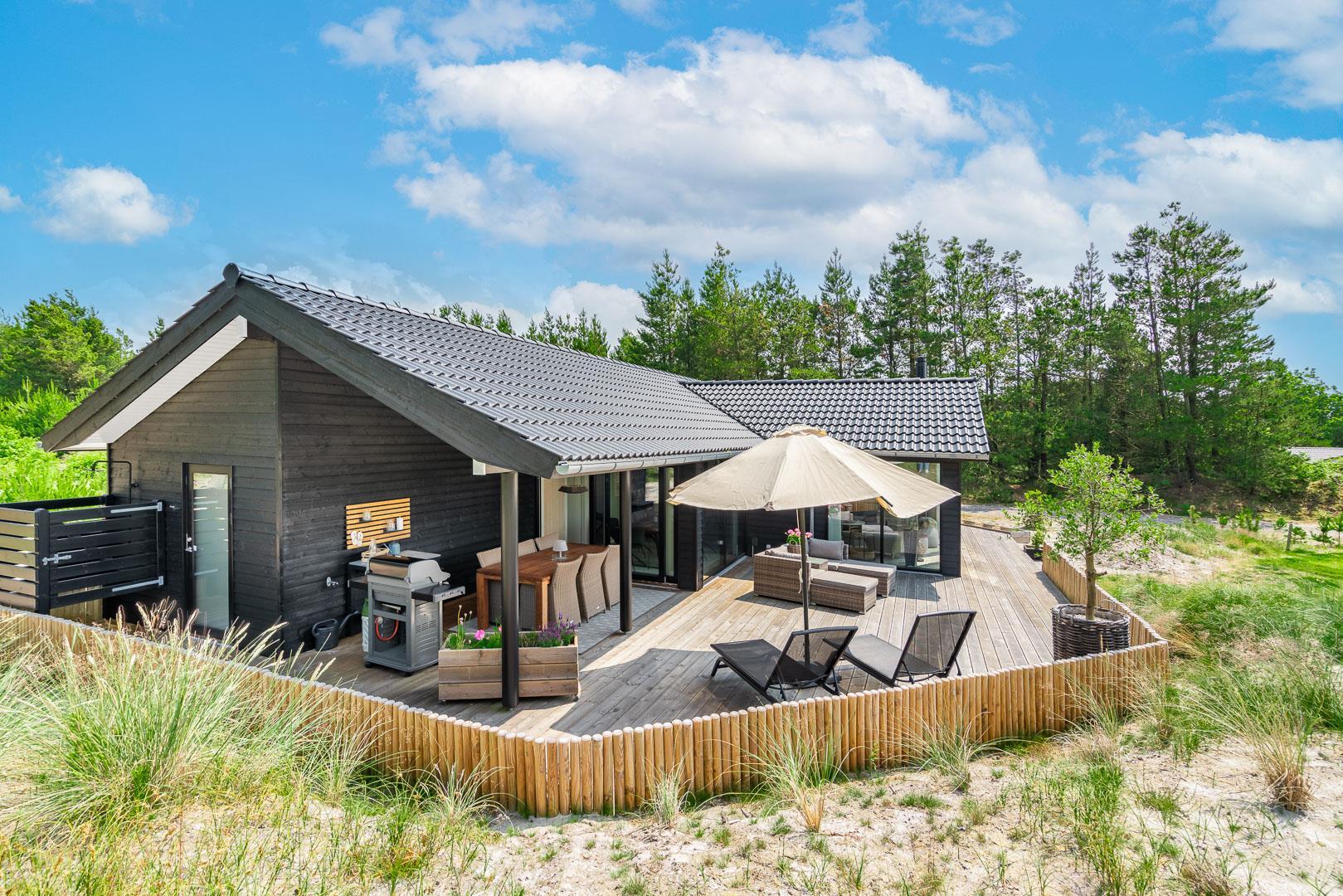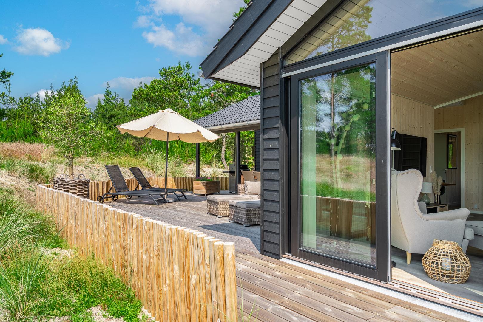 Sommerhuset er opført i 2022 og har en komfortabel og praktisk planløsning med større køkken/alrum med store panoramavinduer med udsigt over naturgrunden. Herfra er der direkte udgang til delvis overdækket sydvendt træbelagt terrasse.