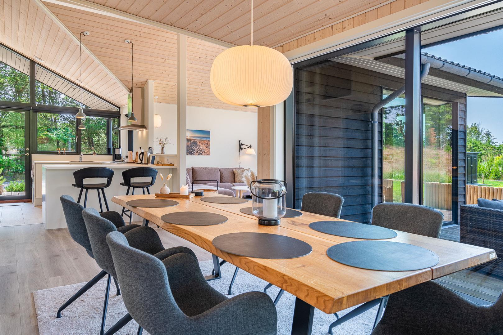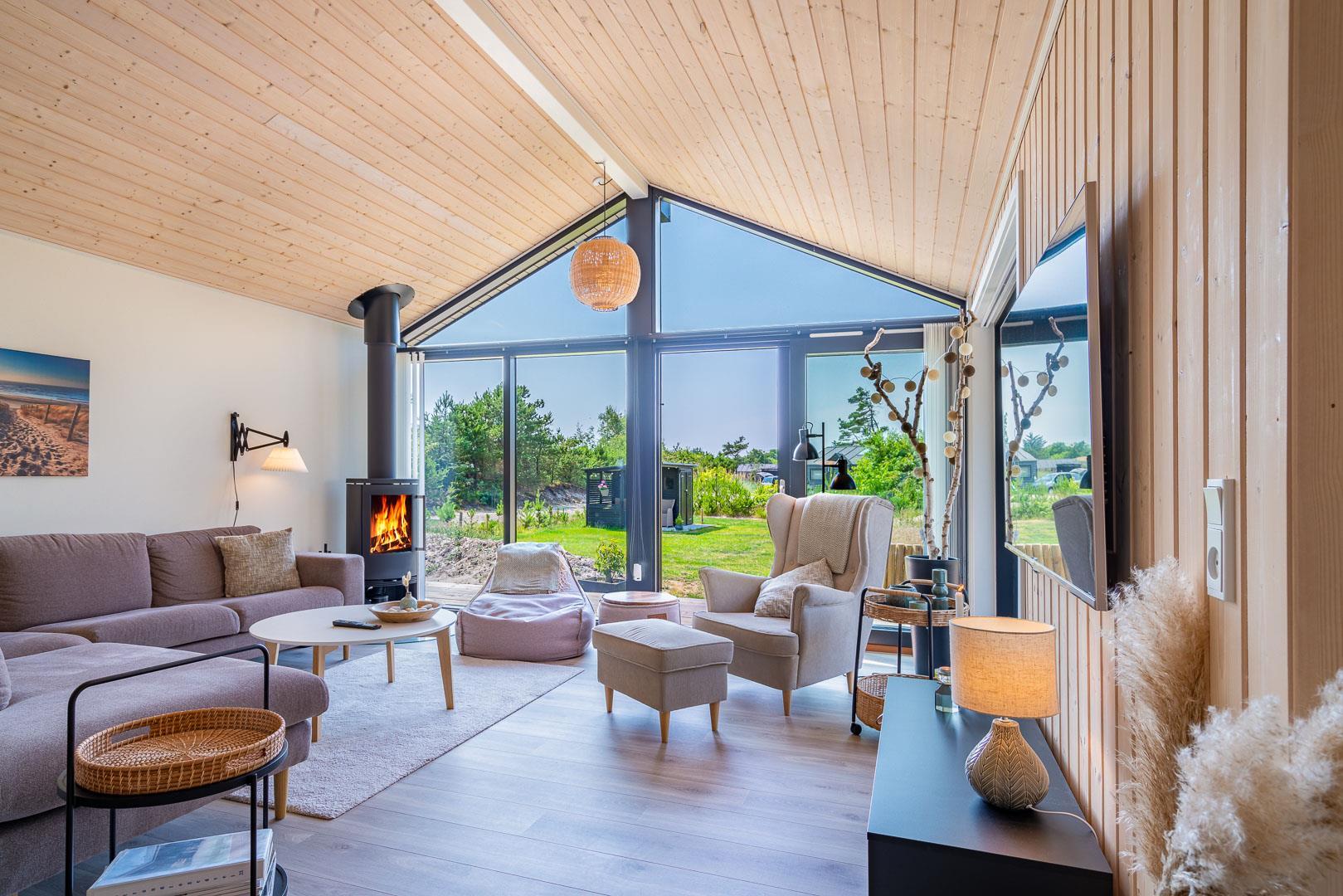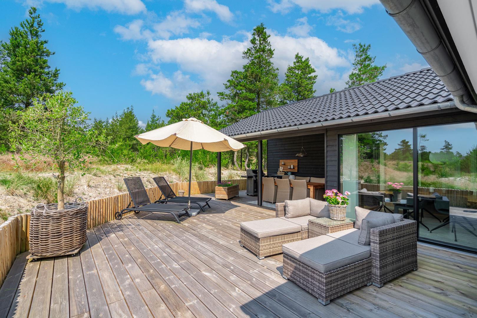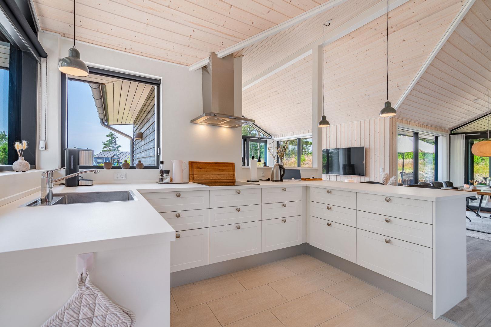 Sommerhuset er opført i 2022 og har en komfortabel og praktisk planløsning med større køkken/alrum med store panoramavinduer med udsigt over naturgrunden. Herfra er der direkte udgang til delvis overdækket sydvendt træbelagt terrasse.