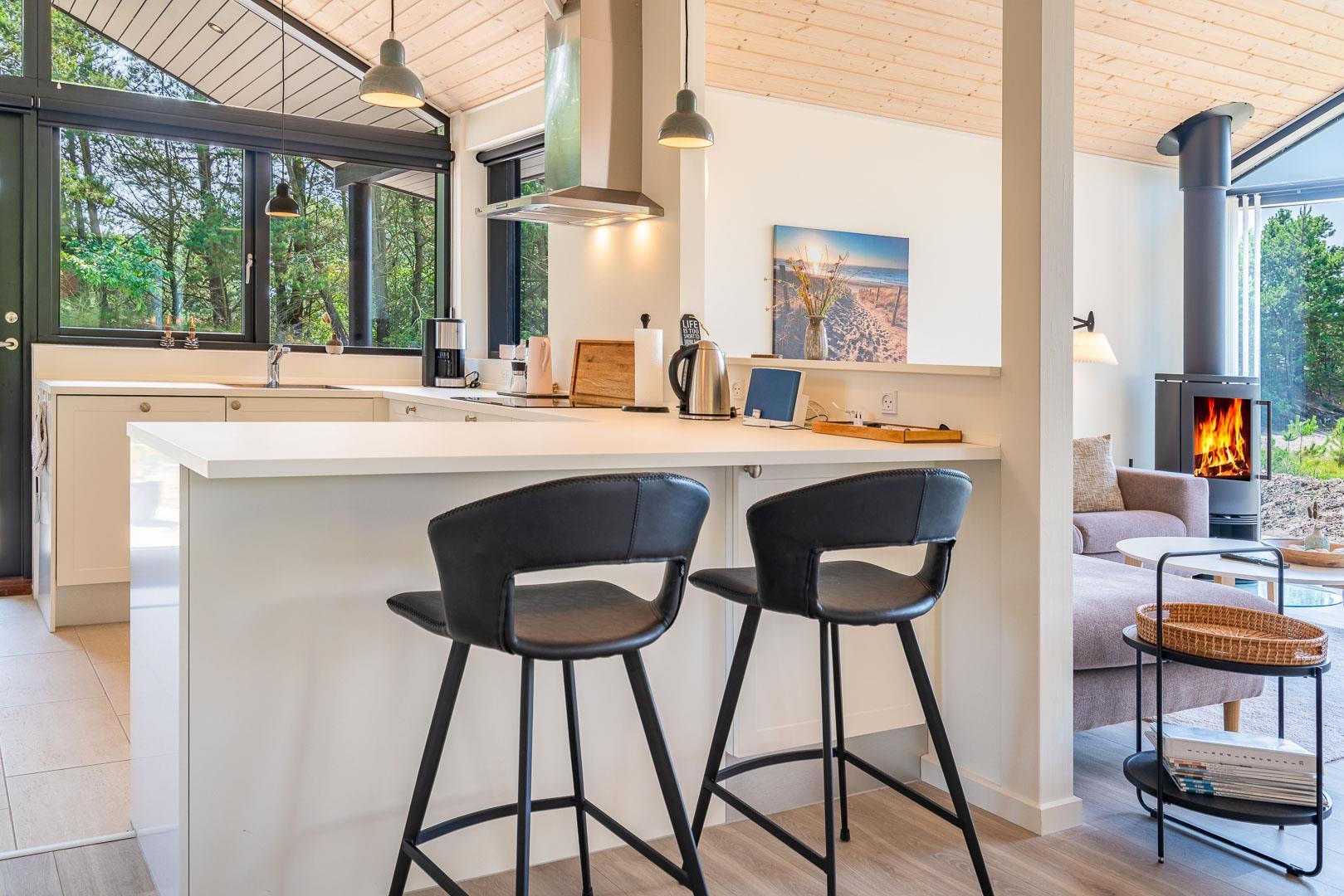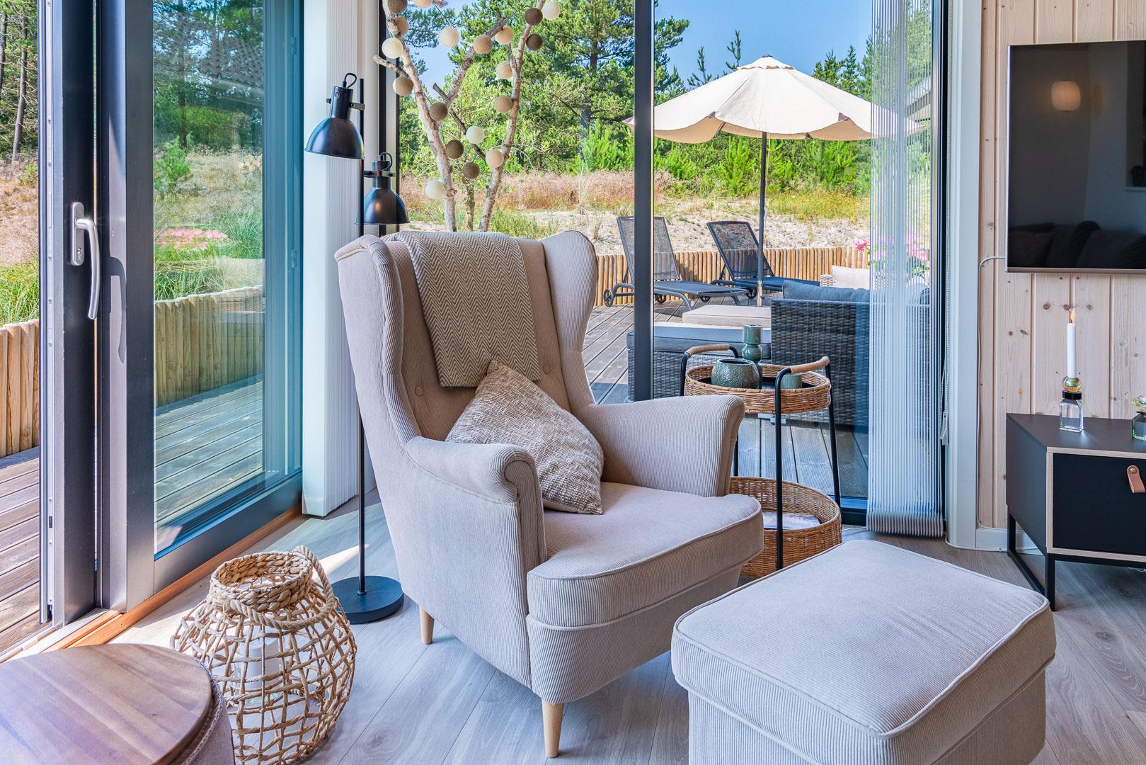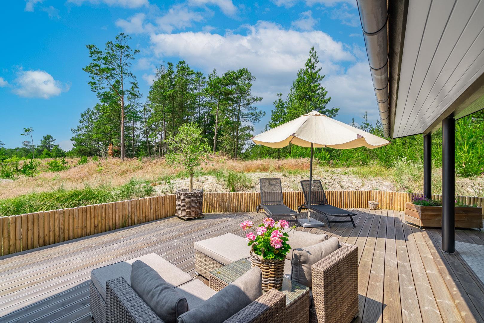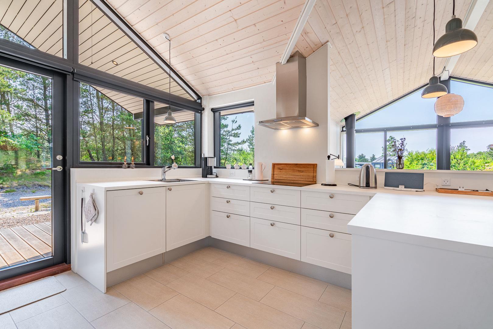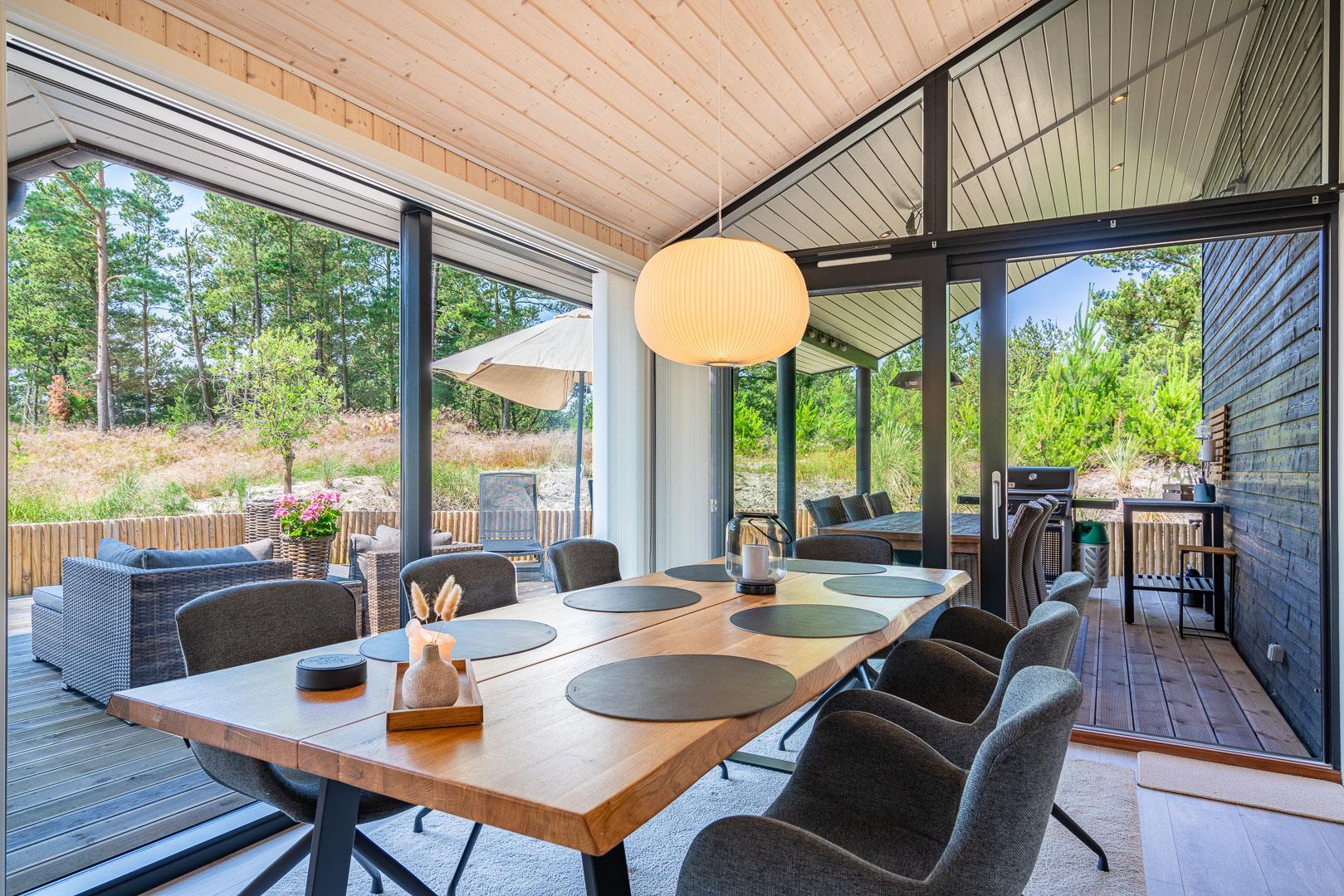 Sommerhuset er opført i 2022 og har en komfortabel og praktisk planløsning med større køkken/alrum med store panoramavinduer med udsigt over naturgrunden. Herfra er der direkte udgang til delvis overdækket sydvendt træbelagt terrasse.