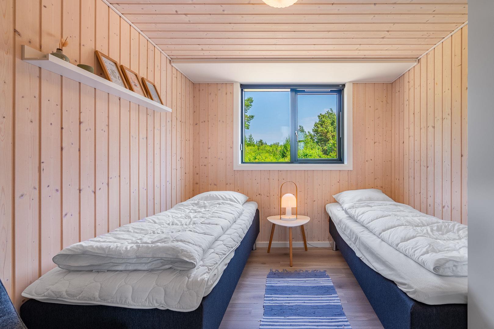Sengestørrelser: 2 dobbeltsenge 160 x 200 cm + 2 enkeltsenge 80 x 200 cm.