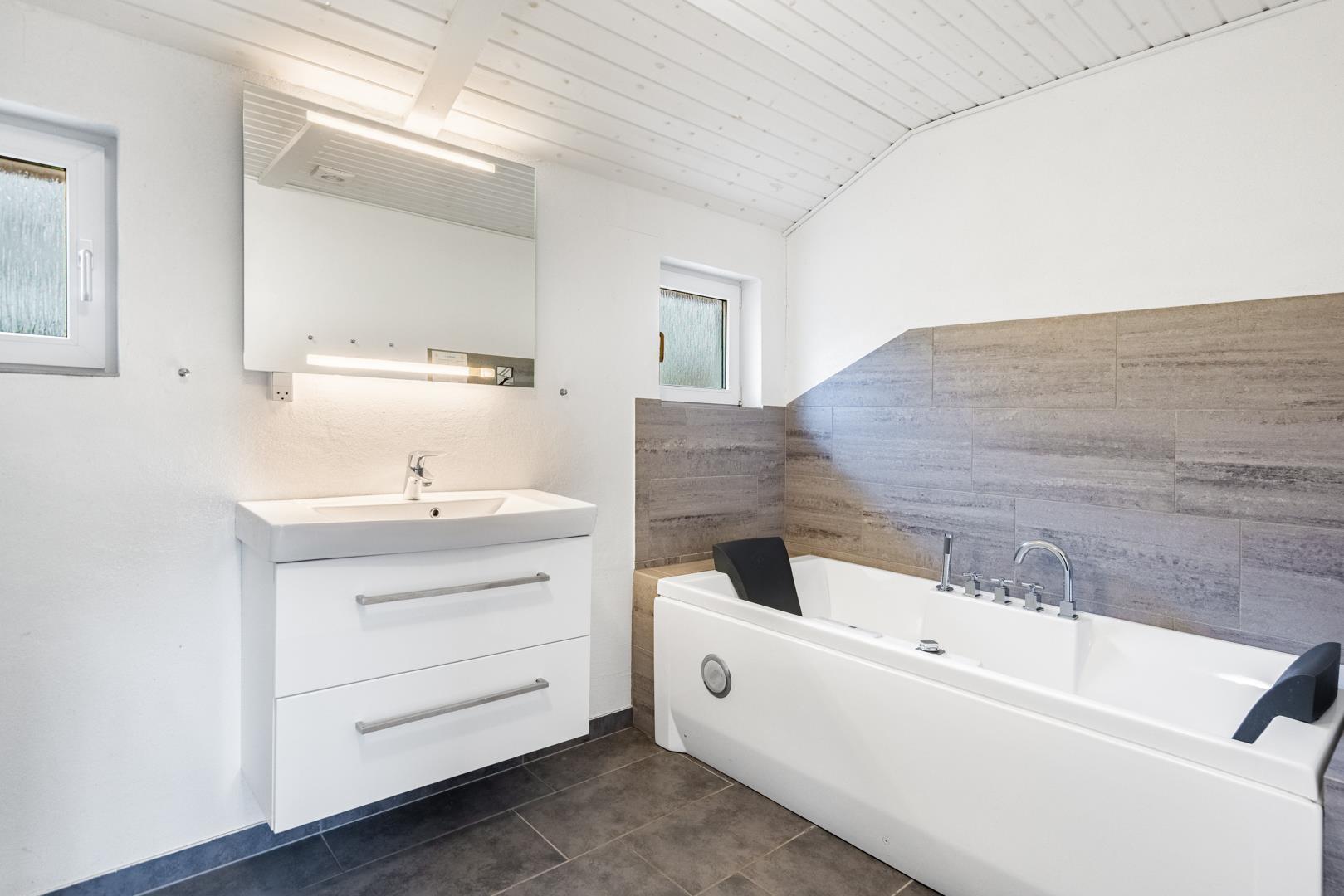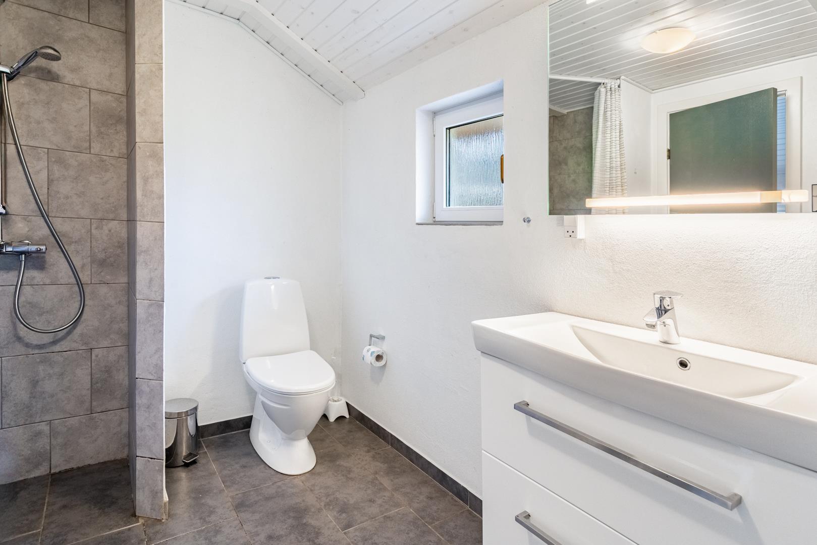 Badeværelset byder på gulvvarme og spabad, så du kan forkæle dig selv med lidt wellness efter en dag ved havet.