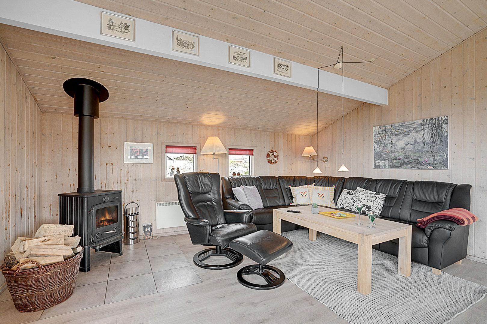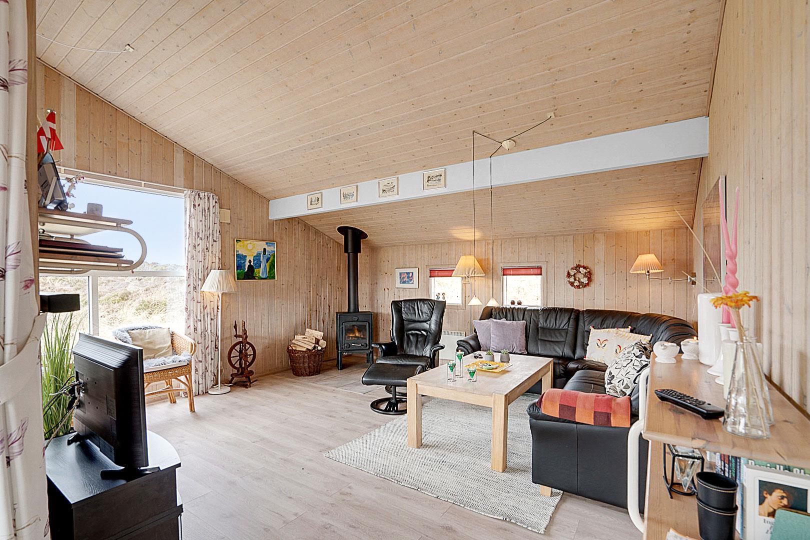 Hyggelig opholdsstue indrettet med gode, komfortable møbler. Der internet i huset, så tag bare computeren med. Der er energibesparende varmepumpe/aircondition i huset. Et virkeligt dejligt feriehus, hvor rammerne er skabt til en god ferie. Oplade-mulighed til El-bil (CEE).