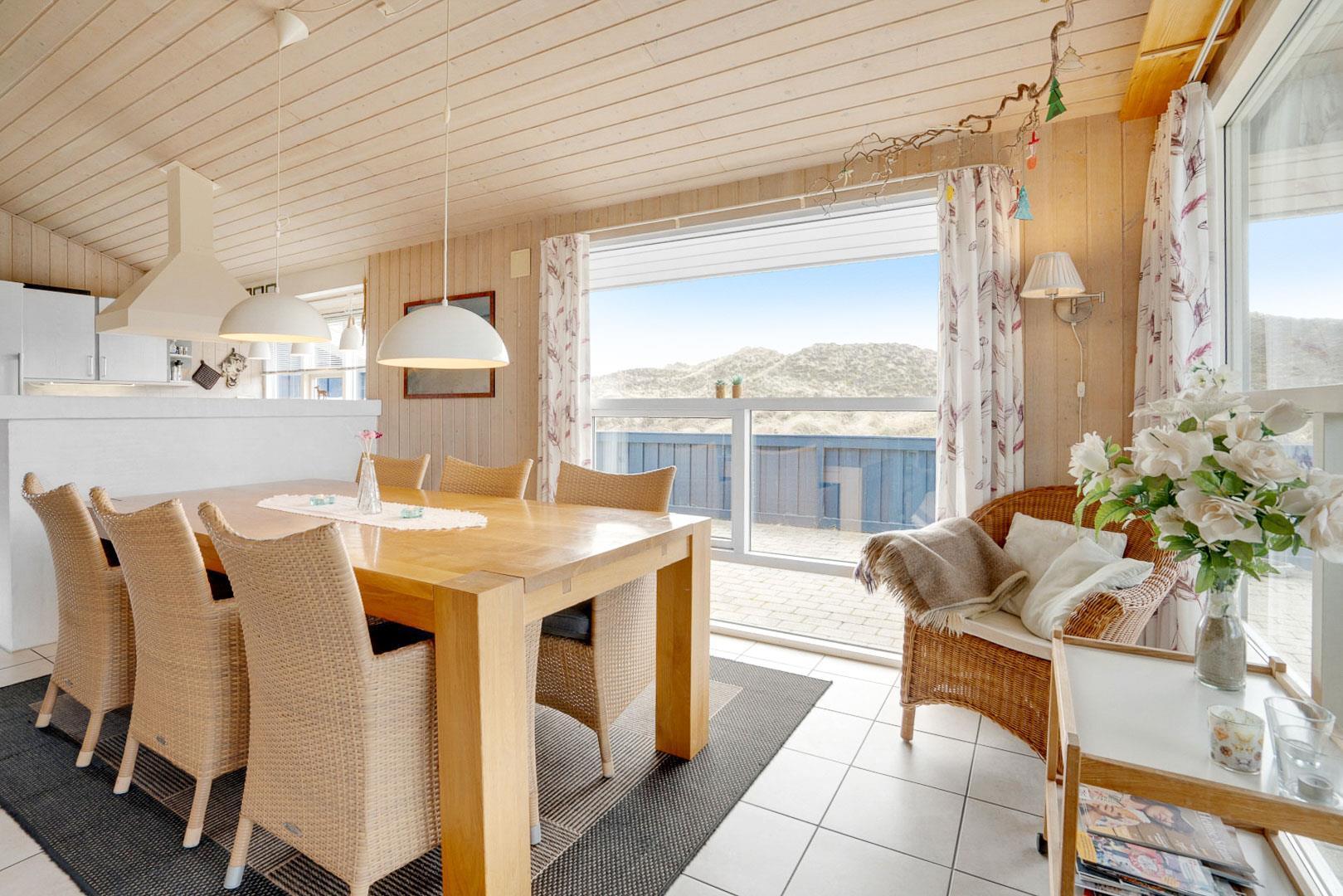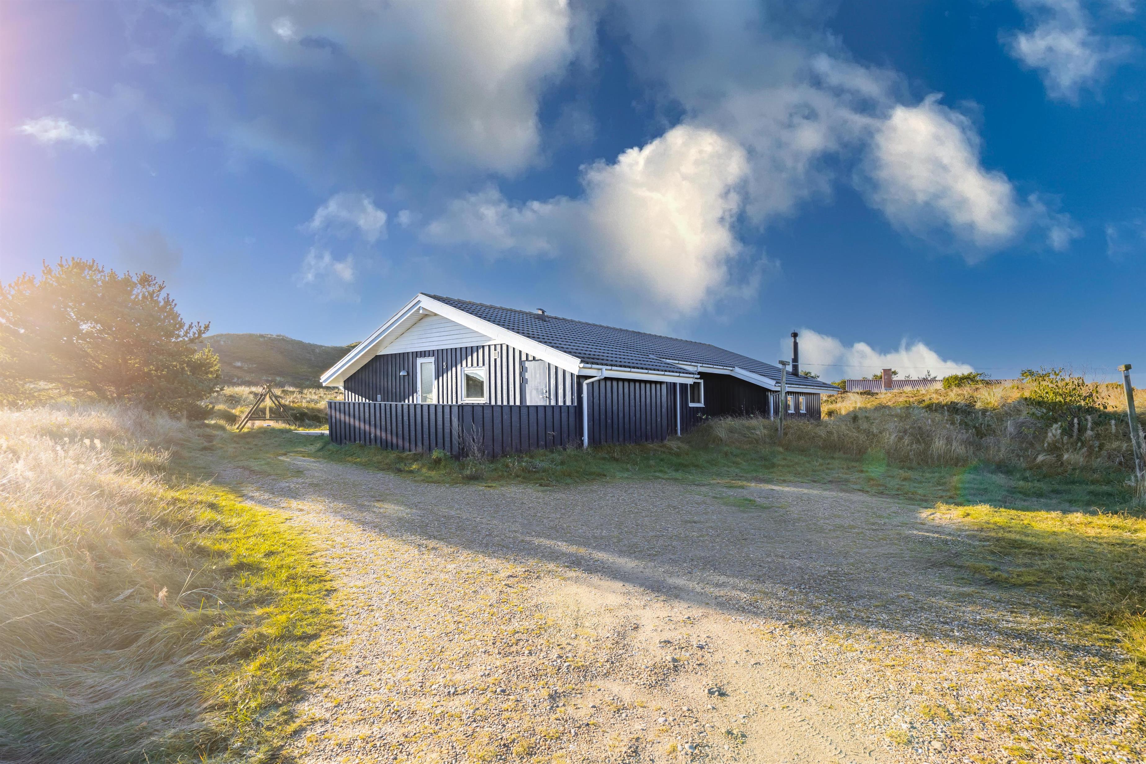 Dejligt, velholdt feriehus beliggende på en ugeneret beplantet klitgrund. Til huset hører der såvel åbent og delvis overdækket terrasse.