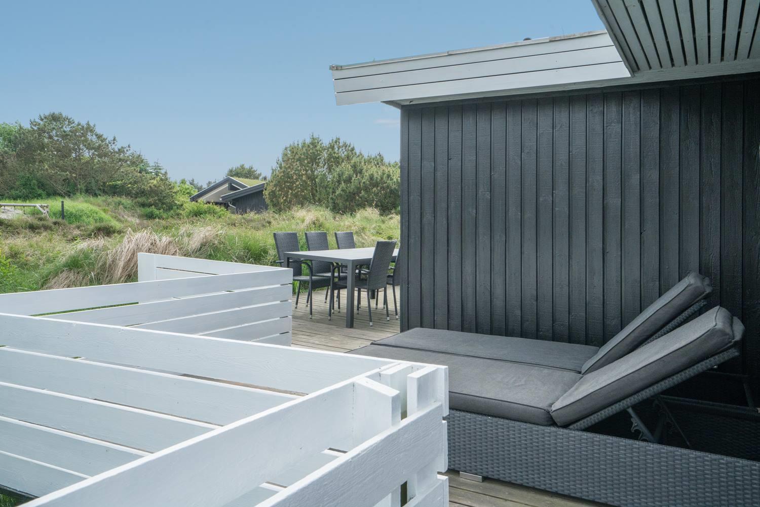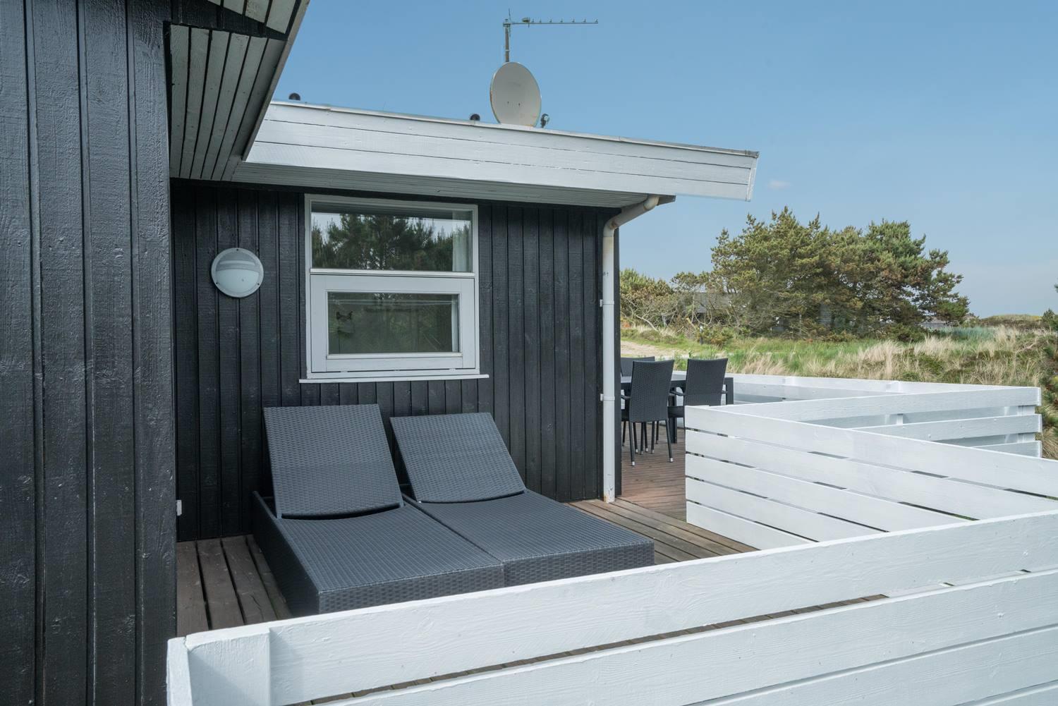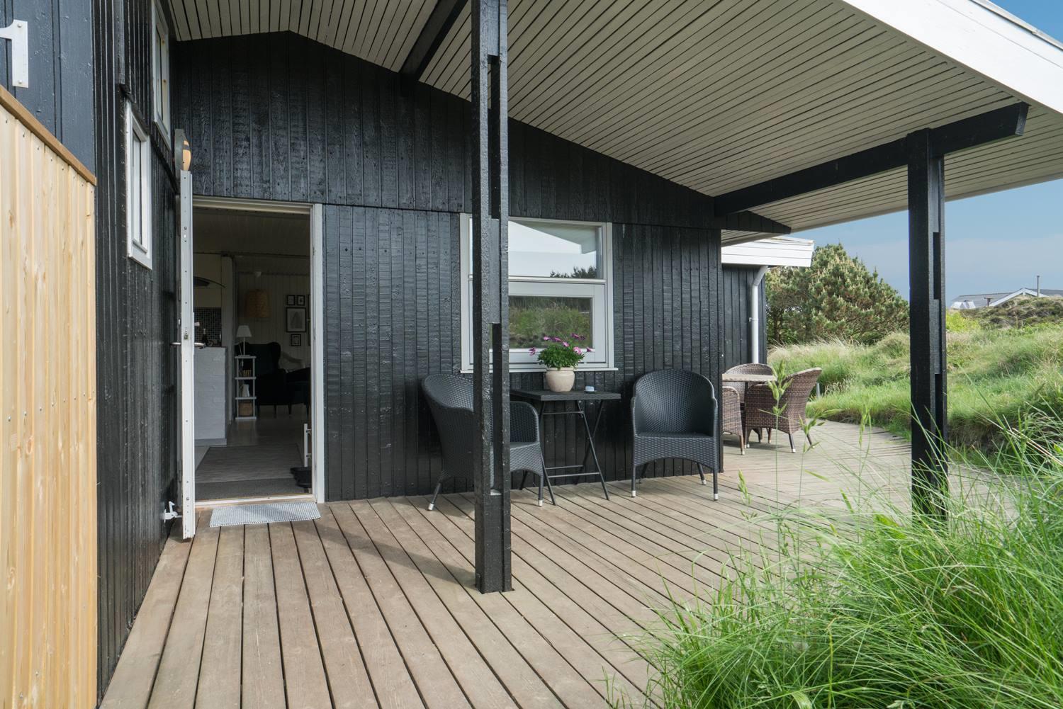 Husets træterrasser indbyder til solbadning eller man kan nyde aftensmaden på den overdækkede terrasse. 3 gode soveværelser med 6 sovepladser.